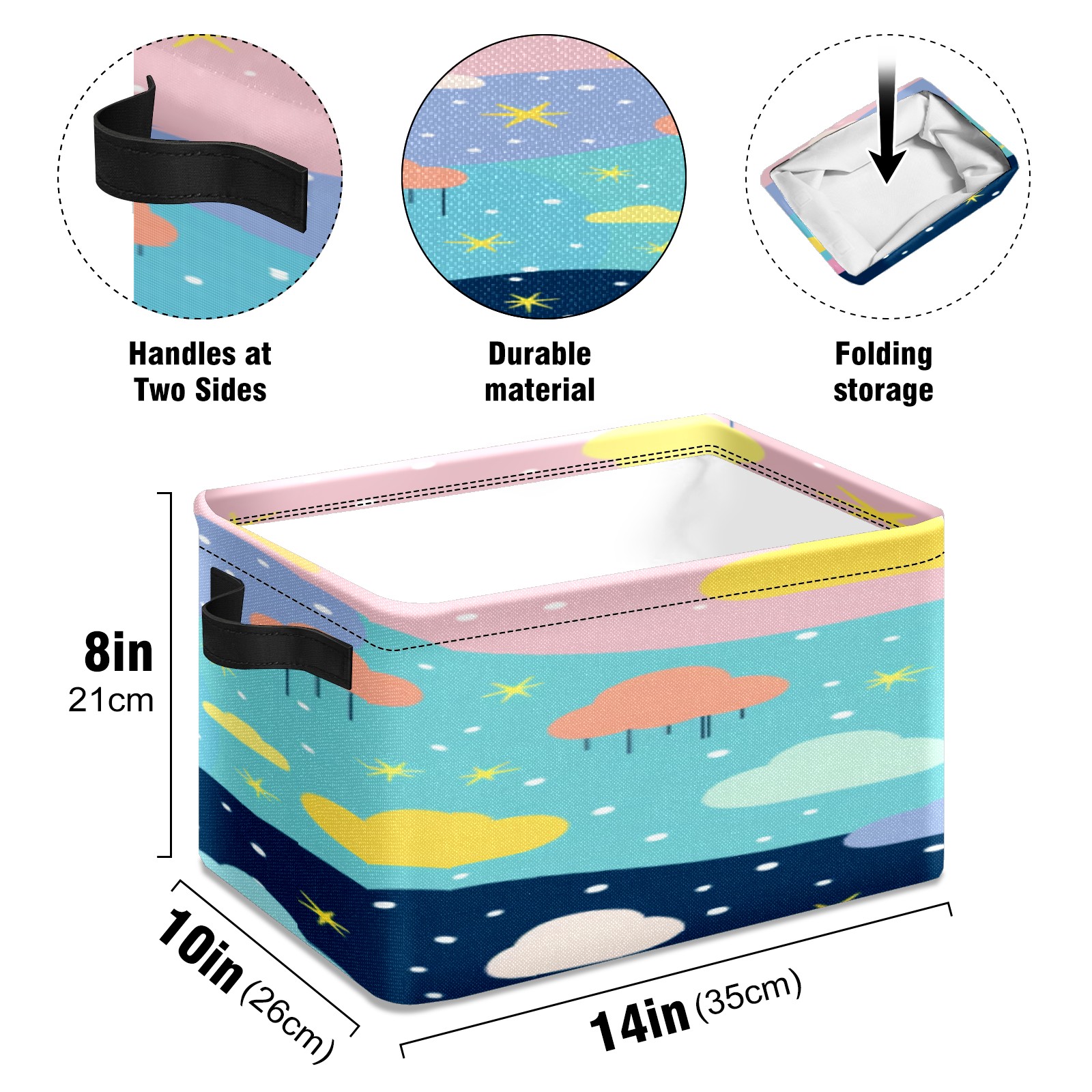 【Материал】Оксфордская ткань из полиэстера 600D; ручки изготовлены из полиэстера. 【Описание материала】Внешняя ткань: Оксфордская ткань полотняного переплетения высокой плотности 300D (ПВХ); Подкладка: белая ткань 750D; Ручки: черная композитная ткань 290T. 【Размер】26x35x21 см (10x14x8 дюймов) 【Описание продукта】Эта корзина для хранения с ручками с обеих сторон предлагает достаточно места для хранения предметов разных размеров, что делает ее подходящей для различных случаев, таких как дом, офис и школа. Ручки с обеих сторон закреплены гвоздями для долговечности. Прочный металлический каркас окружает корзину, поддерживая ее форму. Складная корзина для хранения: Наши корзины для хранения легко складываются, когда не используются. Эти ящики для хранения изготовлены из легко моющейся оксфордской ткани и при необходимости могут быть аккуратно протерты мягким мылом и водой. Из-за внутреннего металлического каркаса и жесткого дна машинная стирка не рекомендуется. 【Подходящие сценарии использования】Дом, офис и школа 【Инструкции по стирке】Рекомендуется ручная стирка; избегайте длительного воздействия прямых солнечных лучей.