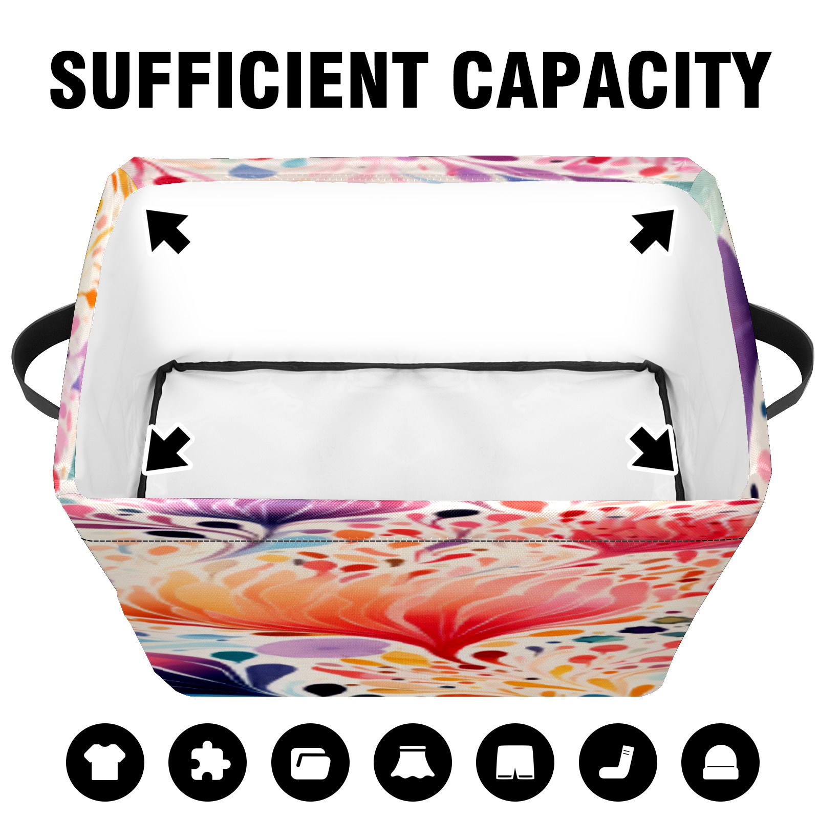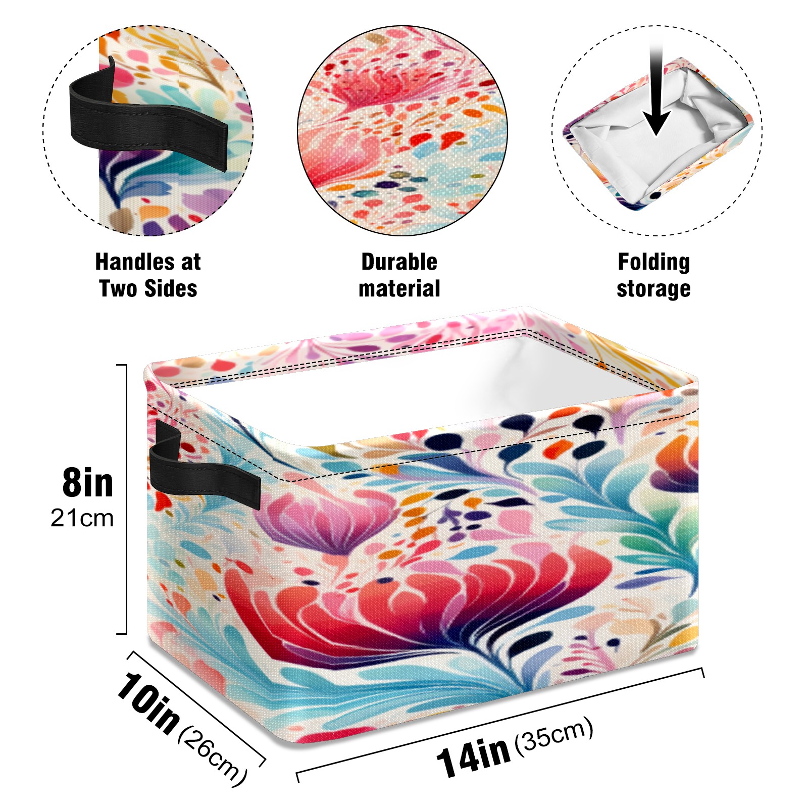 【Материал】Оксфордская ткань из полиэстера 600D; ручки изготовлены из полиэстера. 【Описание материала】Внешняя ткань: Оксфордская ткань полотняного переплетения высокой плотности 300D (ПВХ); Подкладка: белая ткань 750D; Ручки: черная композитная ткань 290T. 【Размер】26x35x21 см (10x14x8 дюймов) 【Описание продукта】Эта корзина для хранения с ручками с обеих сторон предлагает достаточно места для хранения предметов разных размеров, что делает ее подходящей для различных случаев, таких как дом, офис и школа. Ручки с обеих сторон закреплены гвоздями для долговечности. Прочный металлический каркас окружает корзину, поддерживая ее форму. Складная корзина для хранения: Наши корзины для хранения легко складываются, когда не используются. Эти ящики для хранения изготовлены из легко моющейся оксфордской ткани и при необходимости могут быть аккуратно протерты мягким мылом и водой. Из-за внутреннего металлического каркаса и жесткого дна машинная стирка не рекомендуется. 【Подходящие сценарии использования】Дом, офис и школа 【Инструкции по стирке】Рекомендуется ручная стирка; избегайте длительного воздействия прямых солнечных лучей.