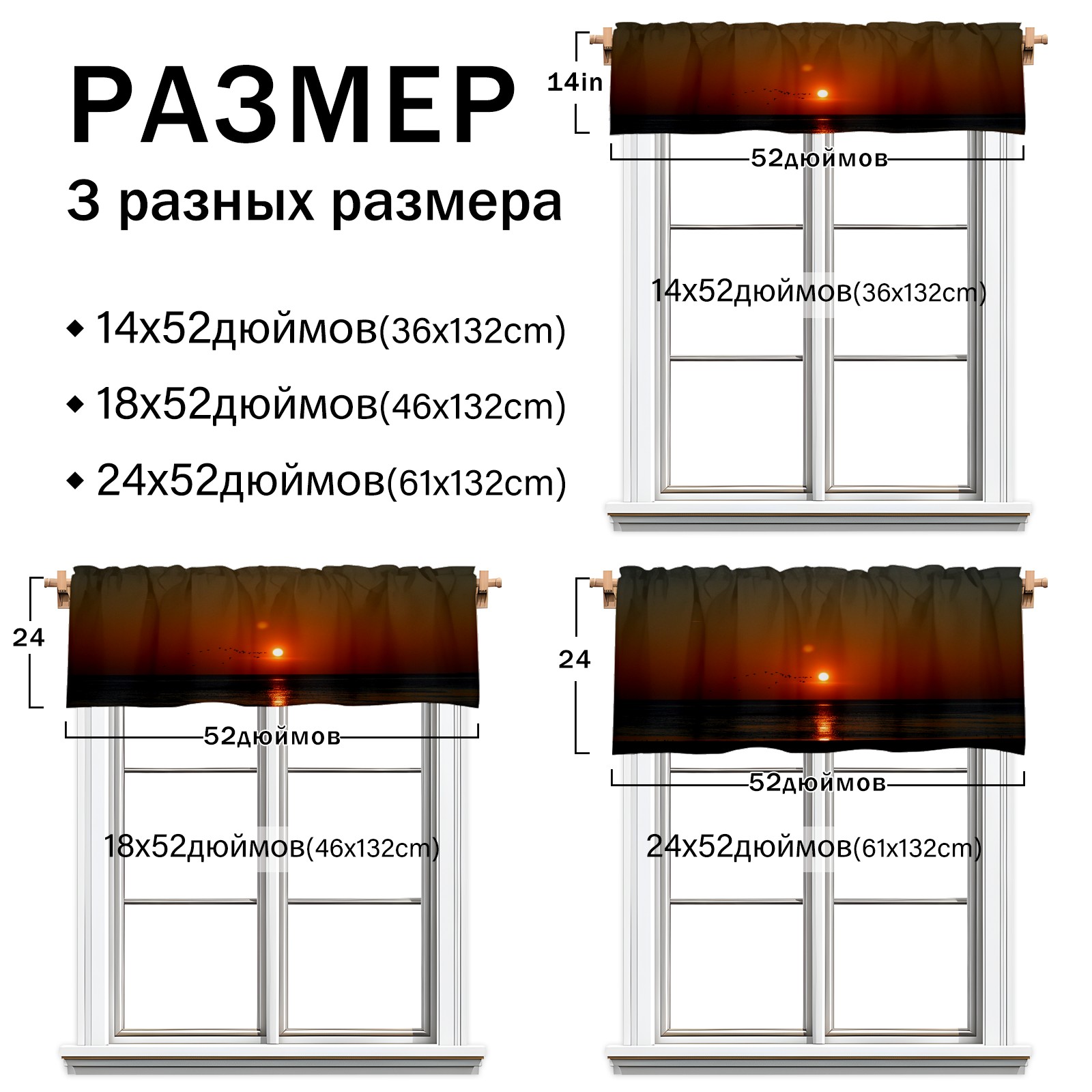 Окно Валанс, украшение занавес 36х132см