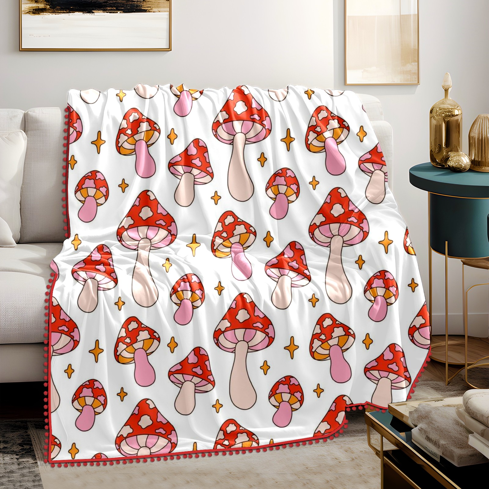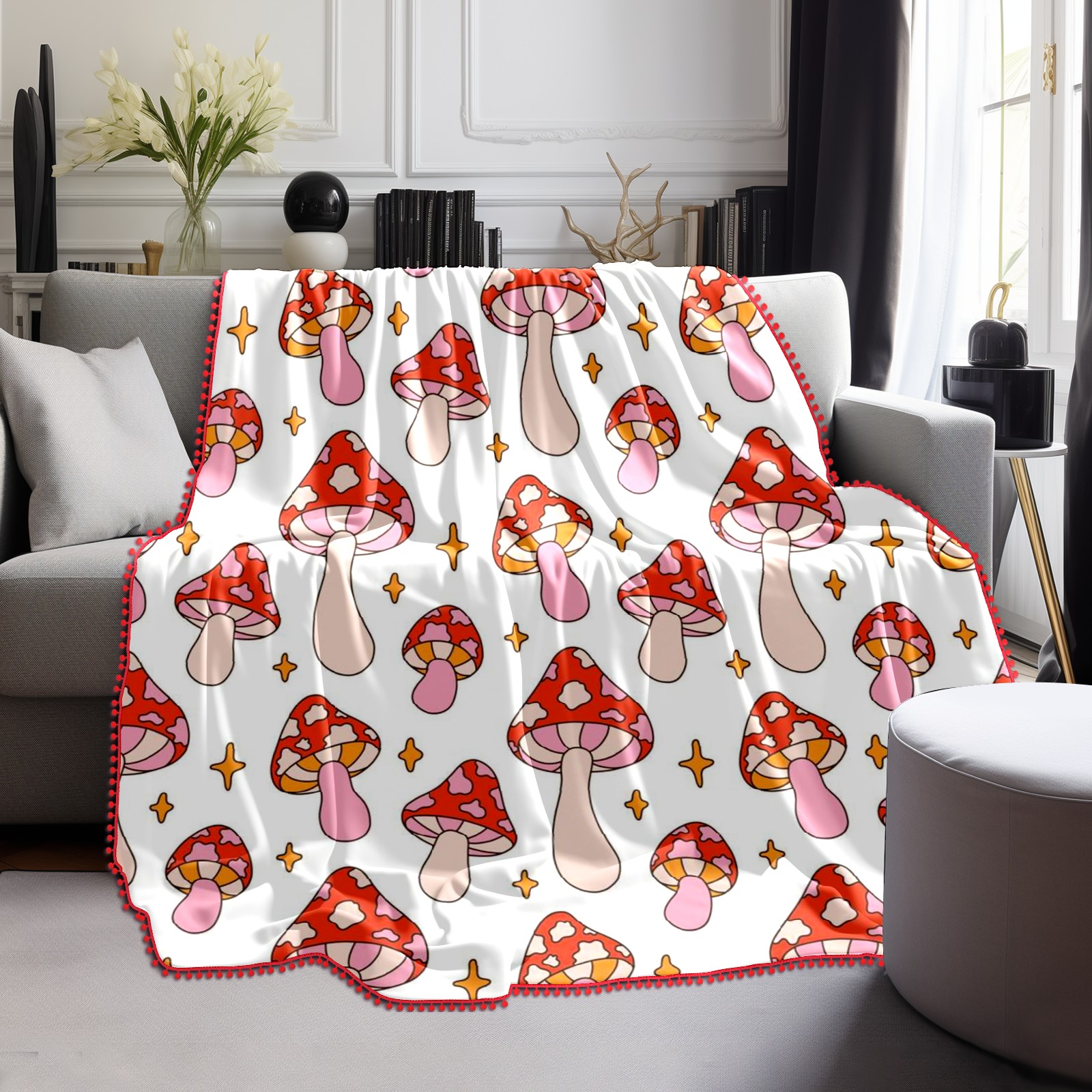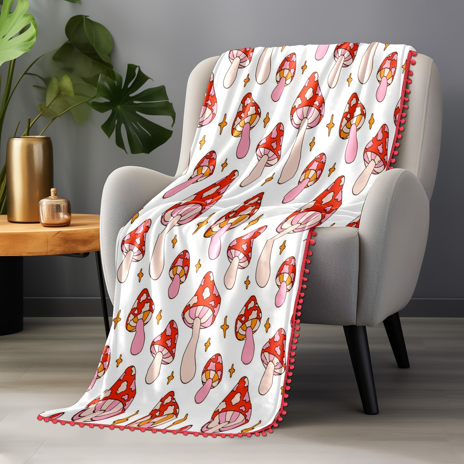 流苏毛毯 Retro Pink Mushroom Star