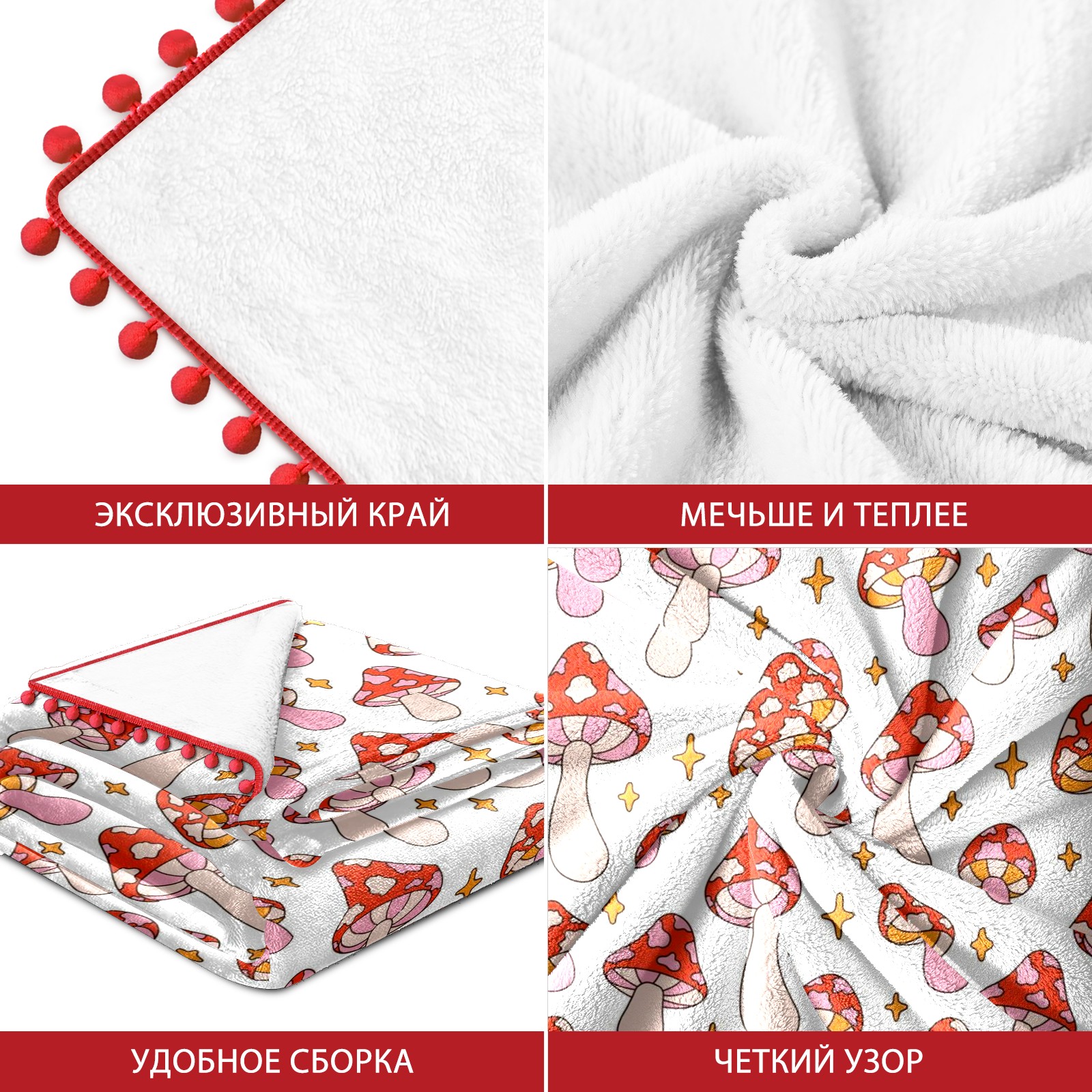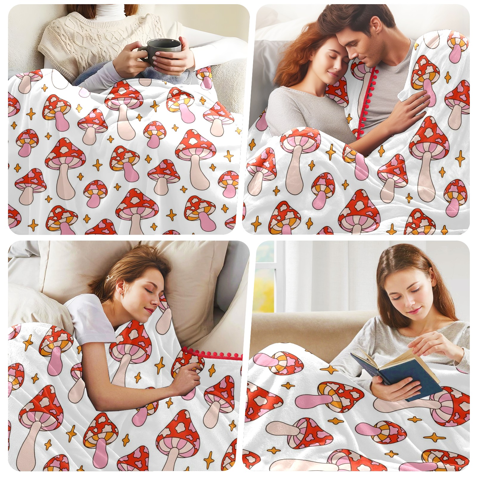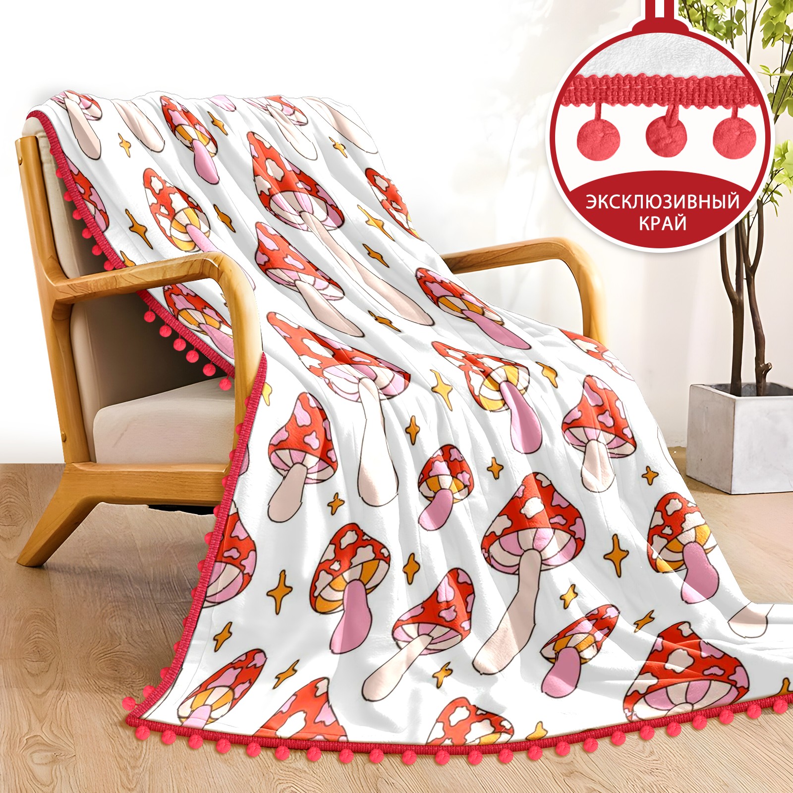 流苏毛毯 Retro Pink Mushroom Star