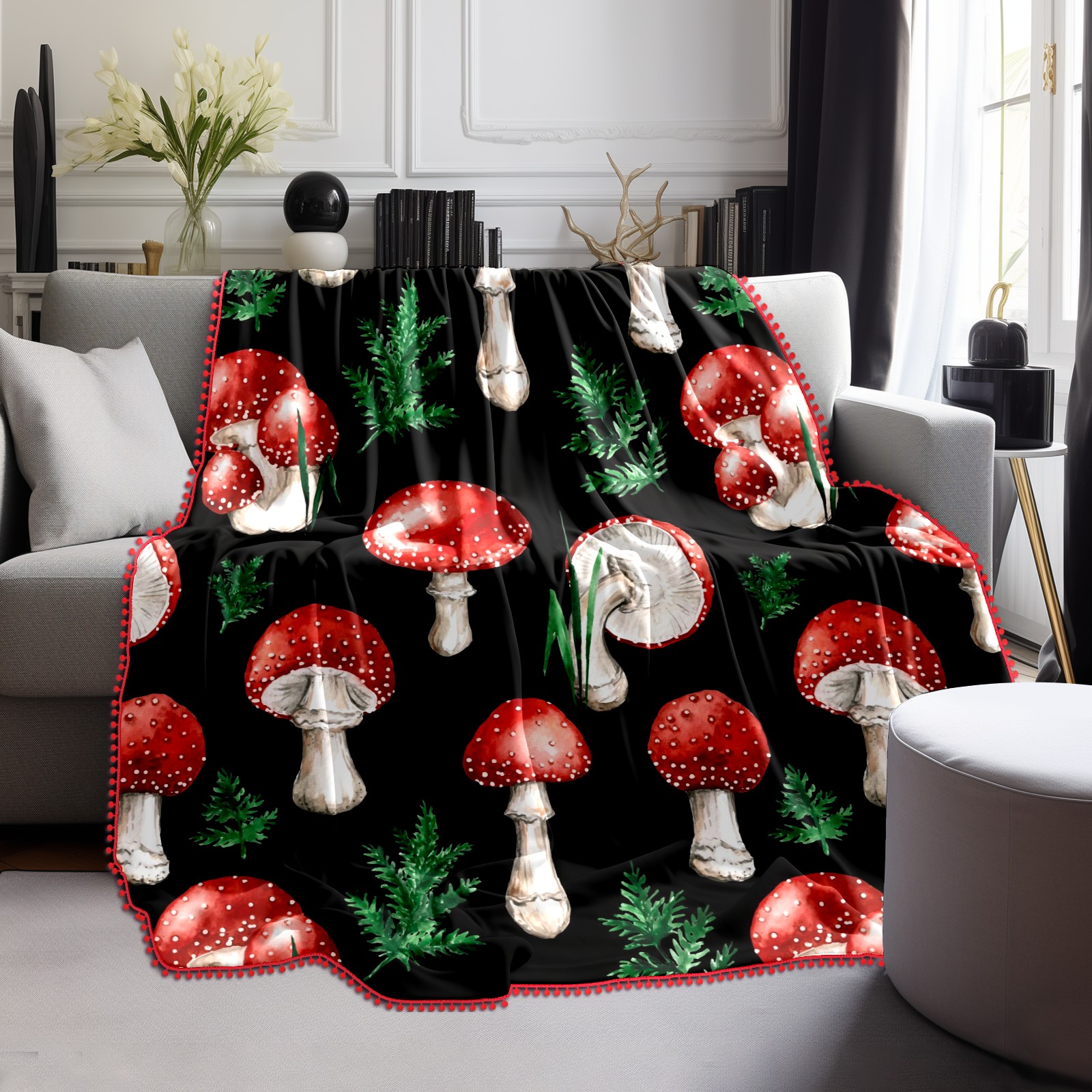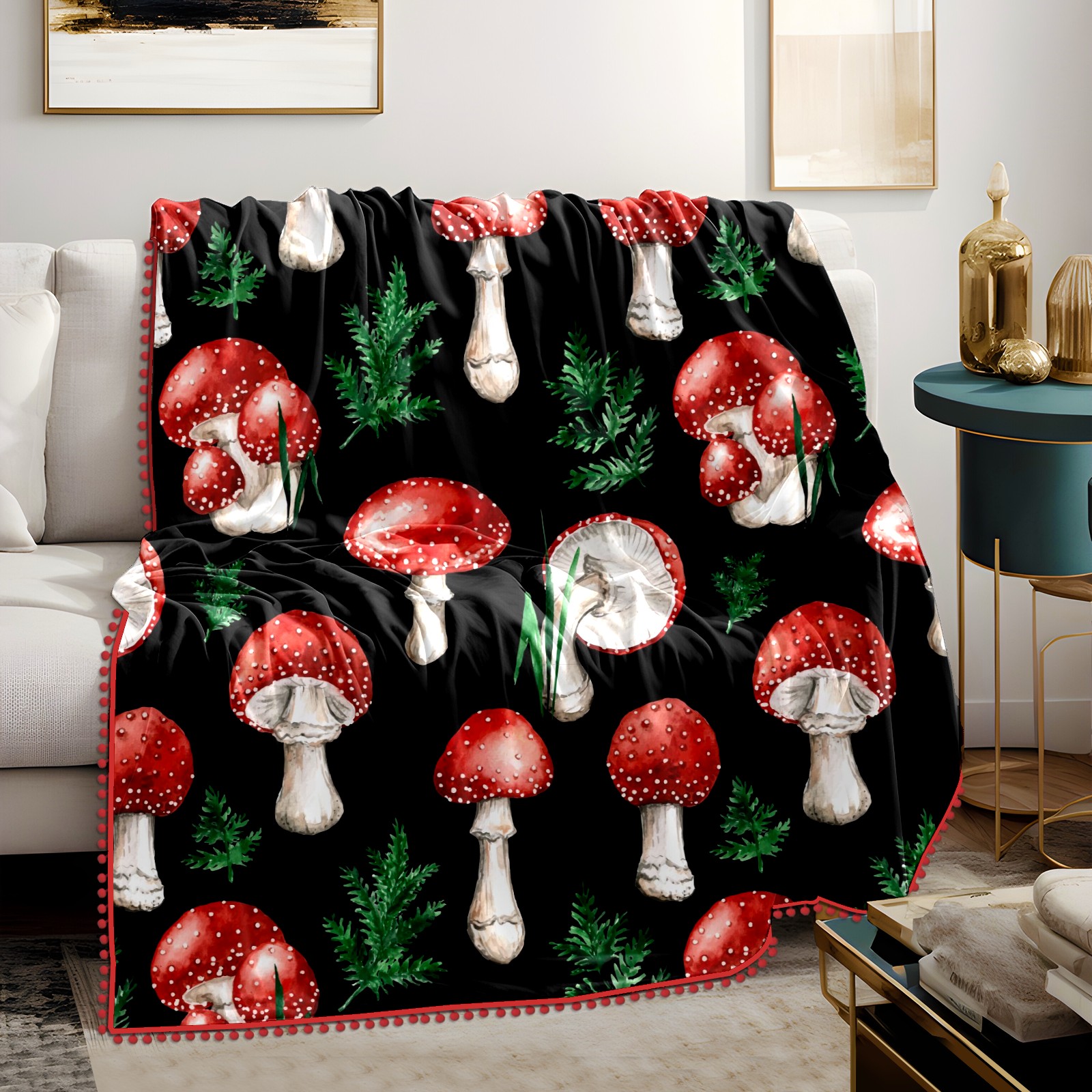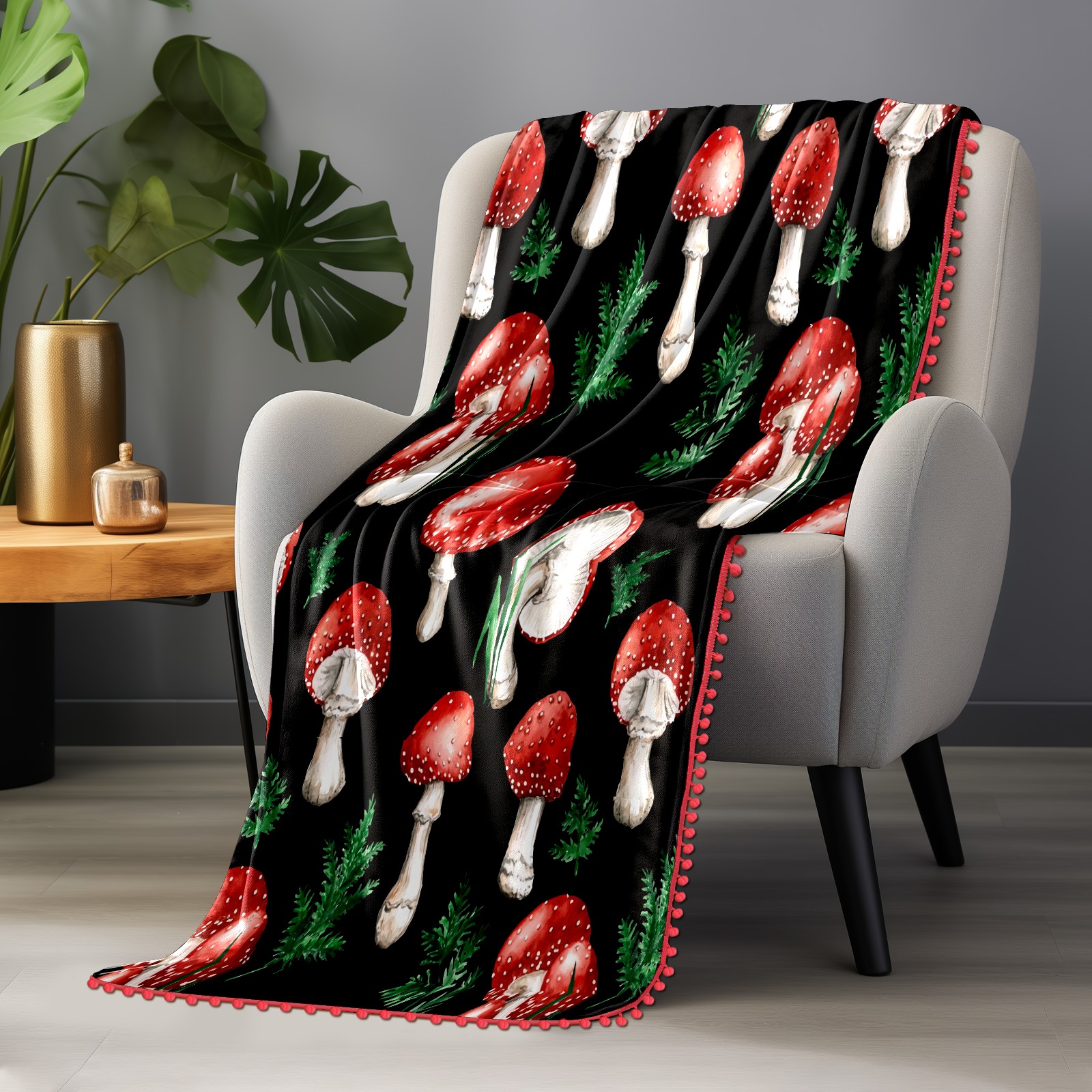 流苏毛毯 Watercolor Red Mushroom