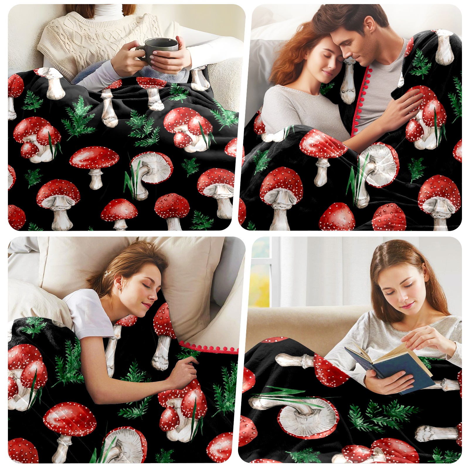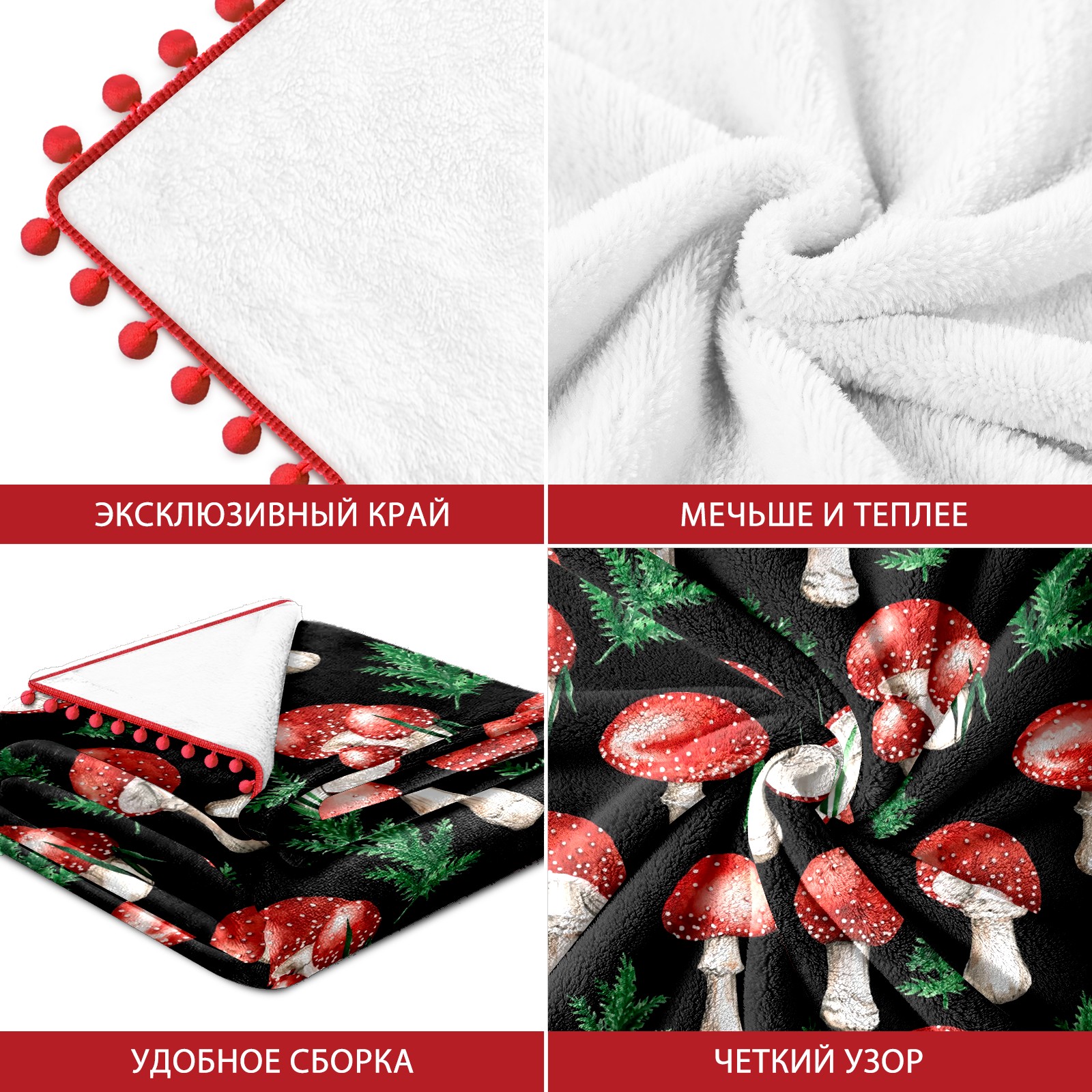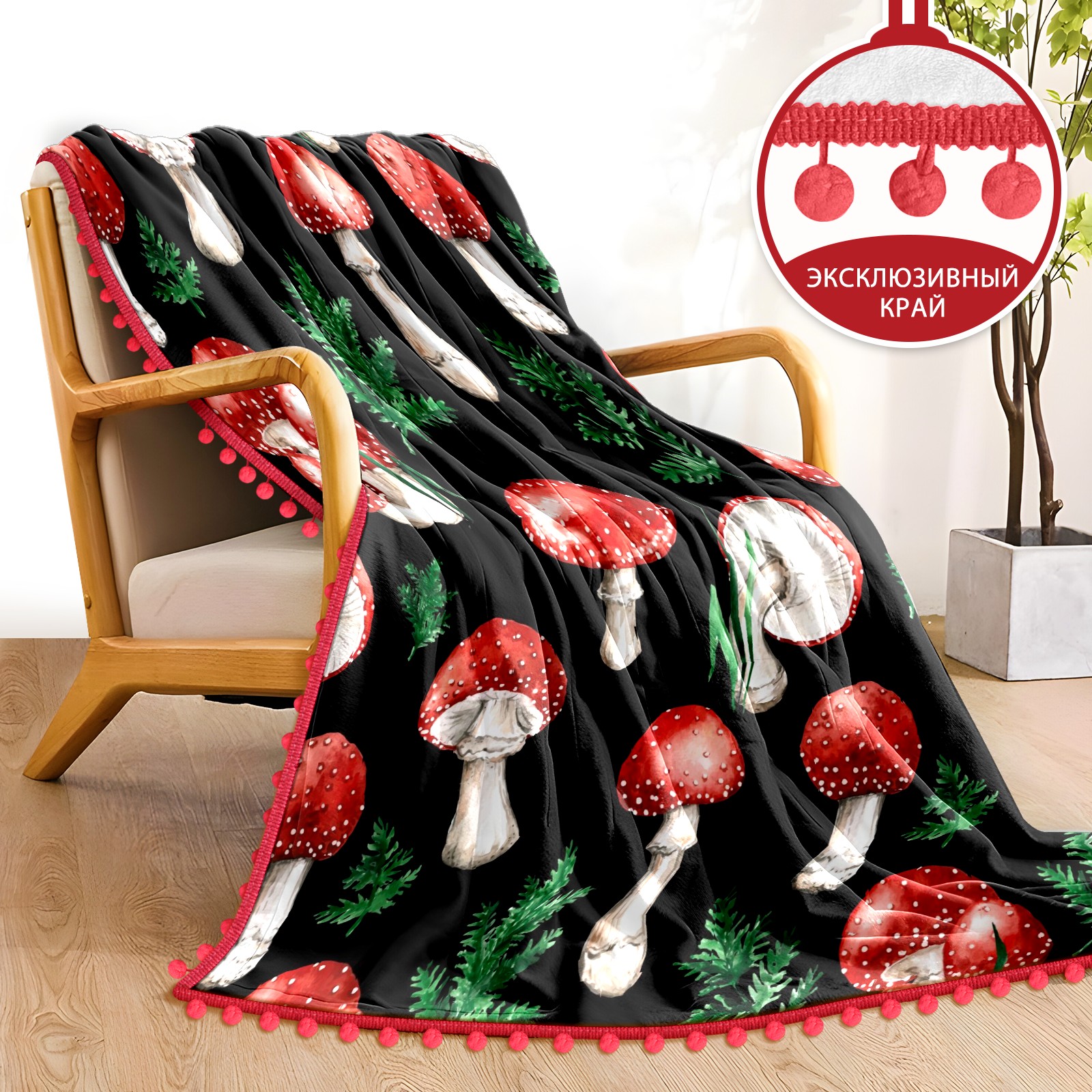 流苏毛毯 Watercolor Red Mushroom