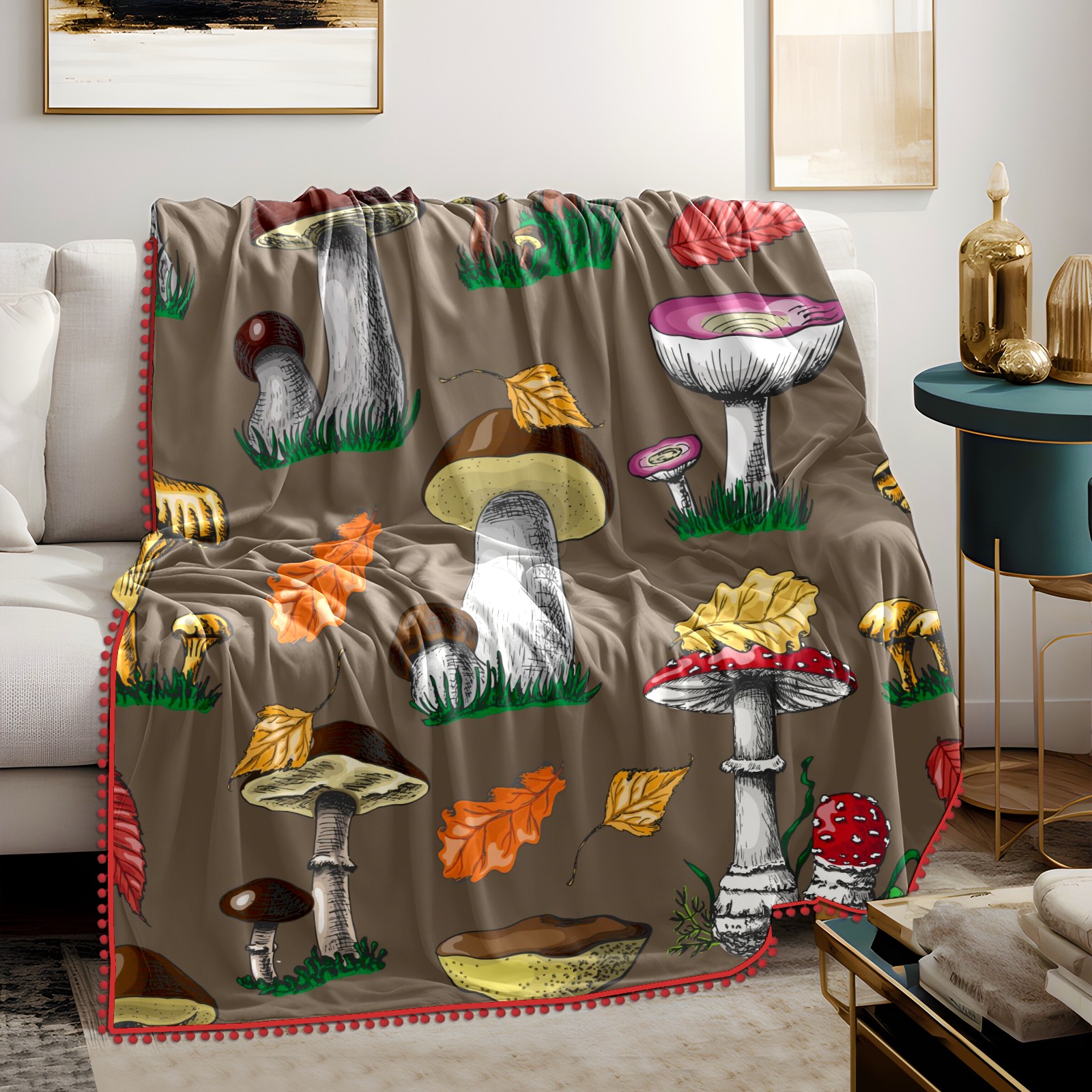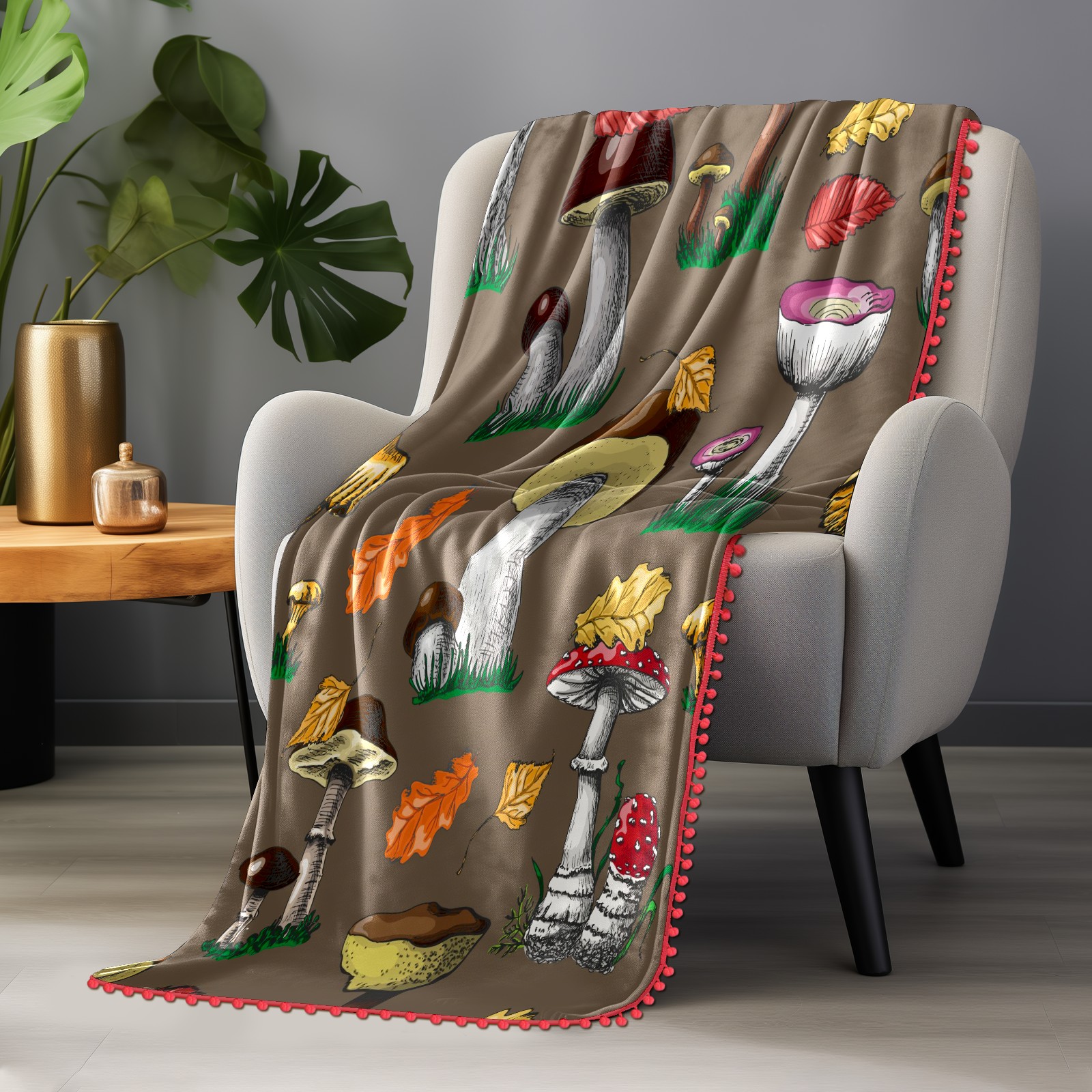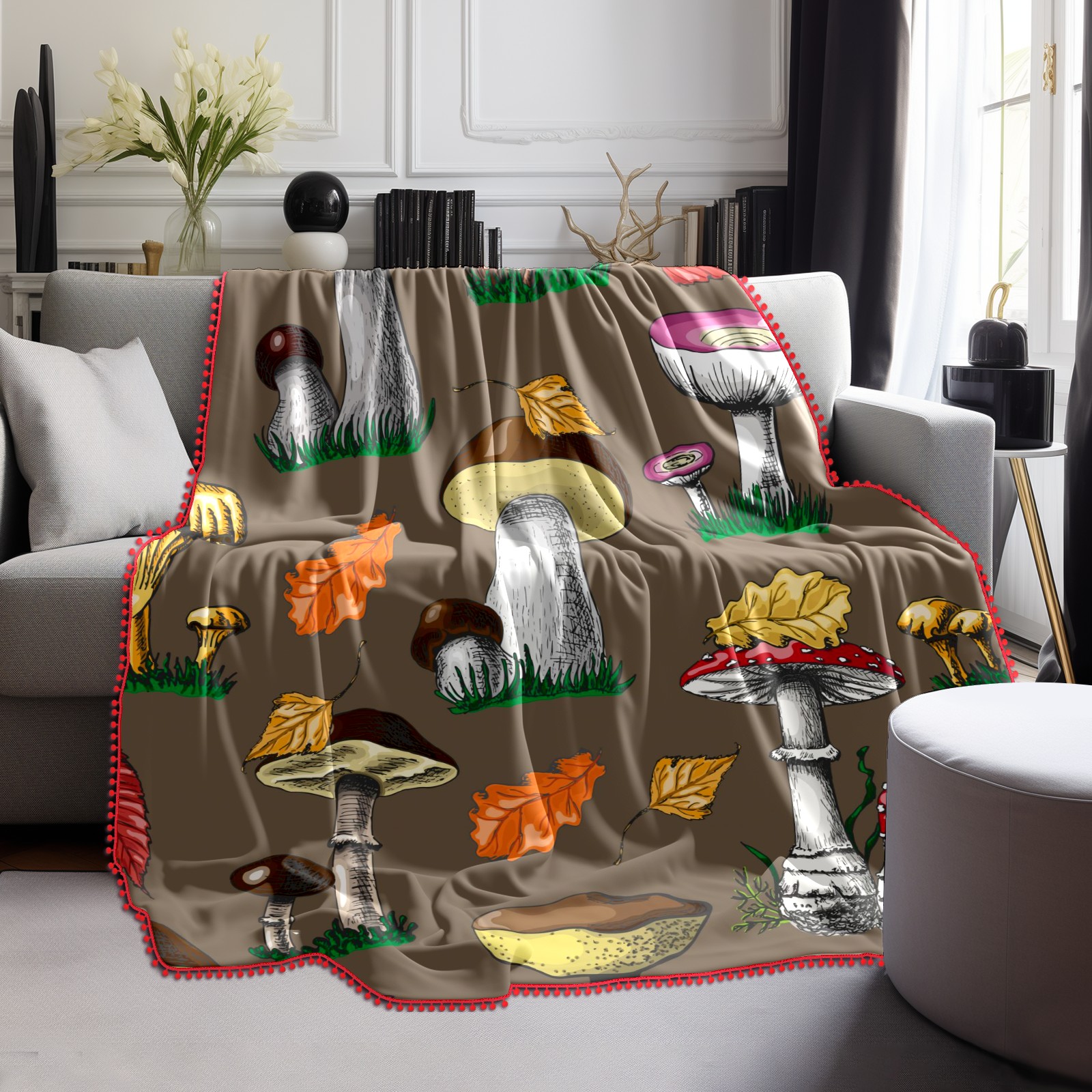流苏毛毯 Autumn Mushrooms And Berries
