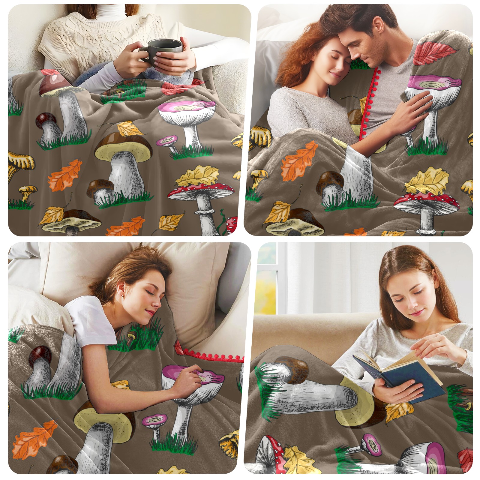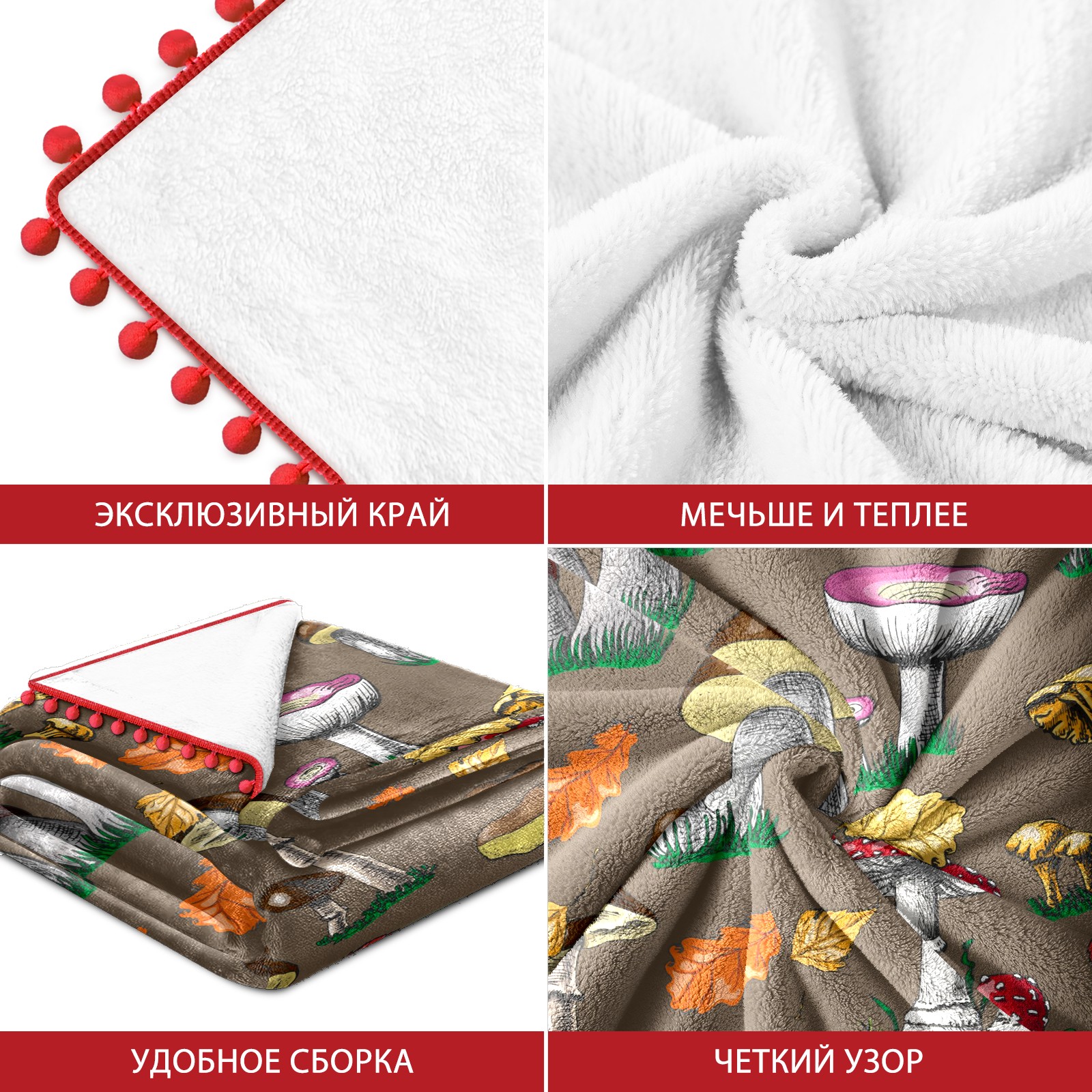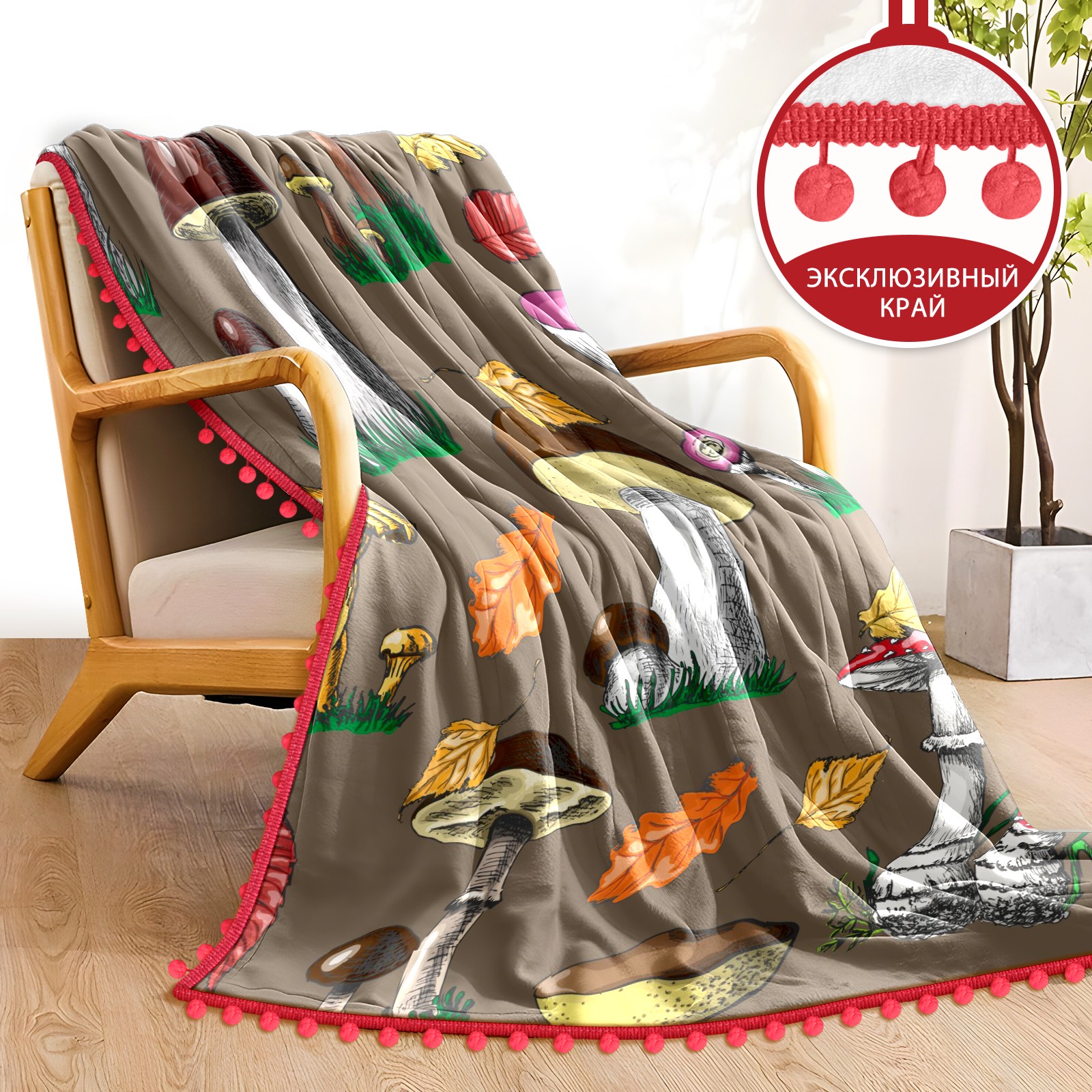流苏毛毯 Autumn Mushrooms And Berries
