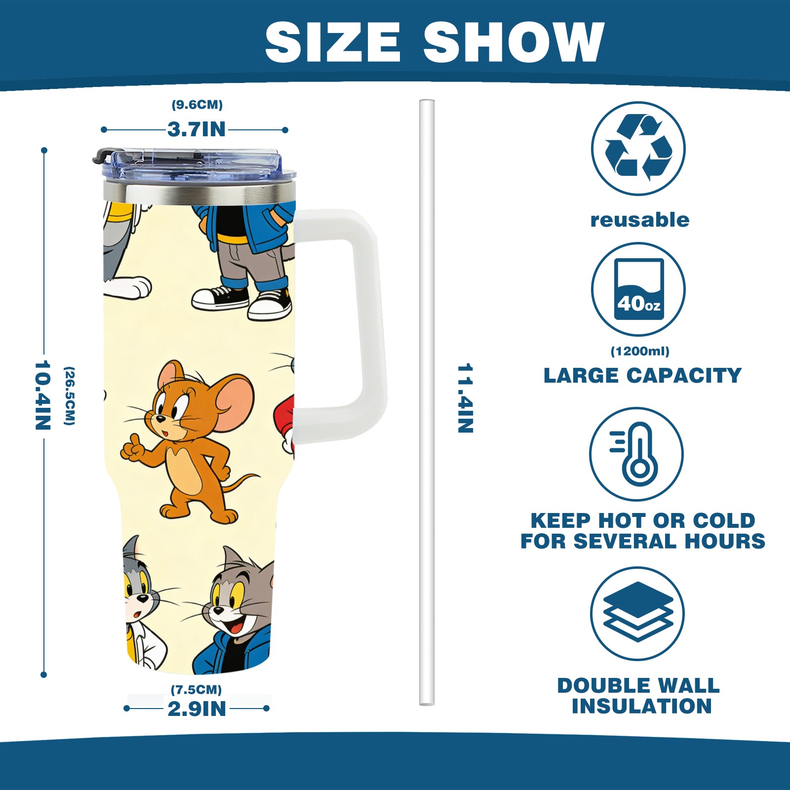 • С большой емкостью 40 унций, он обеспечивает вас гидратацией в течение всего дня, идеально подходит для воды, кофе, сока или других напитков. Эргономичный дизайн идеально вписывается в автомобильные держатели для бутылок, а прочный, герметичный колпачок предотвращает утечки во время передвижения. Путешествие. Антискользящее основание обеспечивает устойчивость, а гладкие поверхности делают уборку легкой — просто мойте вручную или кладите в посудомоечную машину (рекомендуется верхний поддон).