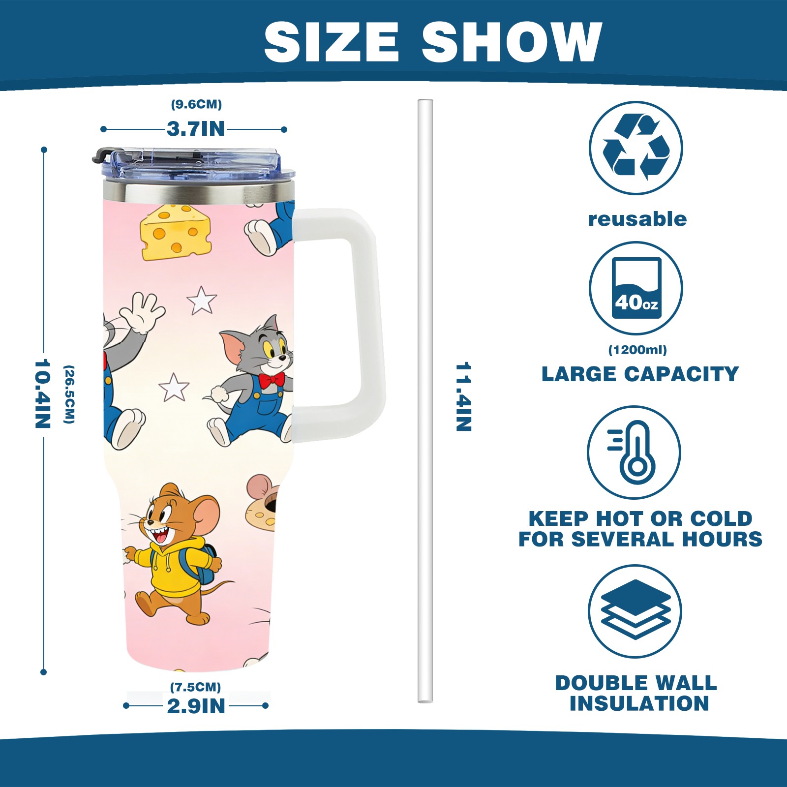 • С большой емкостью 40 унций, он обеспечивает вас гидратацией в течение всего дня, идеально подходит для воды, кофе, сока или других напитков. Эргономичный дизайн идеально вписывается в автомобильные держатели для бутылок, а прочный, герметичный колпачок предотвращает утечки во время передвижения. Путешествие. Антискользящее основание обеспечивает устойчивость, а гладкие поверхности делают уборку легкой — просто мойте вручную или кладите в посудомоечную машину (рекомендуется верхний поддон).