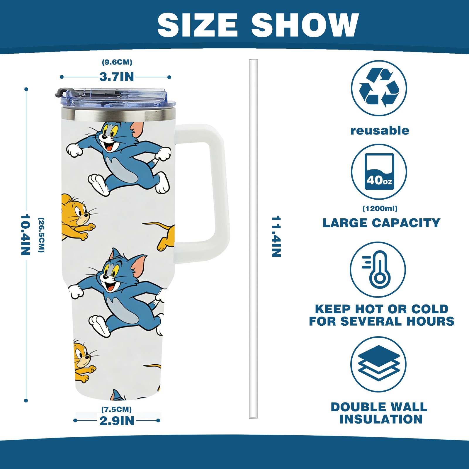 • С большой емкостью 40 унций, он обеспечивает вас гидратацией в течение всего дня, идеально подходит для воды, кофе, сока или других напитков. Эргономичный дизайн идеально вписывается в автомобильные держатели для бутылок, а прочный, герметичный колпачок предотвращает утечки во время передвижения. Путешествие. Антискользящее основание обеспечивает устойчивость, а гладкие поверхности делают уборку легкой — просто мойте вручную или кладите в посудомоечную машину (рекомендуется верхний поддон).
