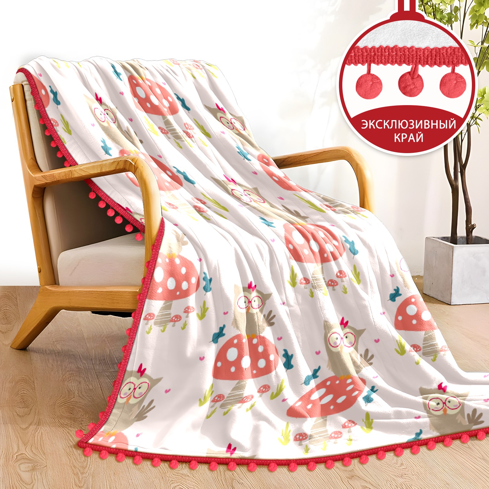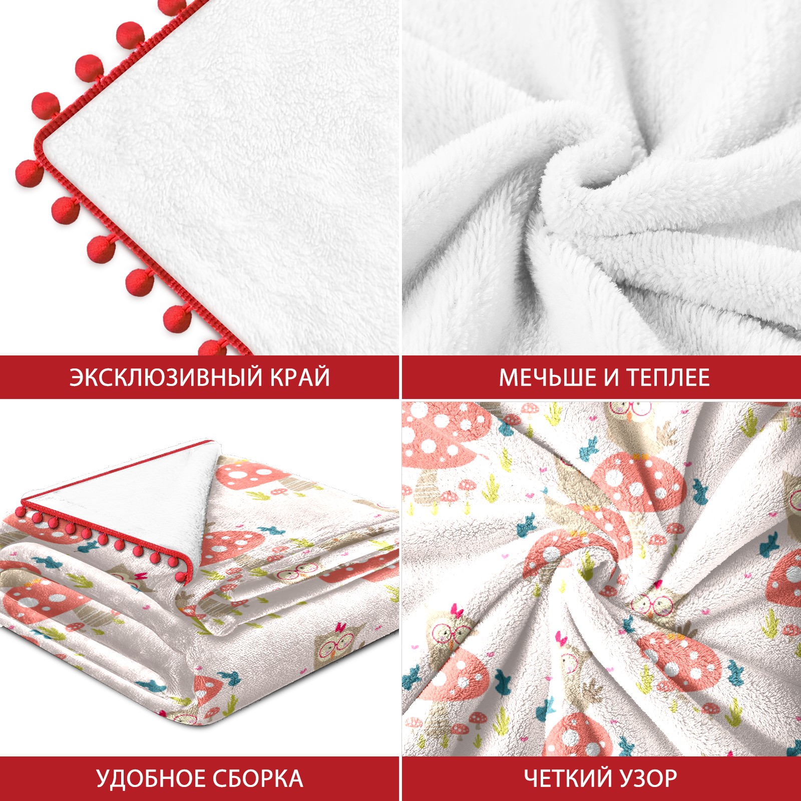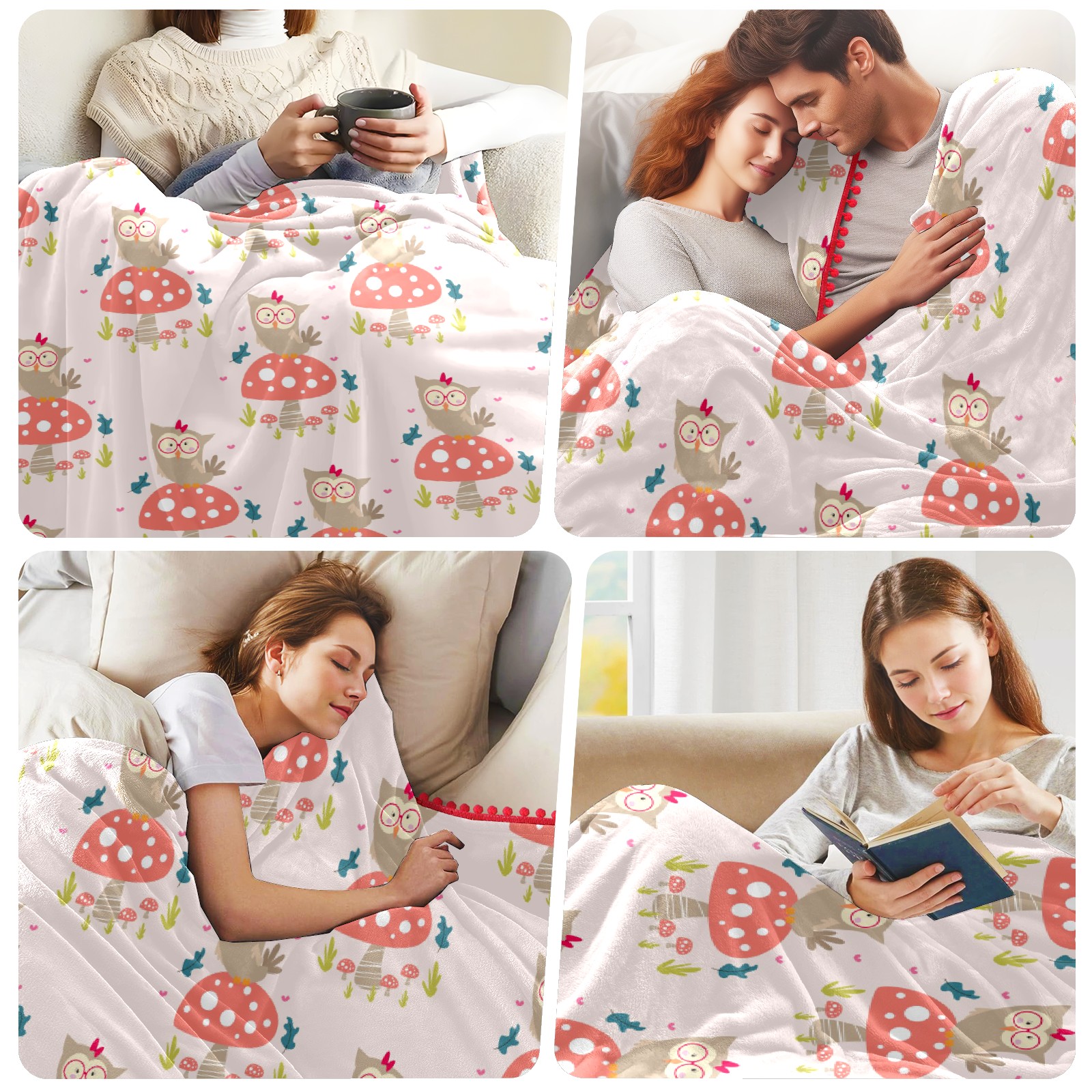 流苏毛毯 Cute Animal Cartoons Owl Mushroom