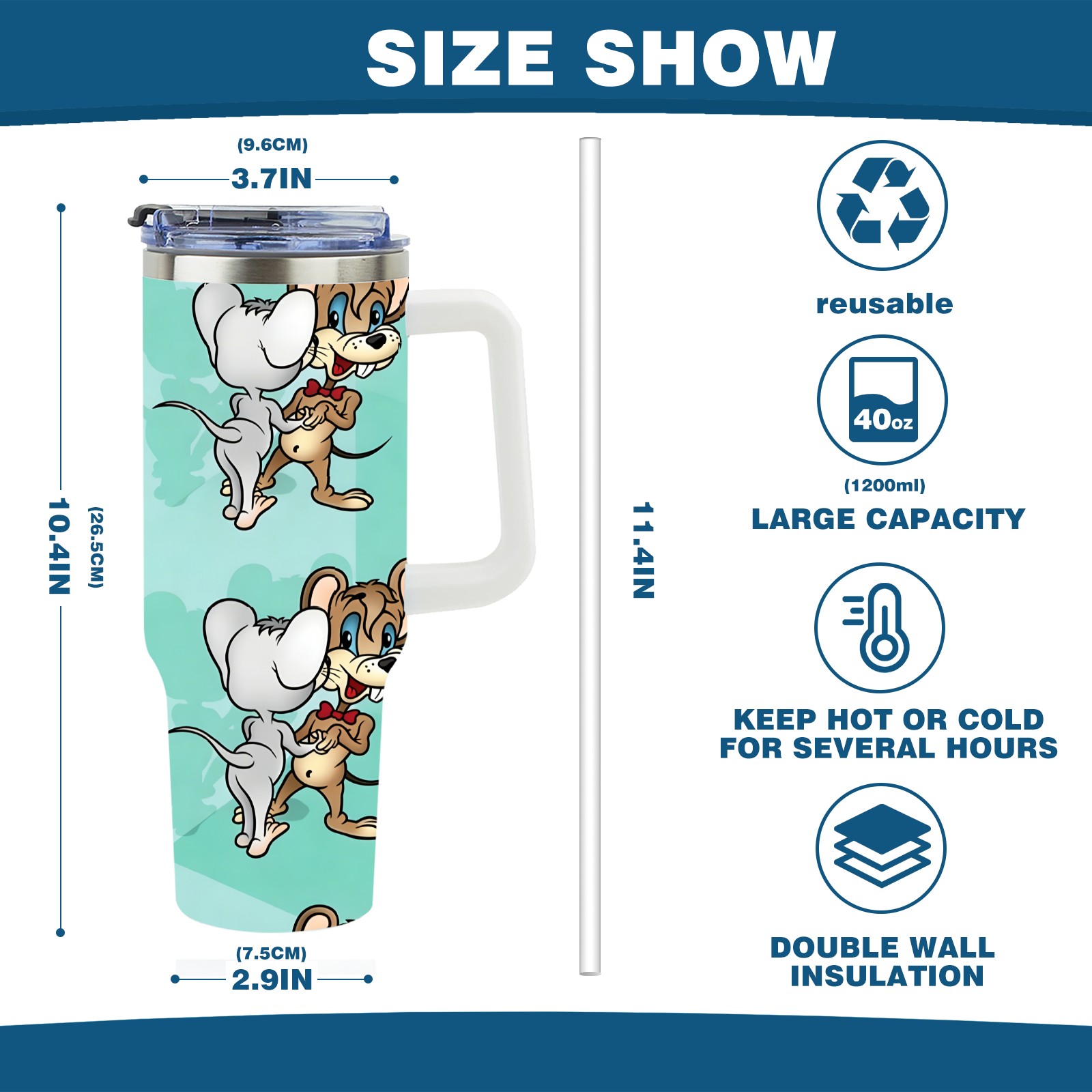 • С большой емкостью 40 унций, он обеспечивает вас гидратацией в течение всего дня, идеально подходит для воды, кофе, сока или других напитков. Эргономичный дизайн идеально вписывается в автомобильные держатели для бутылок, а прочный, герметичный колпачок предотвращает утечки во время передвижения. Путешествие. Антискользящее основание обеспечивает устойчивость, а гладкие поверхности делают уборку легкой — просто мойте вручную или кладите в посудомоечную машину (рекомендуется верхний поддон).