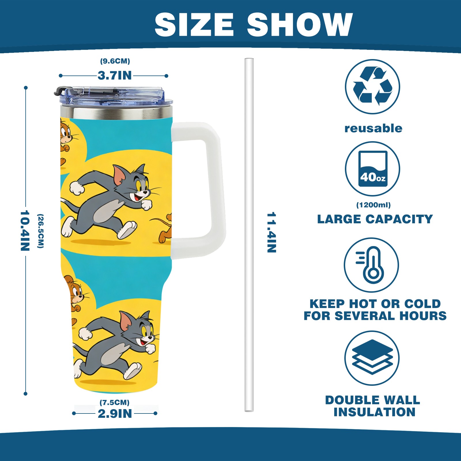 • С большой емкостью 40 унций, он обеспечивает вас гидратацией в течение всего дня, идеально подходит для воды, кофе, сока или других напитков. Эргономичный дизайн идеально вписывается в автомобильные держатели для бутылок, а прочный, герметичный колпачок предотвращает утечки во время передвижения. Путешествие. Антискользящее основание обеспечивает устойчивость, а гладкие поверхности делают уборку легкой — просто мойте вручную или кладите в посудомоечную машину (рекомендуется верхний поддон).