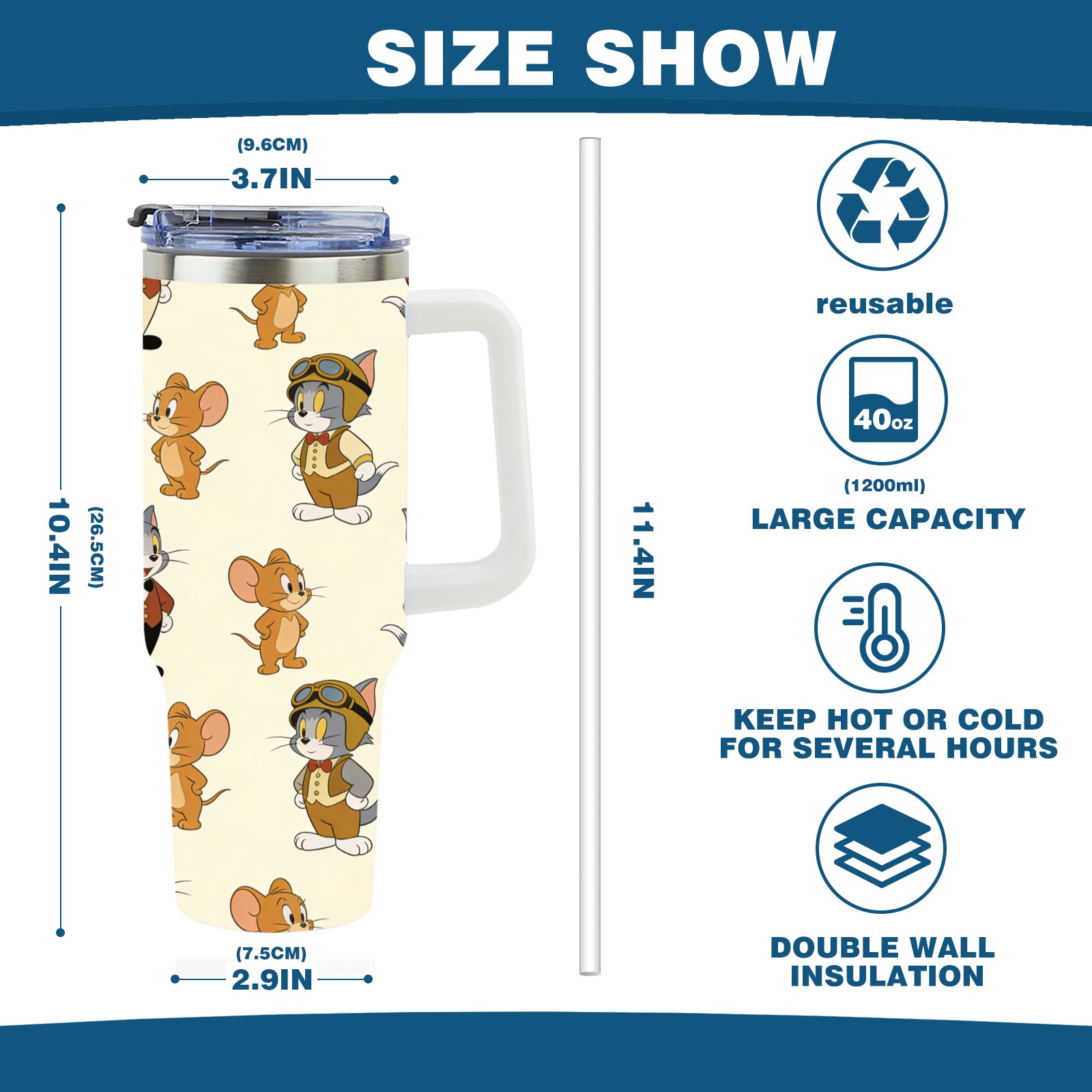• С большой емкостью 40 унций, он обеспечивает вас гидратацией в течение всего дня, идеально подходит для воды, кофе, сока или других напитков. Эргономичный дизайн идеально вписывается в автомобильные держатели для бутылок, а прочный, герметичный колпачок предотвращает утечки во время передвижения. Путешествие. Антискользящее основание обеспечивает устойчивость, а гладкие поверхности делают уборку легкой — просто мойте вручную или кладите в посудомоечную машину (рекомендуется верхний поддон).