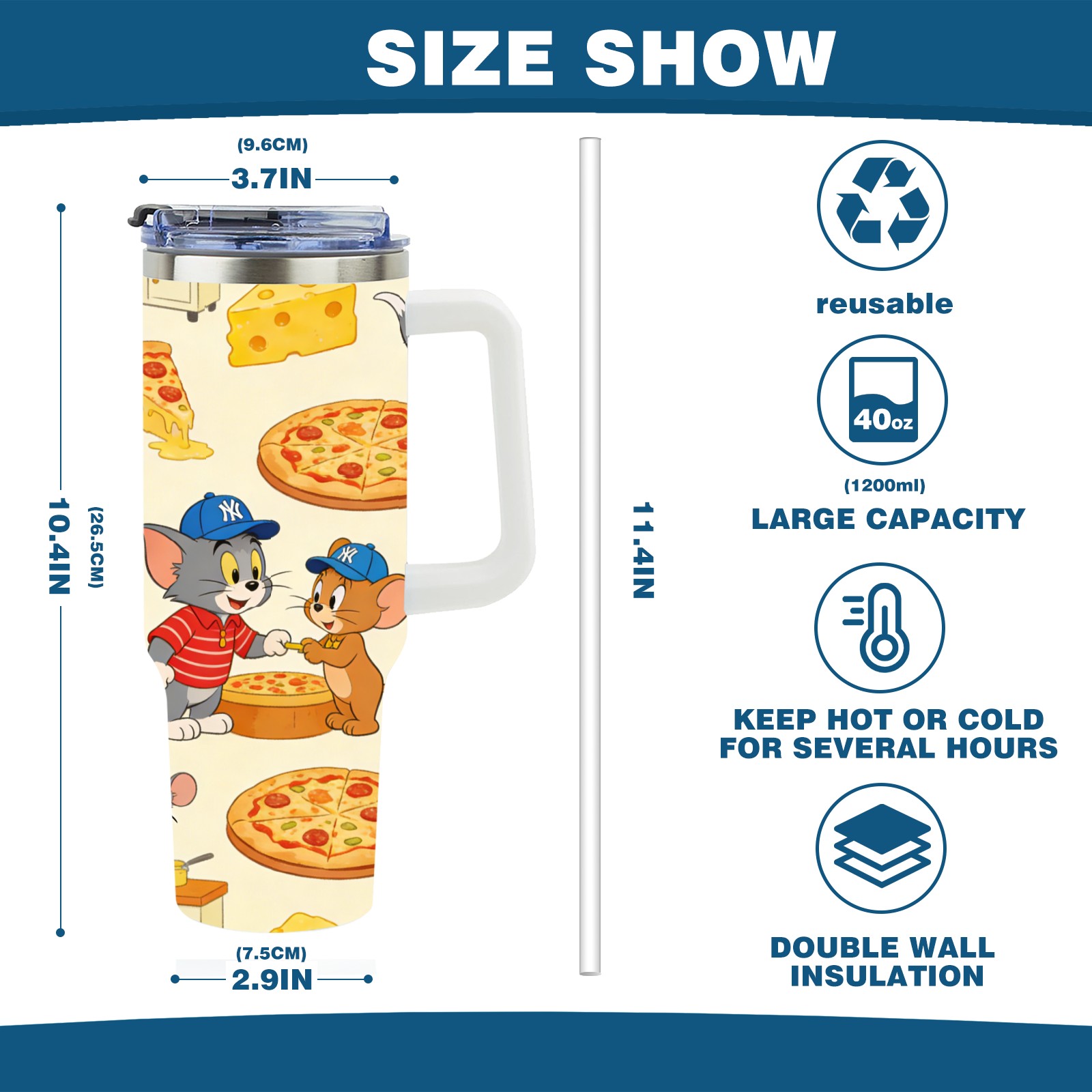 • С большой емкостью 40 унций, он обеспечивает вас гидратацией в течение всего дня, идеально подходит для воды, кофе, сока или других напитков. Эргономичный дизайн идеально вписывается в автомобильные держатели для бутылок, а прочный, герметичный колпачок предотвращает утечки во время передвижения. Путешествие. Антискользящее основание обеспечивает устойчивость, а гладкие поверхности делают уборку легкой — просто мойте вручную или кладите в посудомоечную машину (рекомендуется верхний поддон).