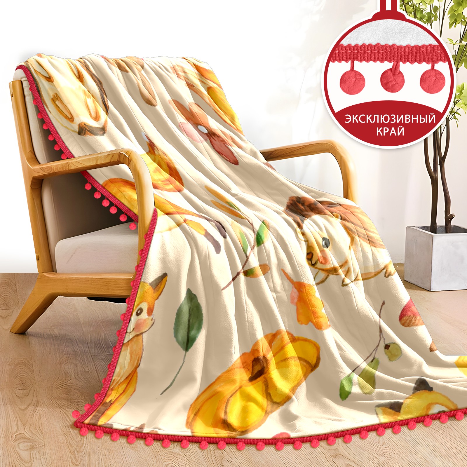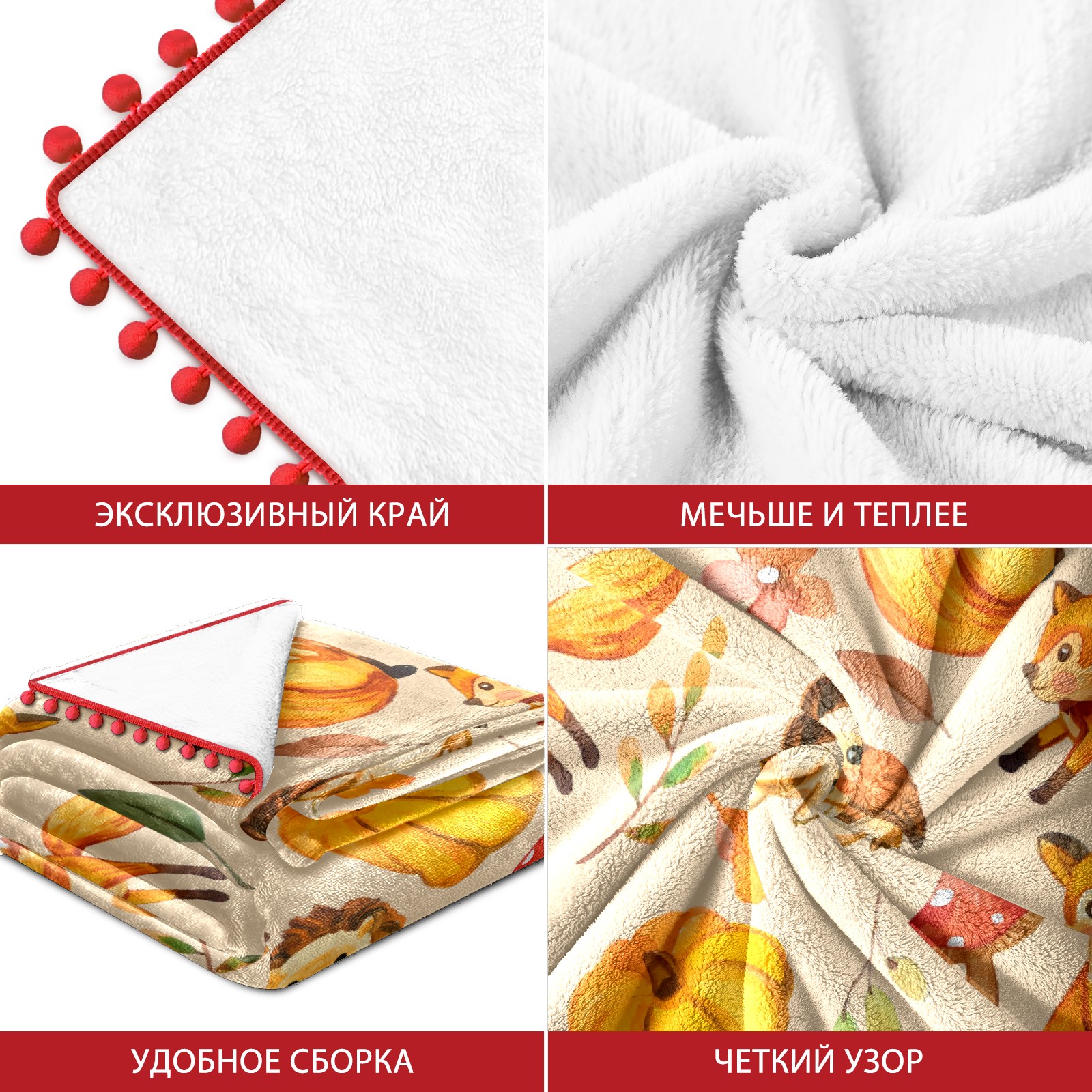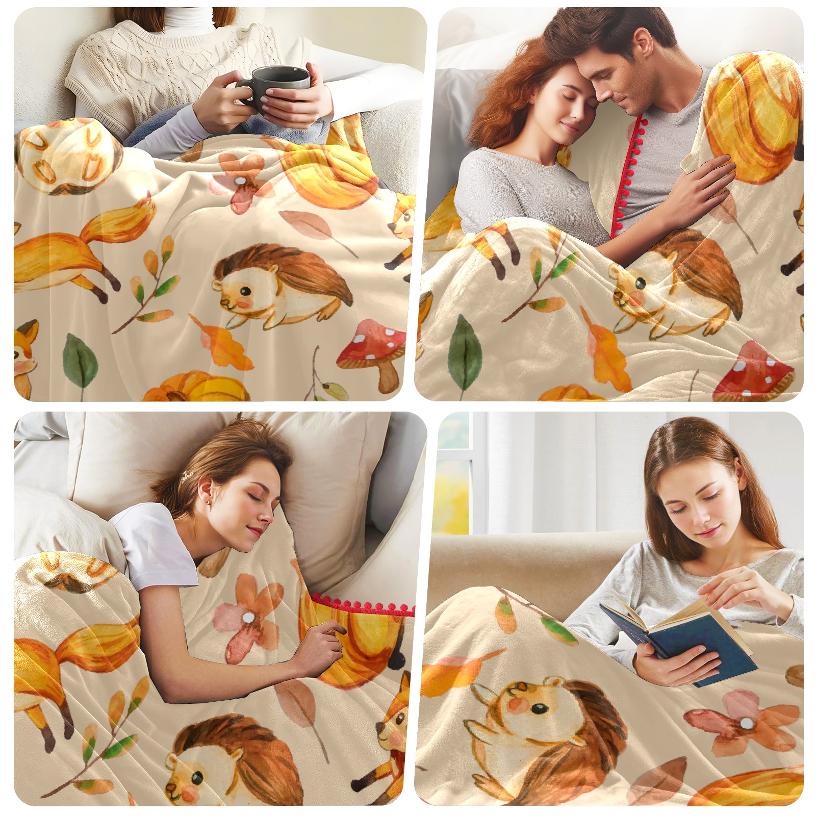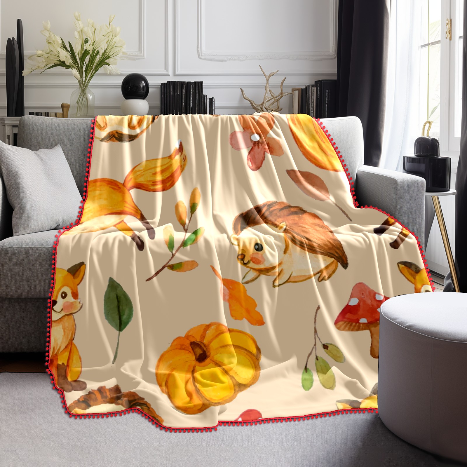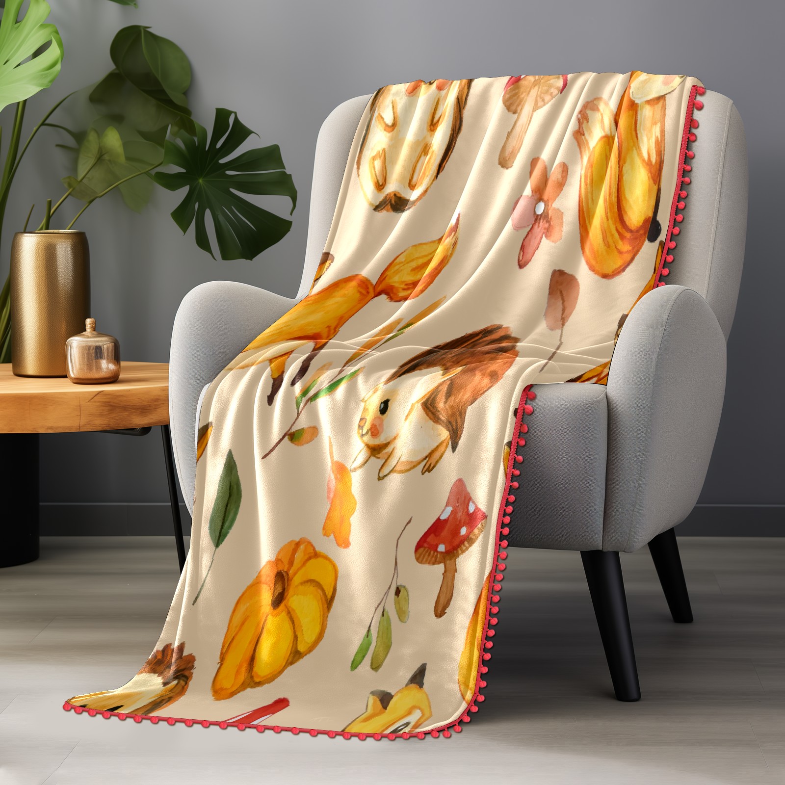 流苏毛毯 Cute Fall Fox Pumpkin Mushroom Pattern