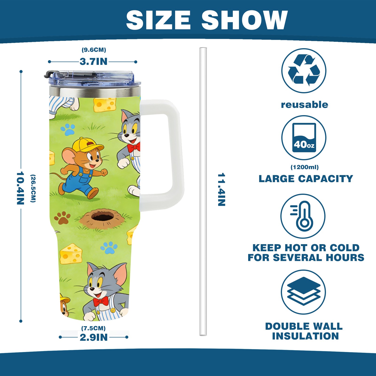 • С большой емкостью 40 унций, он обеспечивает вас гидратацией в течение всего дня, идеально подходит для воды, кофе, сока или других напитков. Эргономичный дизайн идеально вписывается в автомобильные держатели для бутылок, а прочный, герметичный колпачок предотвращает утечки во время передвижения. Путешествие. Антискользящее основание обеспечивает устойчивость, а гладкие поверхности делают уборку легкой — просто мойте вручную или кладите в посудомоечную машину (рекомендуется верхний поддон).