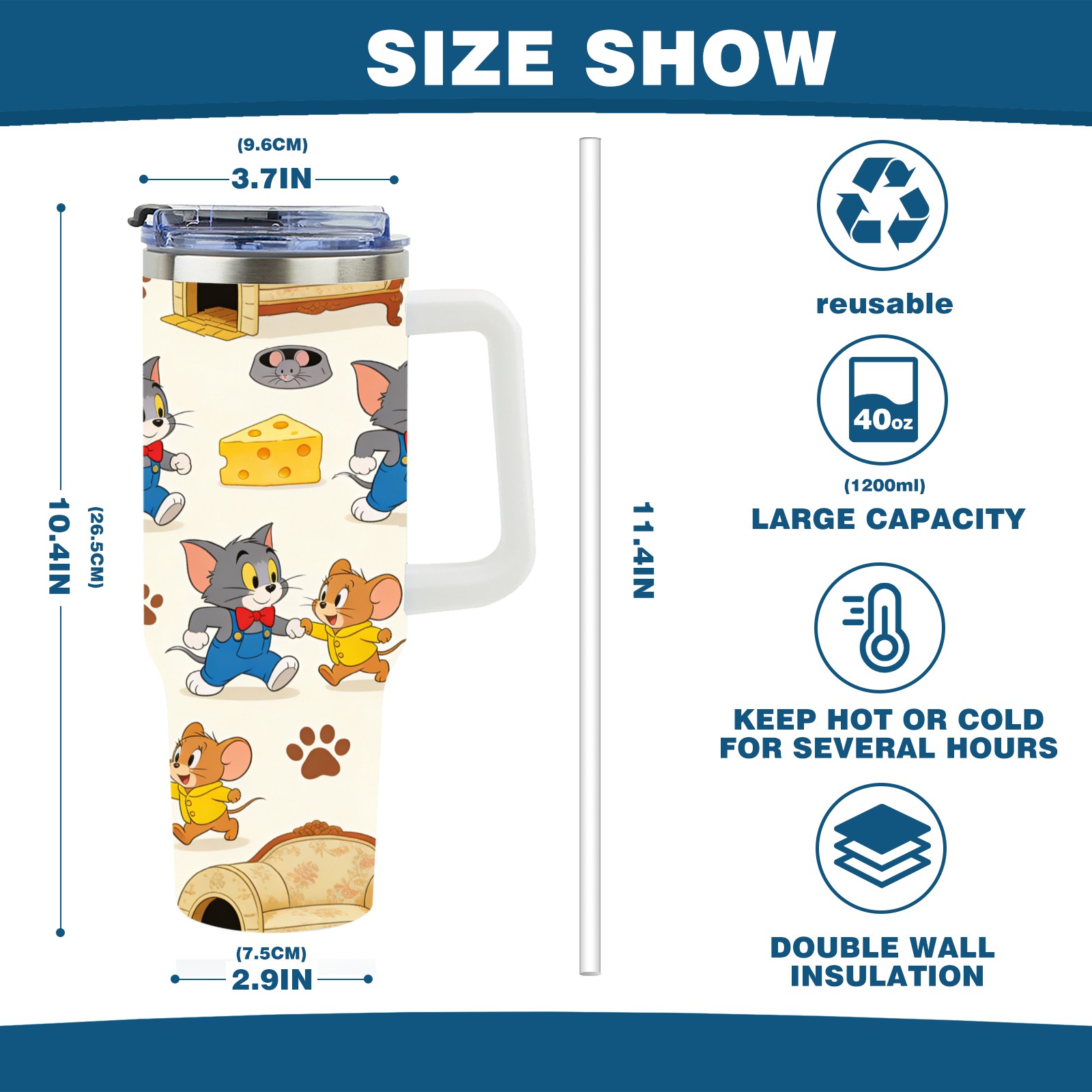 • С большой емкостью 40 унций, он обеспечивает вас гидратацией в течение всего дня, идеально подходит для воды, кофе, сока или других напитков. Эргономичный дизайн идеально вписывается в автомобильные держатели для бутылок, а прочный, герметичный колпачок предотвращает утечки во время передвижения. Путешествие. Антискользящее основание обеспечивает устойчивость, а гладкие поверхности делают уборку легкой — просто мойте вручную или кладите в посудомоечную машину (рекомендуется верхний поддон).