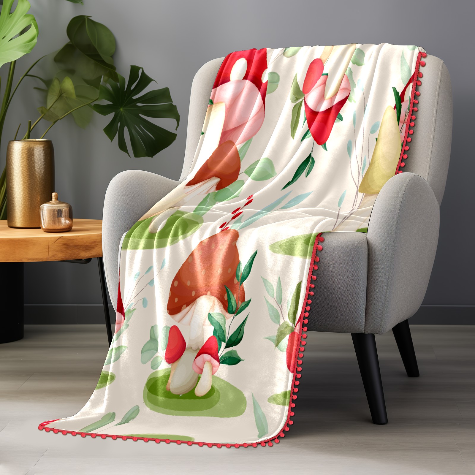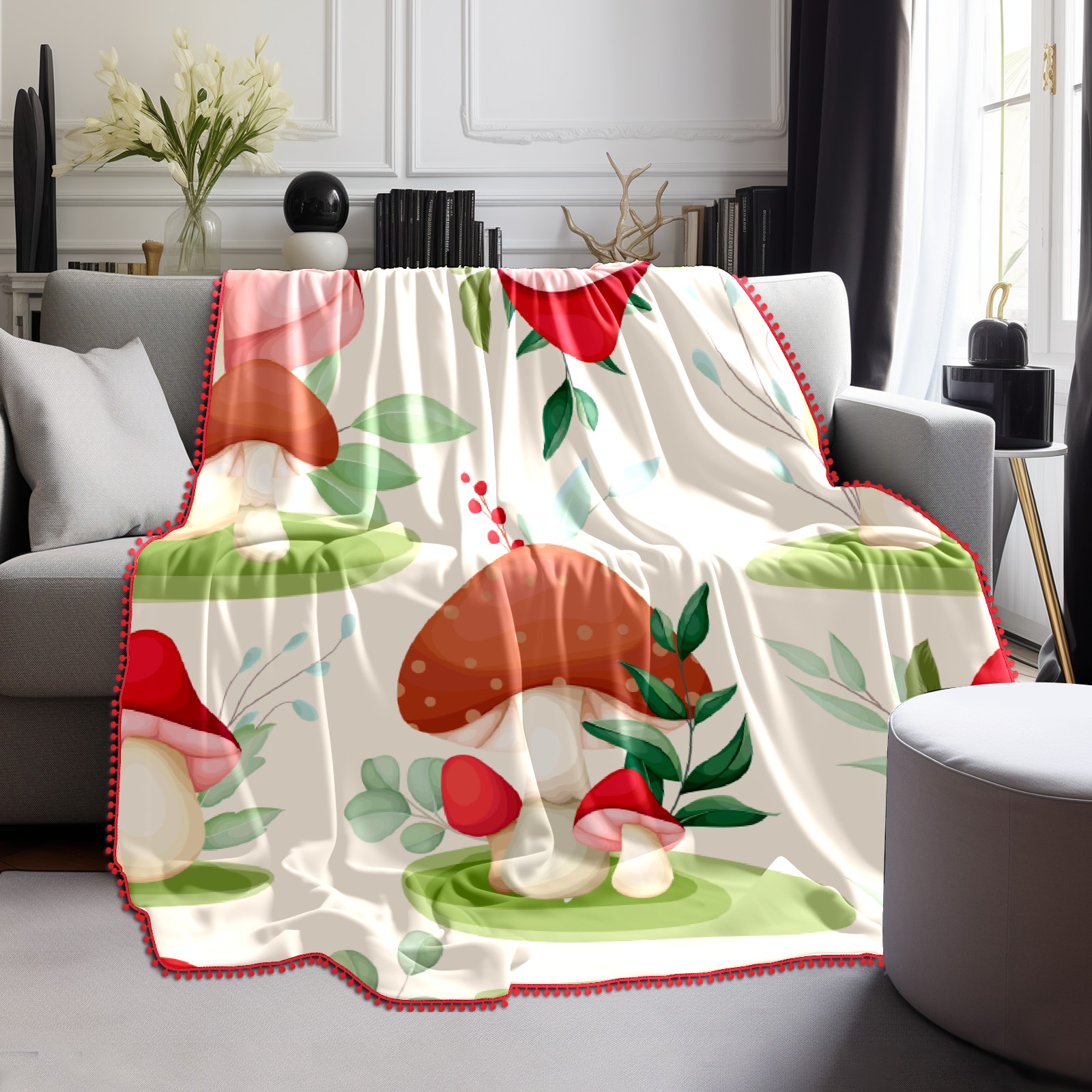 流苏毛毯 Cute Mushroom Leaves