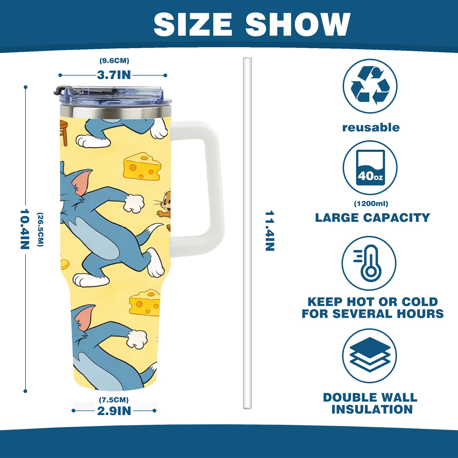 • С большой емкостью 40 унций, он обеспечивает вас гидратацией в течение всего дня, идеально подходит для воды, кофе, сока или других напитков. Эргономичный дизайн идеально вписывается в автомобильные держатели для бутылок, а прочный, герметичный колпачок предотвращает утечки во время передвижения. Путешествие. Антискользящее основание обеспечивает устойчивость, а гладкие поверхности делают уборку легкой — просто мойте вручную или кладите в посудомоечную машину (рекомендуется верхний поддон).