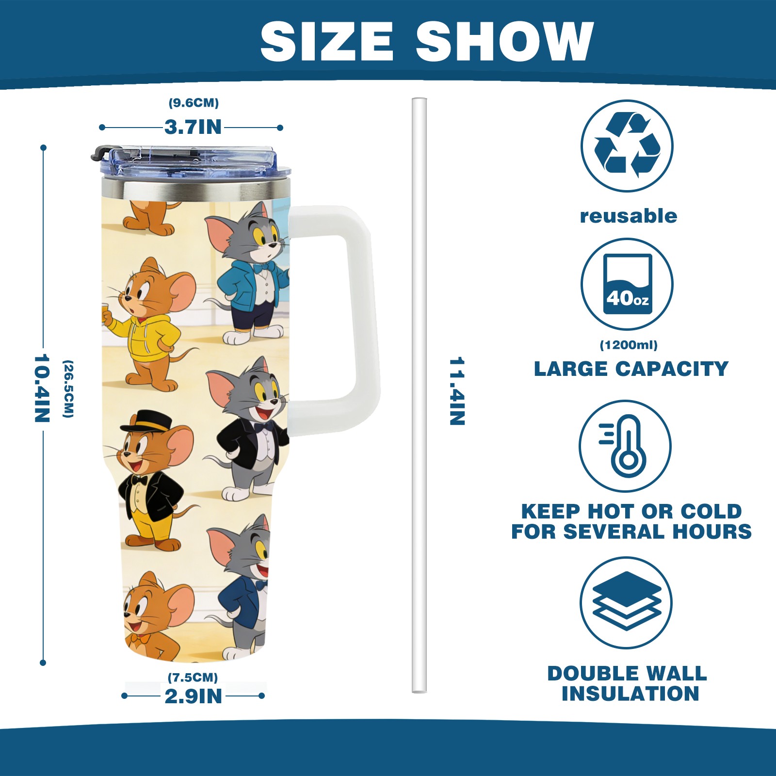 • С большой емкостью 40 унций, он обеспечивает вас гидратацией в течение всего дня, идеально подходит для воды, кофе, сока или других напитков. Эргономичный дизайн идеально вписывается в автомобильные держатели для бутылок, а прочный, герметичный колпачок предотвращает утечки во время передвижения. Путешествие. Антискользящее основание обеспечивает устойчивость, а гладкие поверхности делают уборку легкой — просто мойте вручную или кладите в посудомоечную машину (рекомендуется верхний поддон).