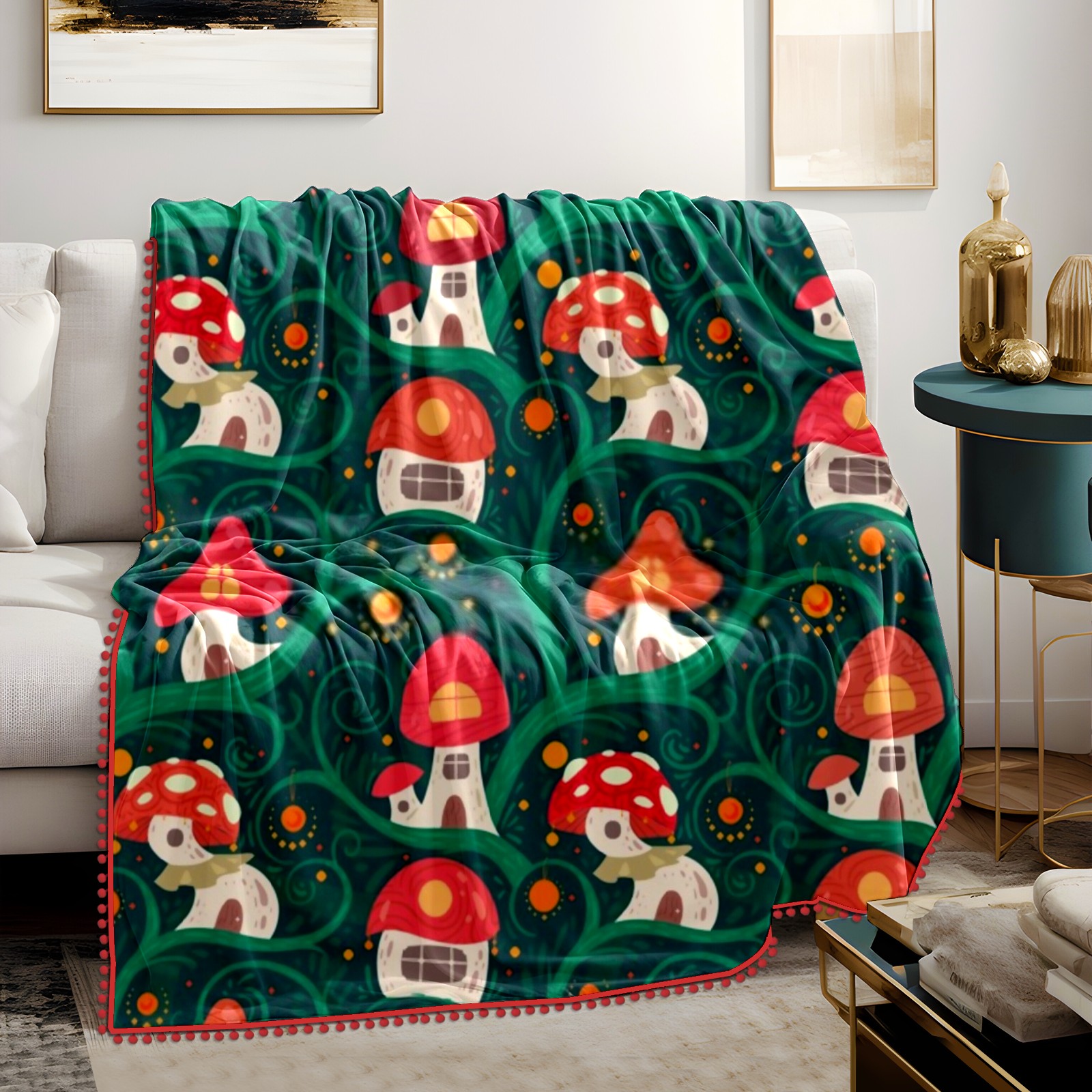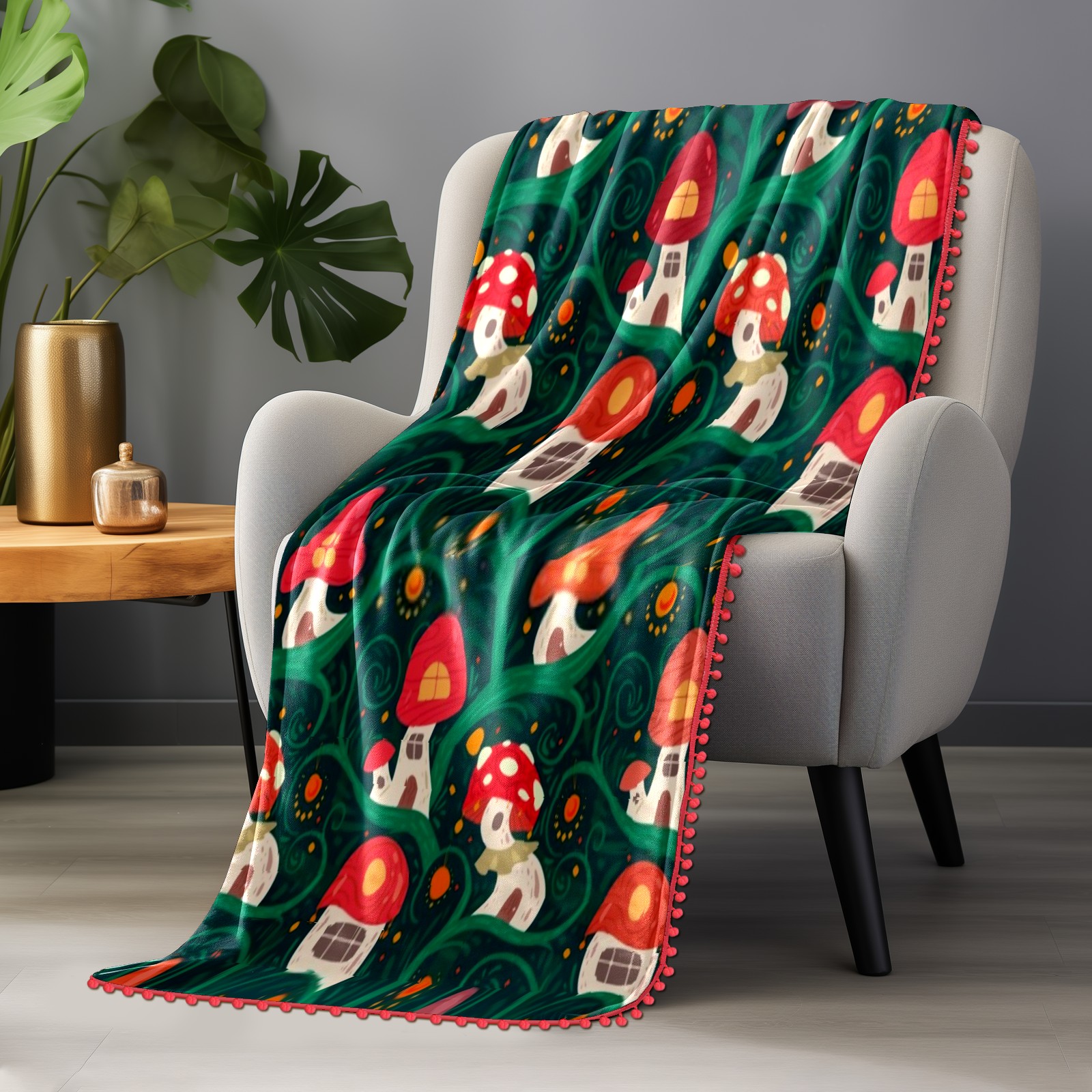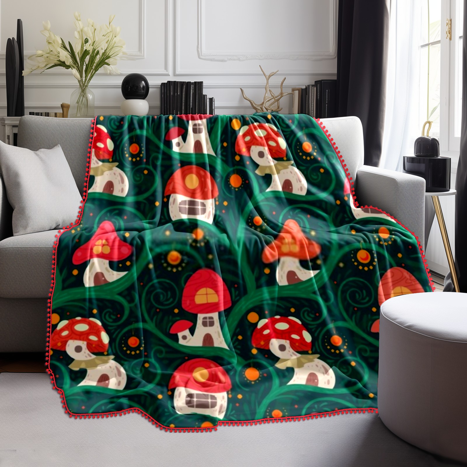 流苏毛毯 Cute Mushrooms