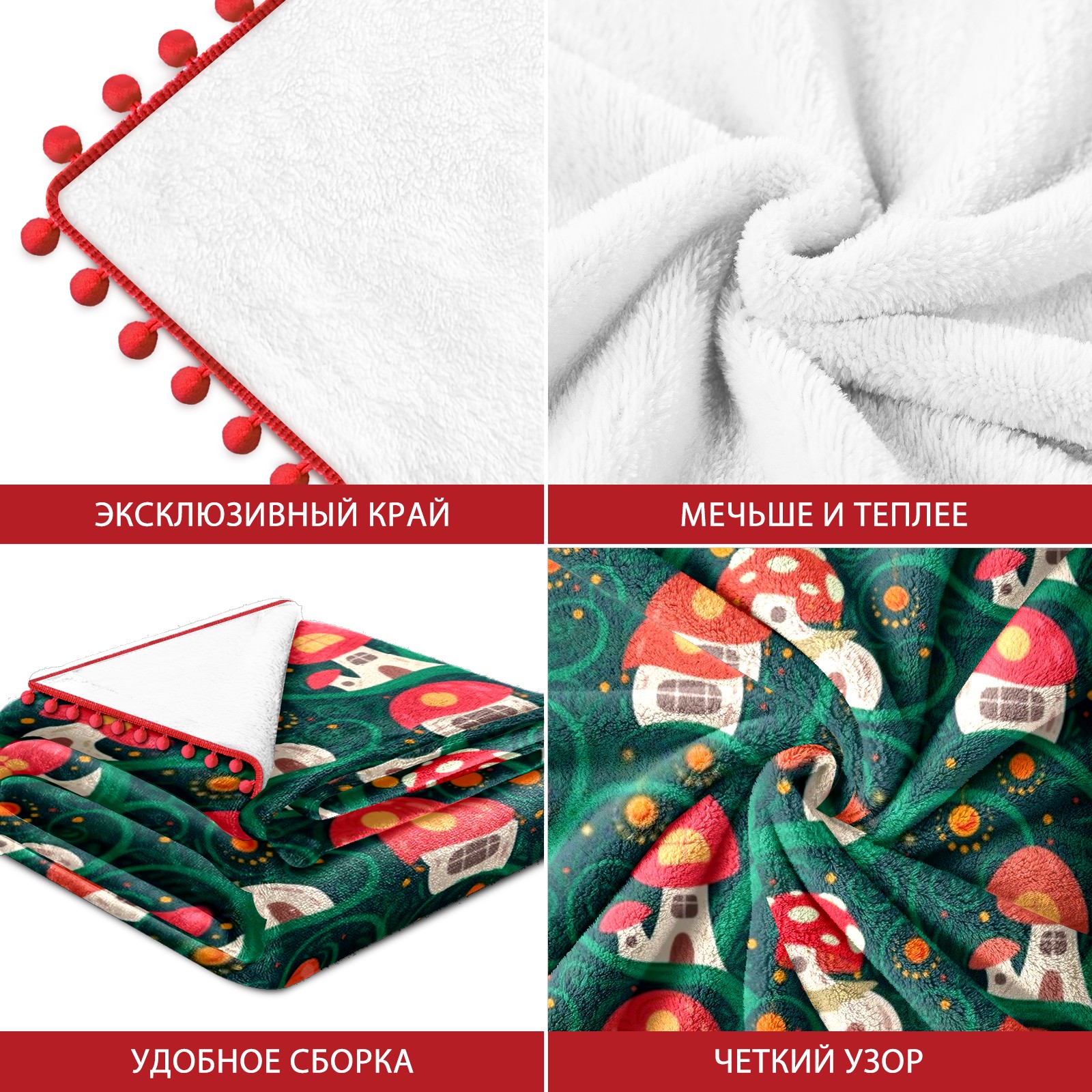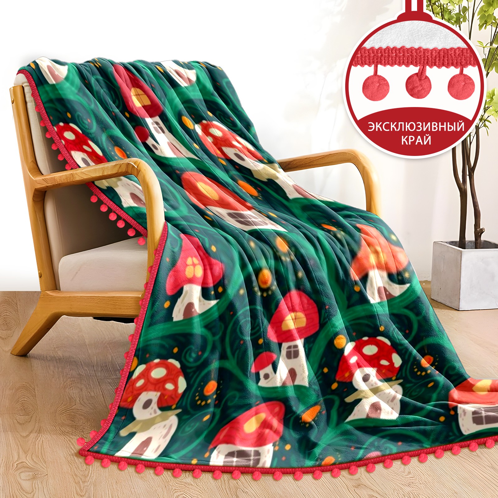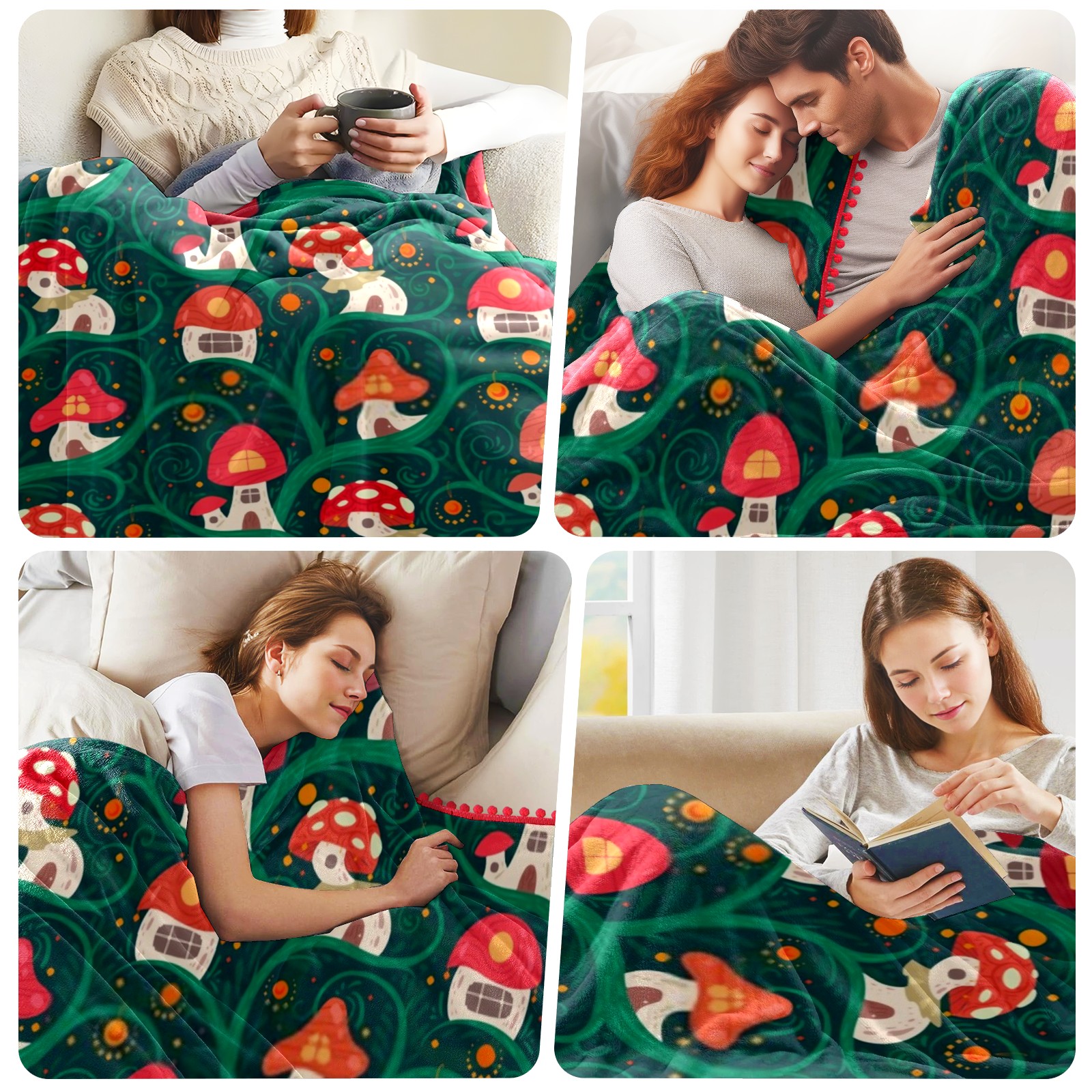 流苏毛毯 Cute Mushrooms