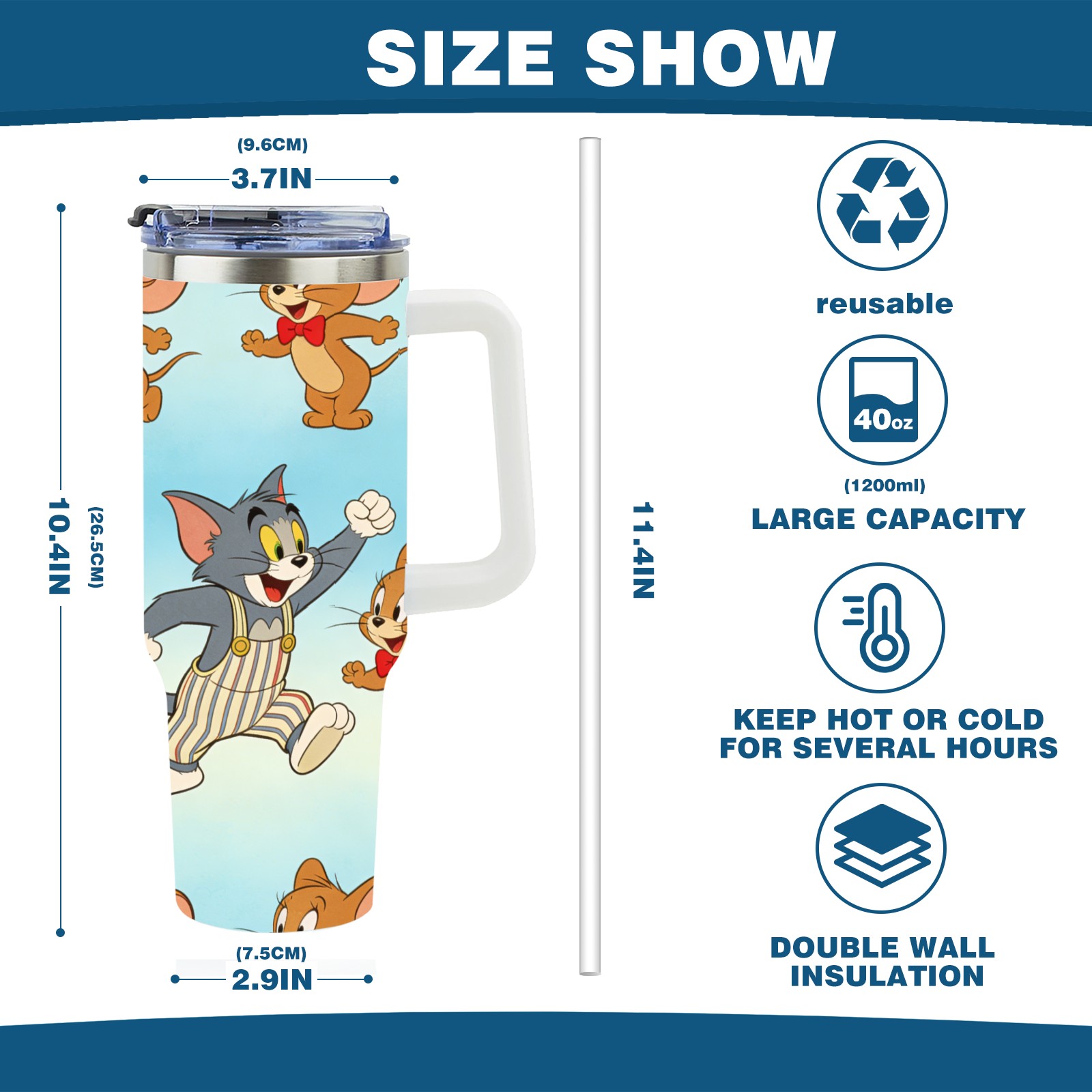 • С большой емкостью 40 унций, он обеспечивает вас гидратацией в течение всего дня, идеально подходит для воды, кофе, сока или других напитков. Эргономичный дизайн идеально вписывается в автомобильные держатели для бутылок, а прочный, герметичный колпачок предотвращает утечки во время передвижения. Путешествие. Антискользящее основание обеспечивает устойчивость, а гладкие поверхности делают уборку легкой — просто мойте вручную или кладите в посудомоечную машину (рекомендуется верхний поддон).