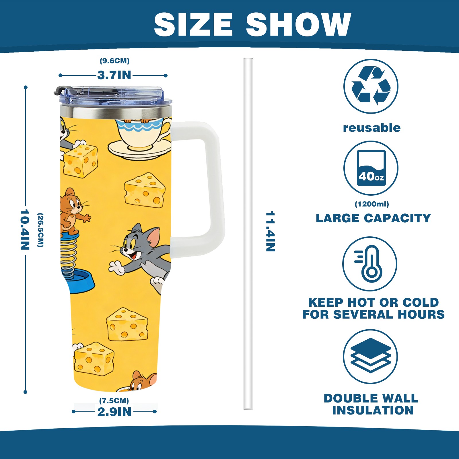 • С большой емкостью 40 унций, он обеспечивает вас гидратацией в течение всего дня, идеально подходит для воды, кофе, сока или других напитков. Эргономичный дизайн идеально вписывается в автомобильные держатели для бутылок, а прочный, герметичный колпачок предотвращает утечки во время передвижения. Путешествие. Антискользящее основание обеспечивает устойчивость, а гладкие поверхности делают уборку легкой — просто мойте вручную или кладите в посудомоечную машину (рекомендуется верхний поддон).