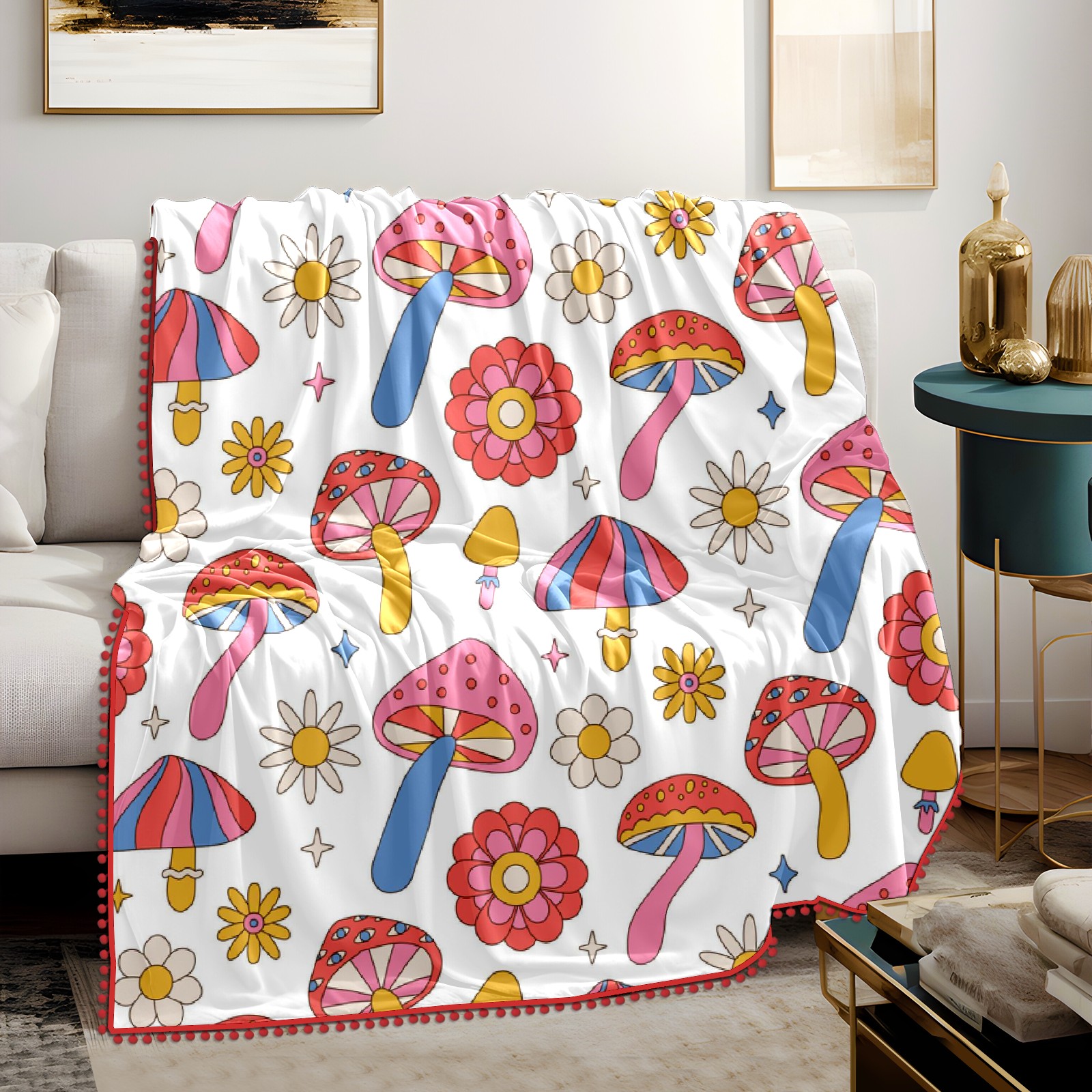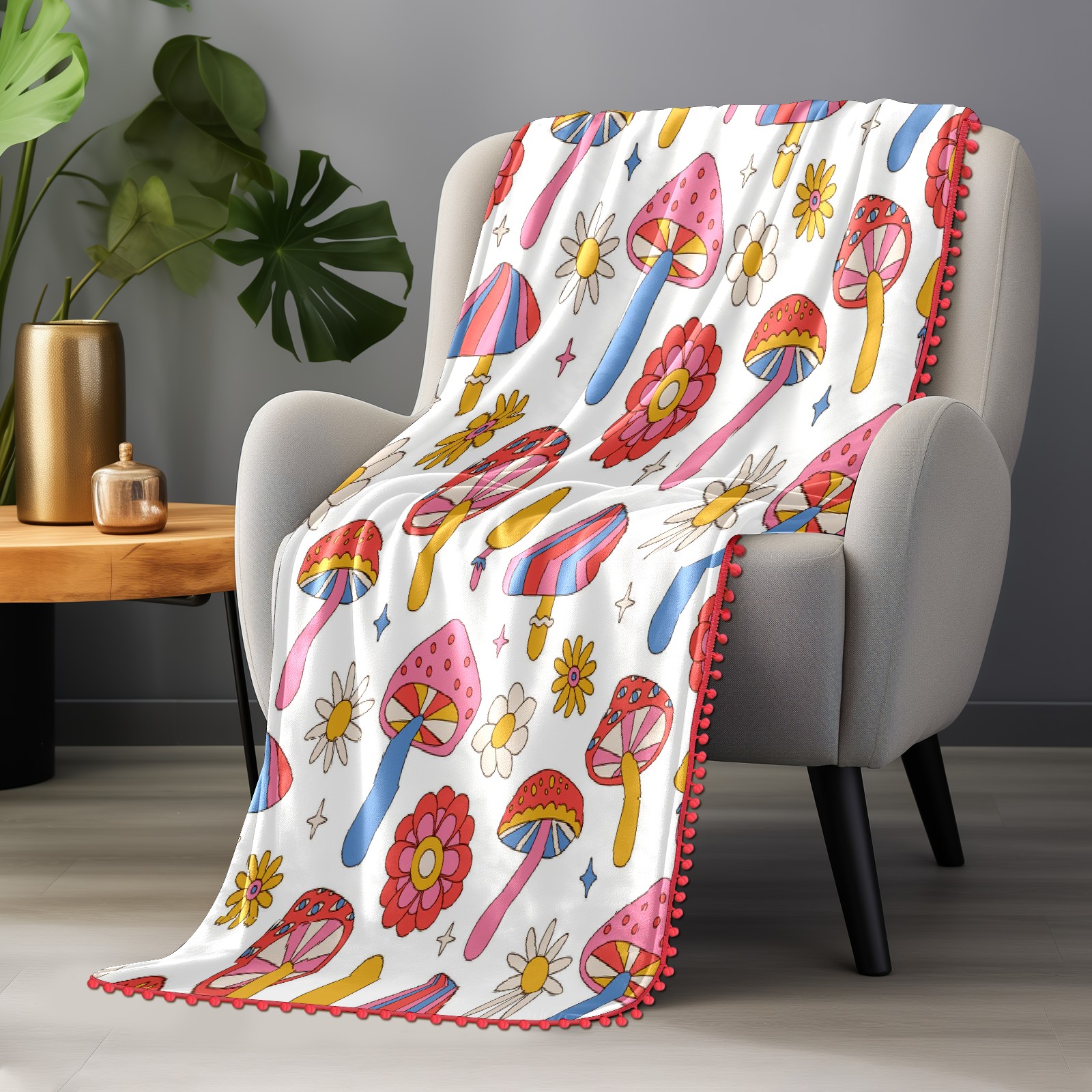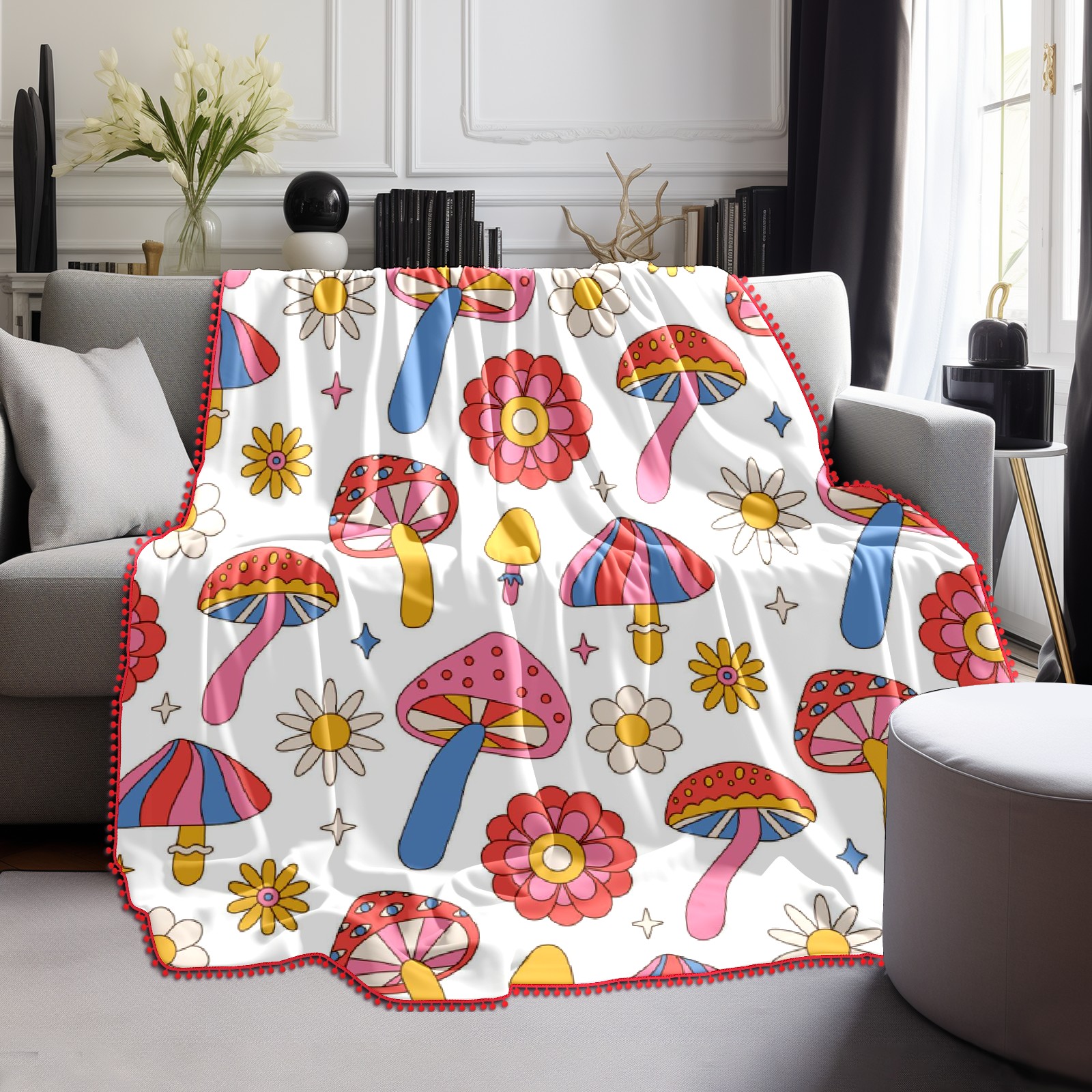 流苏毛毯 Mushrooms Daisy Flowers