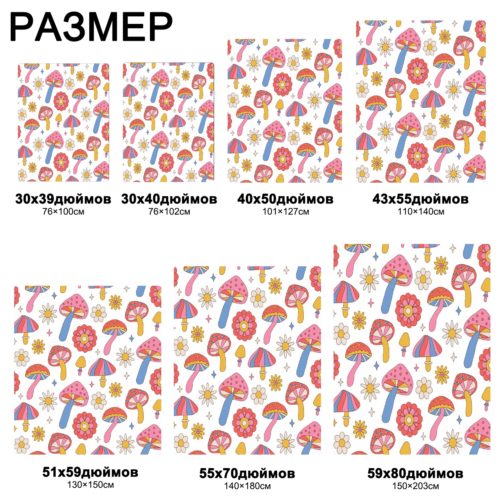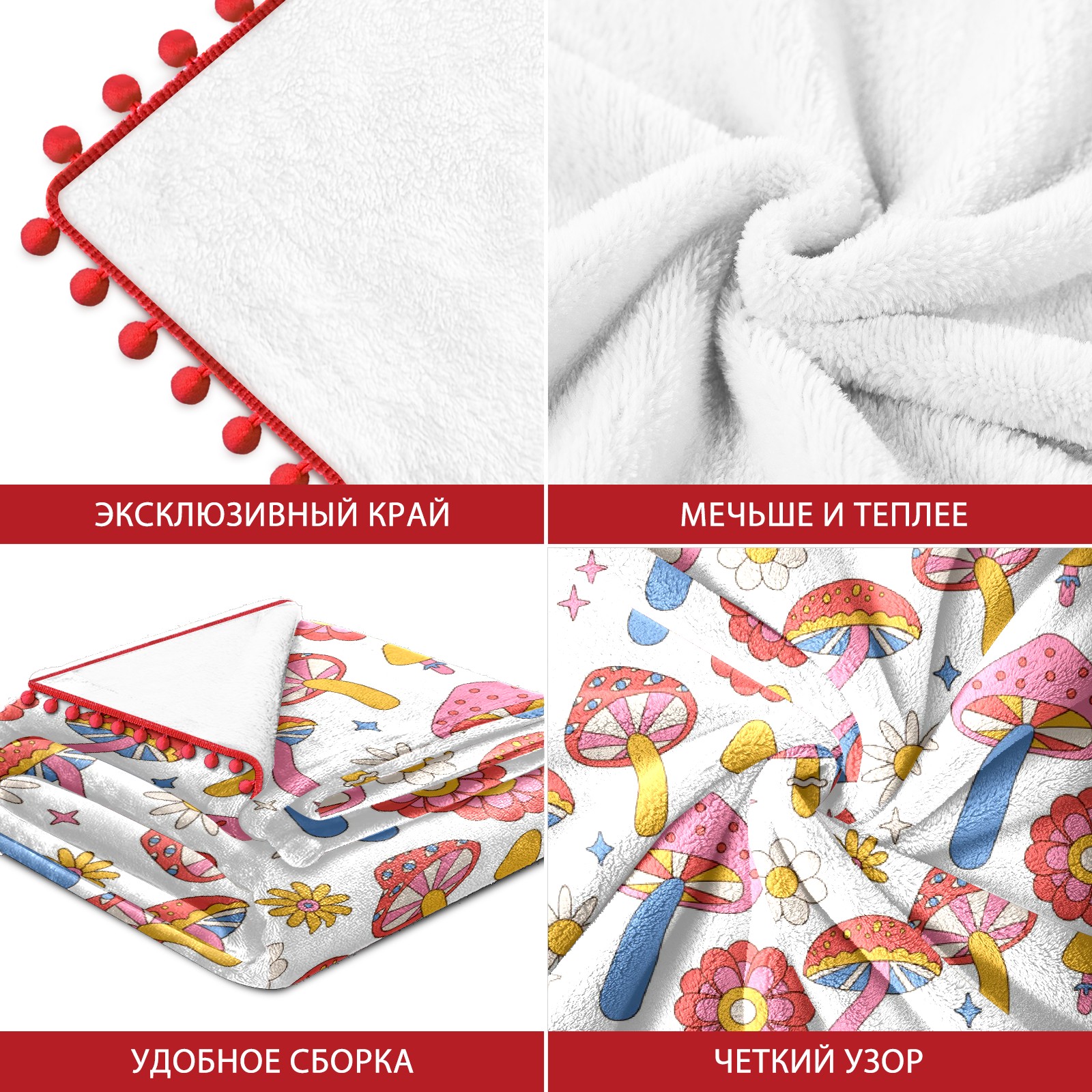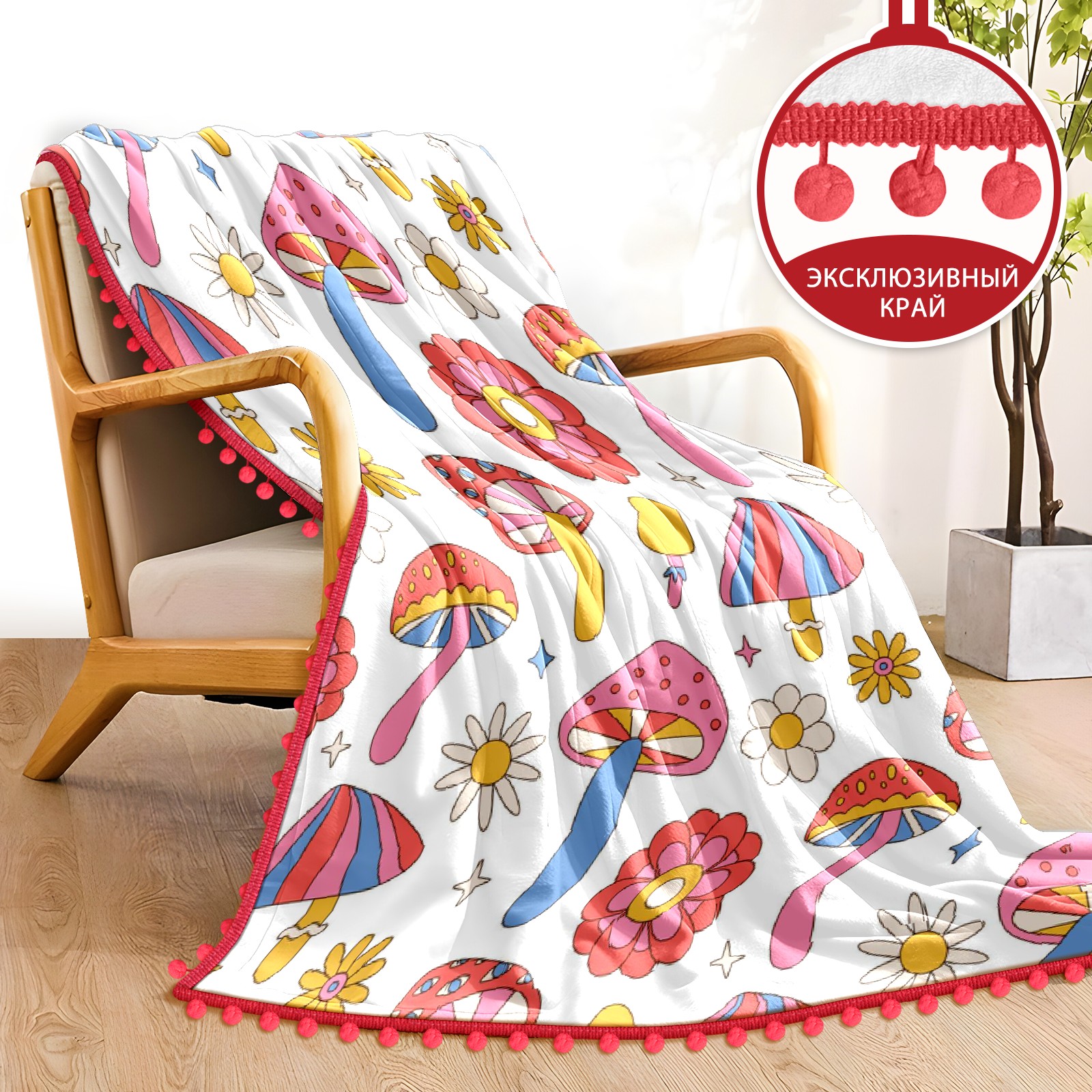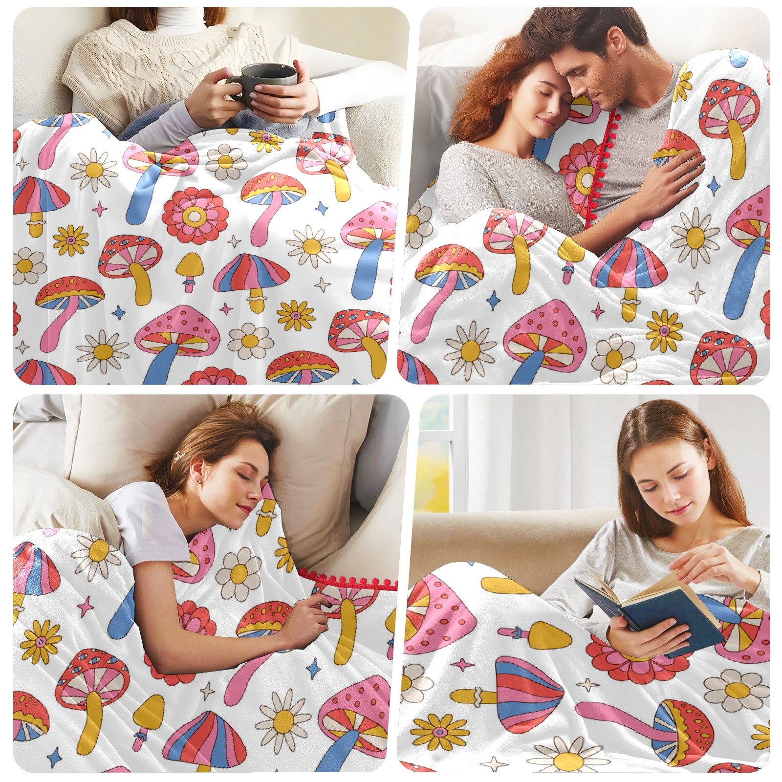 流苏毛毯 Mushrooms Daisy Flowers