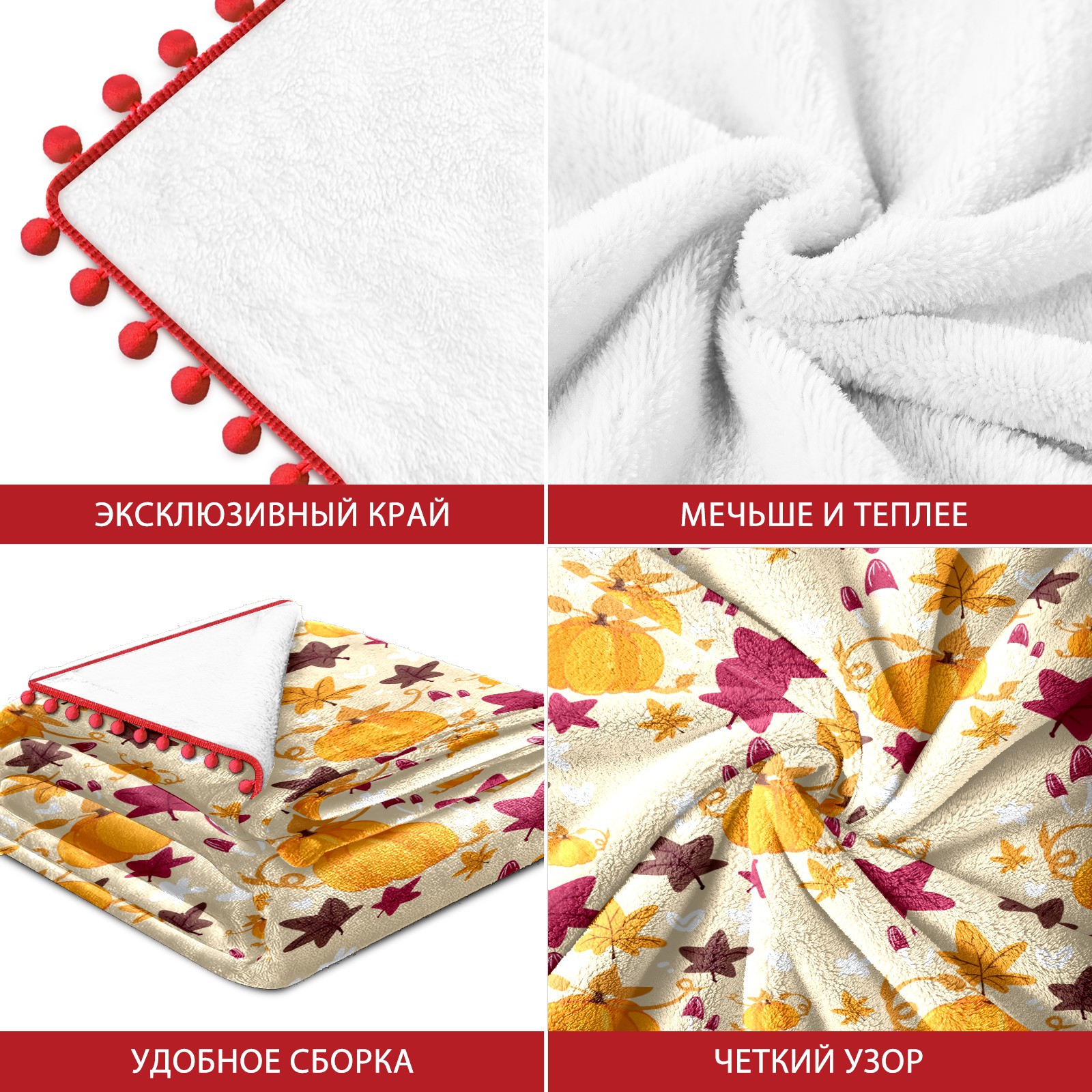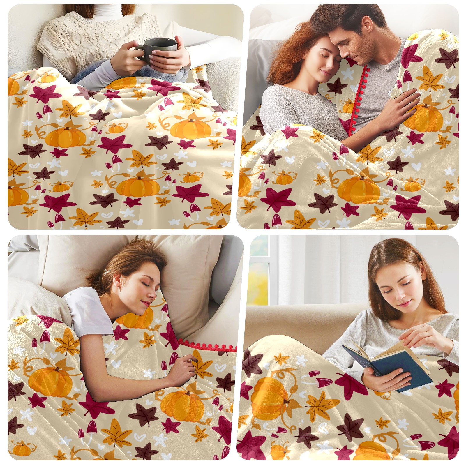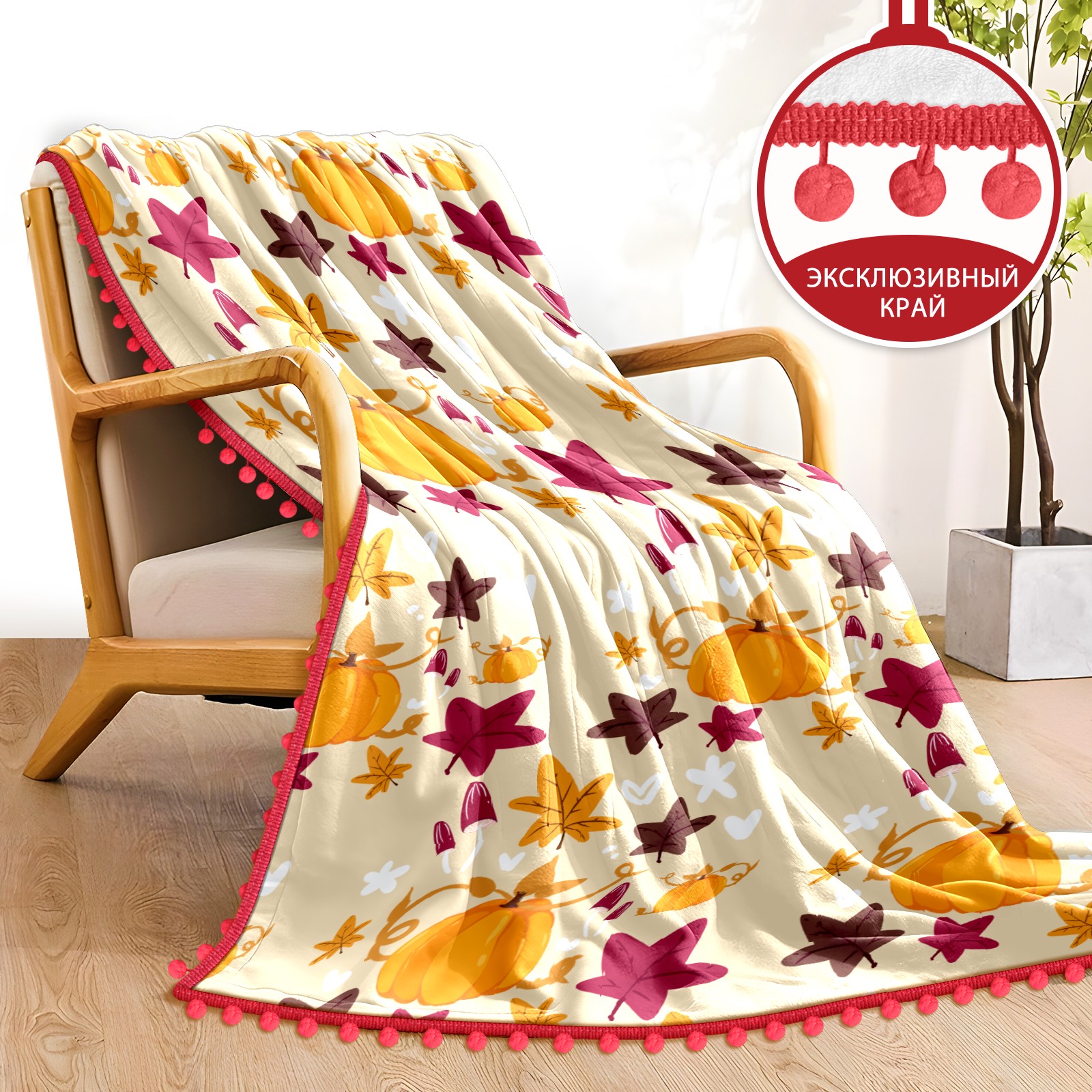 流苏毛毯 Cute Cartoon Pumpkin Mushroom Leaves