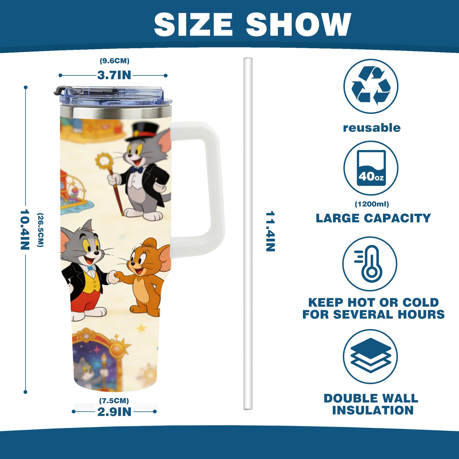 • С большой емкостью 40 унций, он обеспечивает вас гидратацией в течение всего дня, идеально подходит для воды, кофе, сока или других напитков. Эргономичный дизайн идеально вписывается в автомобильные держатели для бутылок, а прочный, герметичный колпачок предотвращает утечки во время передвижения. Путешествие. Антискользящее основание обеспечивает устойчивость, а гладкие поверхности делают уборку легкой — просто мойте вручную или кладите в посудомоечную машину (рекомендуется верхний поддон).
