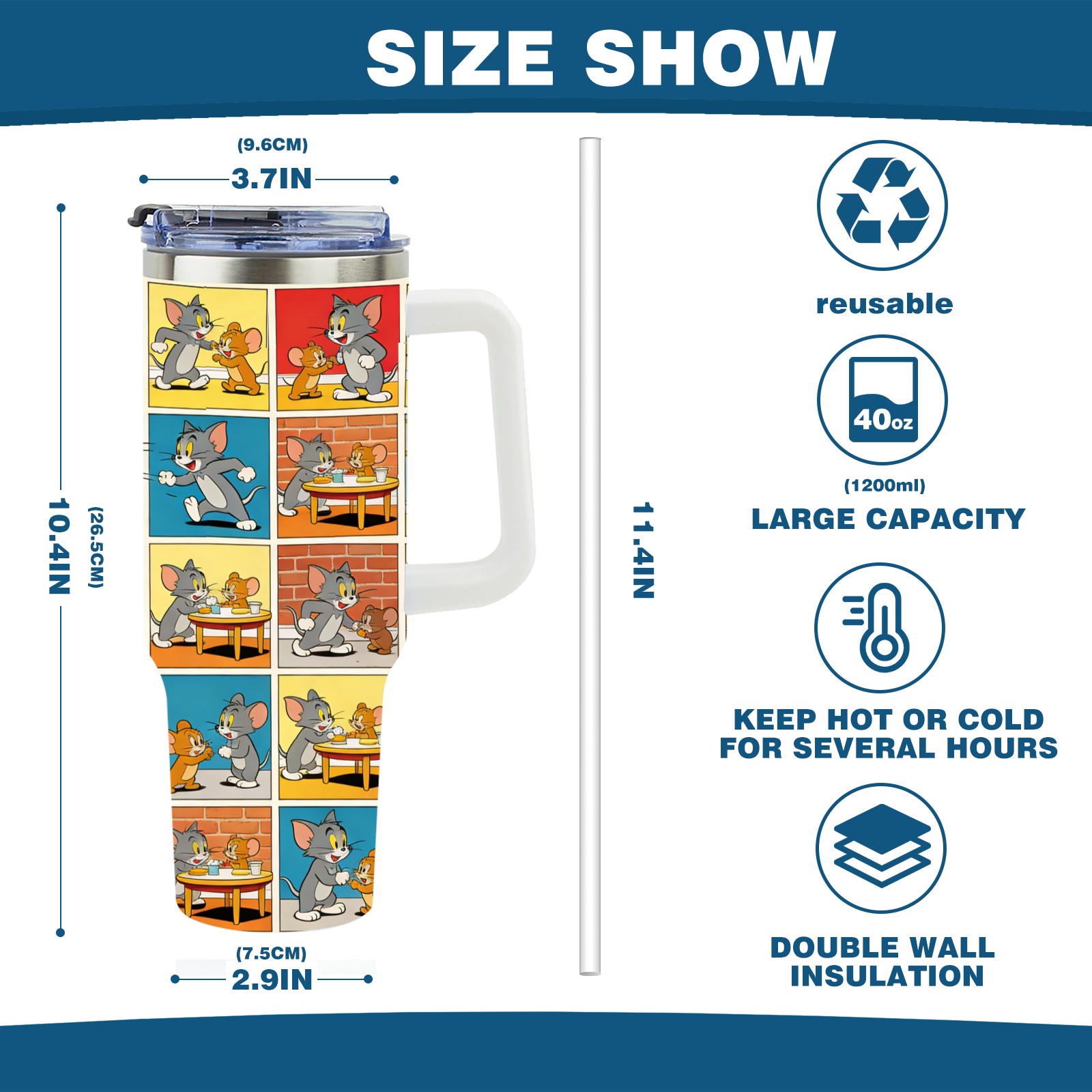 • С большой емкостью 40 унций, он обеспечивает вас гидратацией в течение всего дня, идеально подходит для воды, кофе, сока или других напитков. Эргономичный дизайн идеально вписывается в автомобильные держатели для бутылок, а прочный, герметичный колпачок предотвращает утечки во время передвижения. Путешествие. Антискользящее основание обеспечивает устойчивость, а гладкие поверхности делают уборку легкой — просто мойте вручную или кладите в посудомоечную машину (рекомендуется верхний поддон).