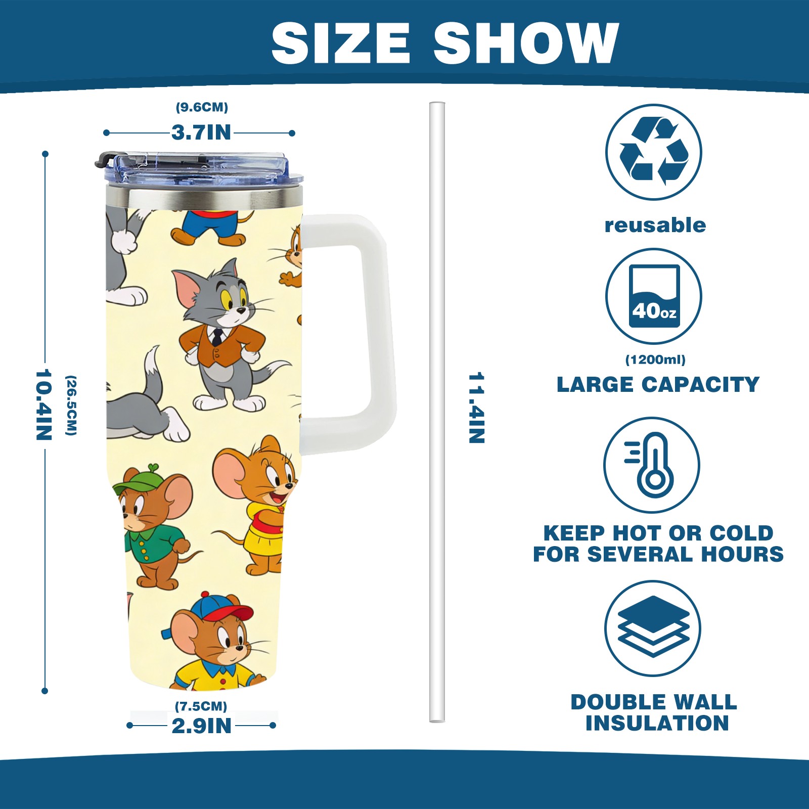 • С большой емкостью 40 унций, он обеспечивает вас гидратацией в течение всего дня, идеально подходит для воды, кофе, сока или других напитков. Эргономичный дизайн идеально вписывается в автомобильные держатели для бутылок, а прочный, герметичный колпачок предотвращает утечки во время передвижения. Путешествие. Антискользящее основание обеспечивает устойчивость, а гладкие поверхности делают уборку легкой — просто мойте вручную или кладите в посудомоечную машину (рекомендуется верхний поддон).