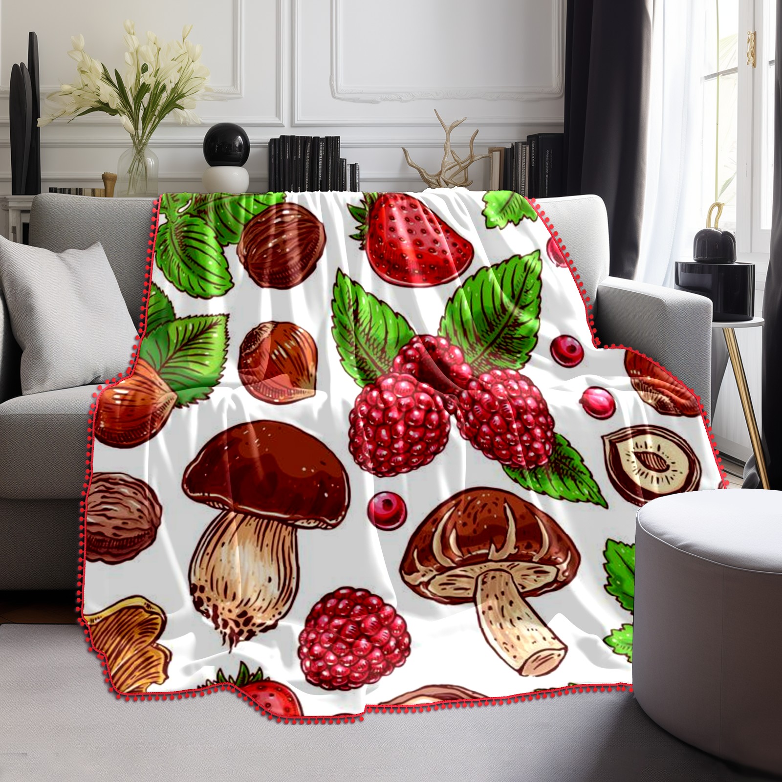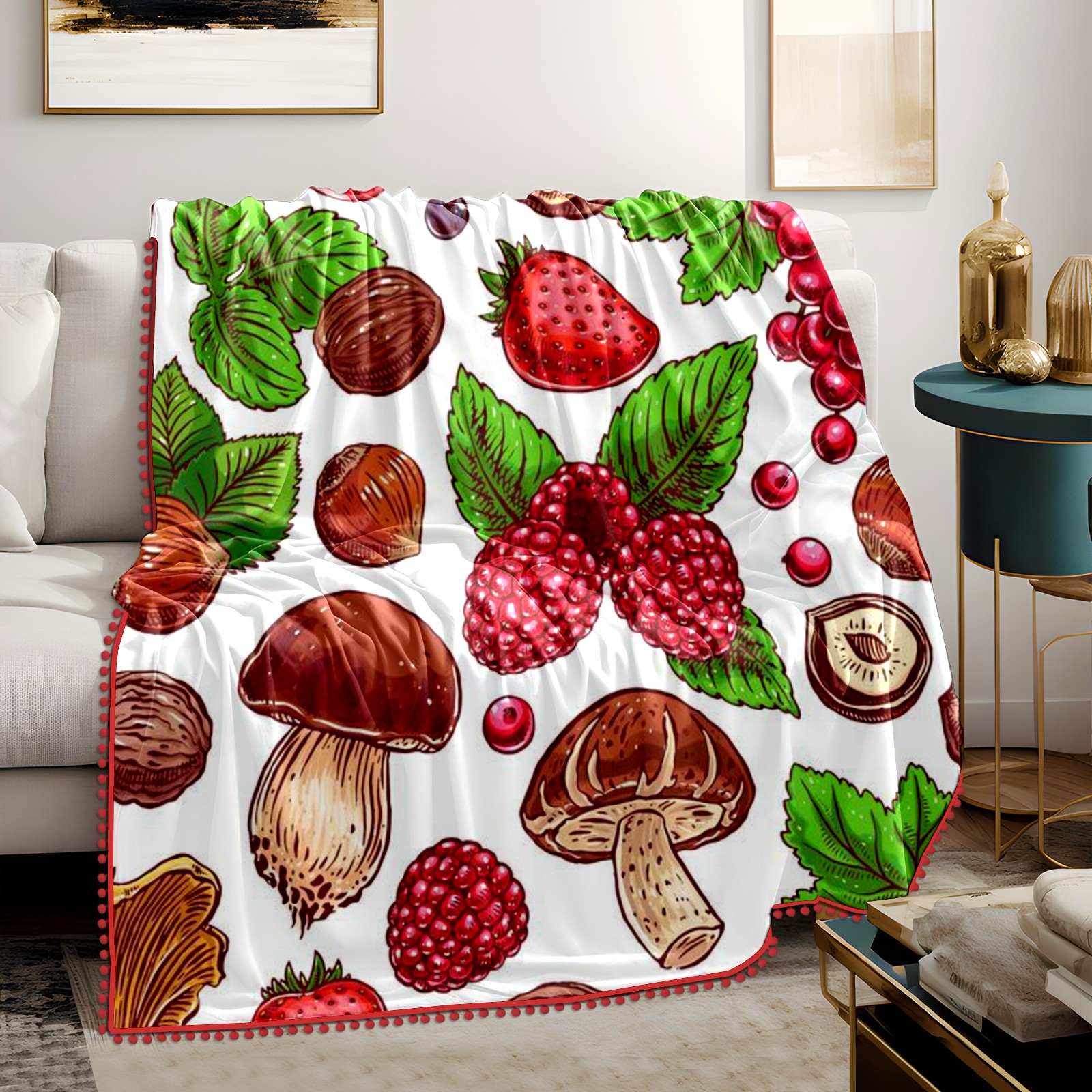 流苏毛毯 Ripe Berries Nuts Mushrooms