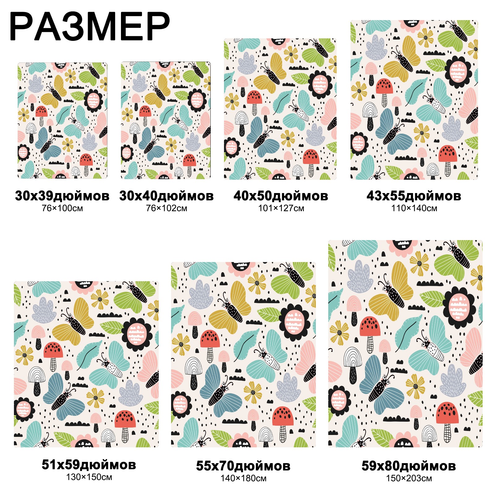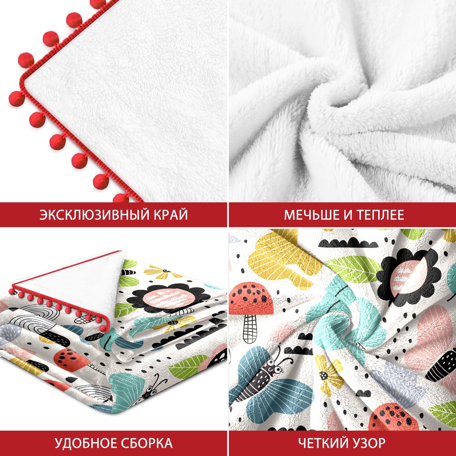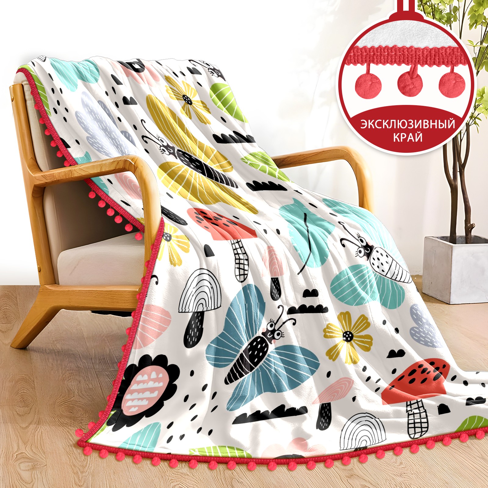 流苏毛毯 Butterfly Flowers Mushroom - Hand Drawn Colorful