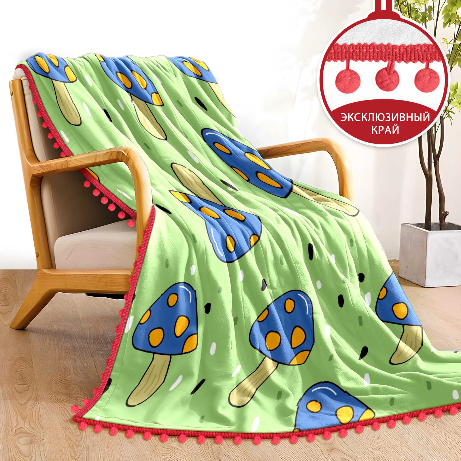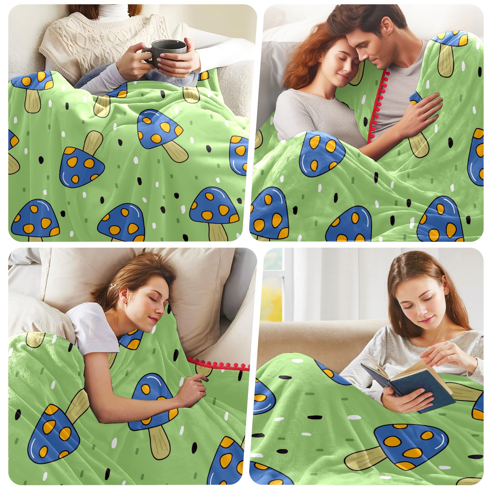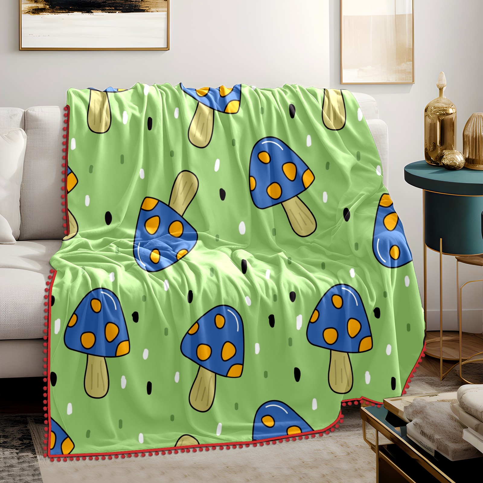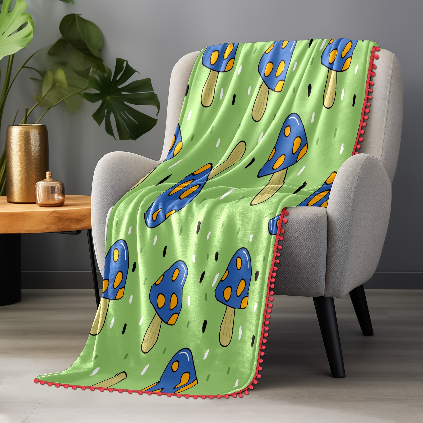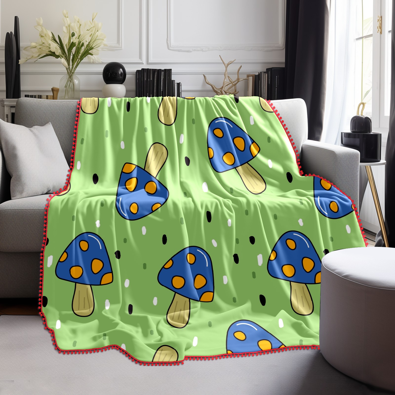 流苏毛毯 Cute Blue Mushroom