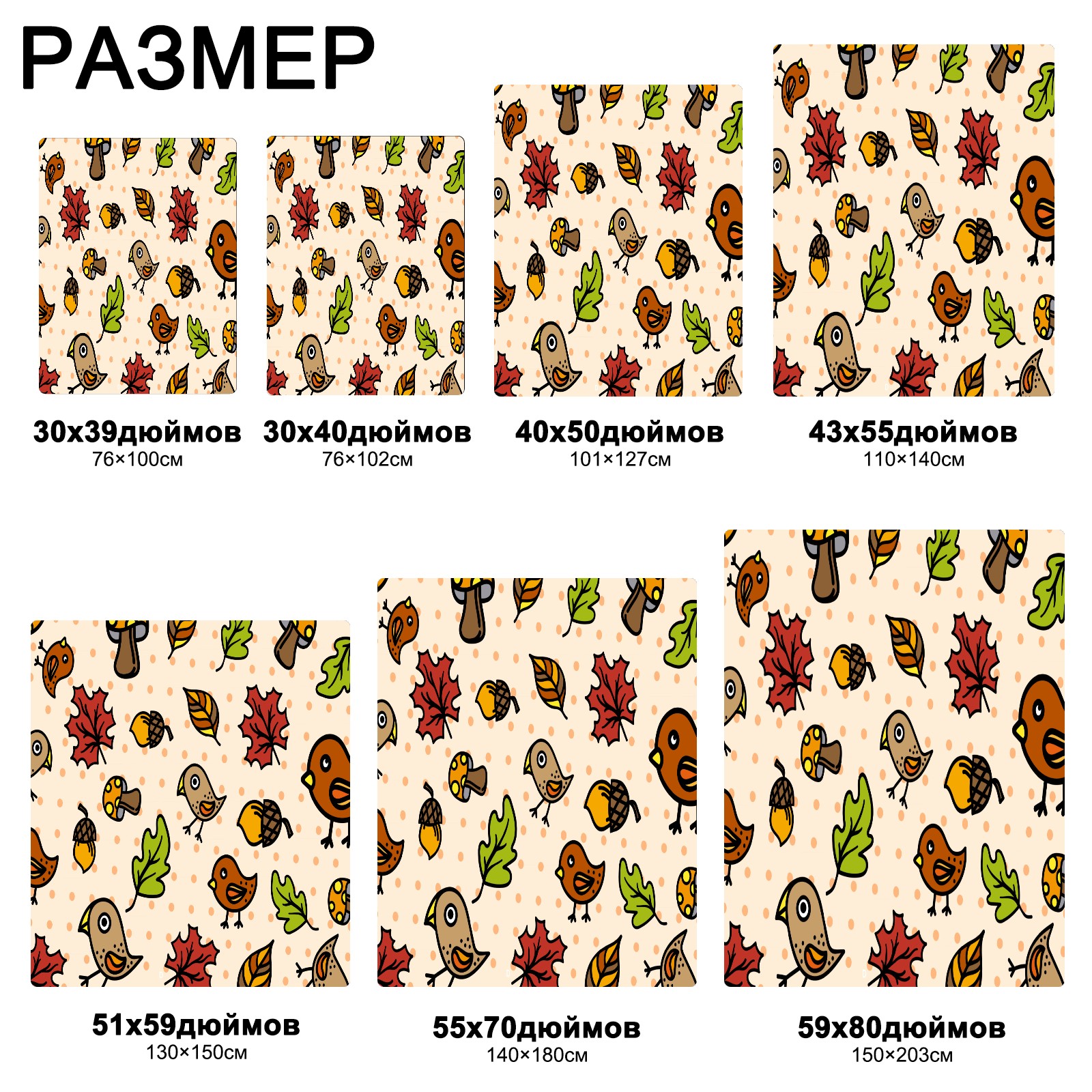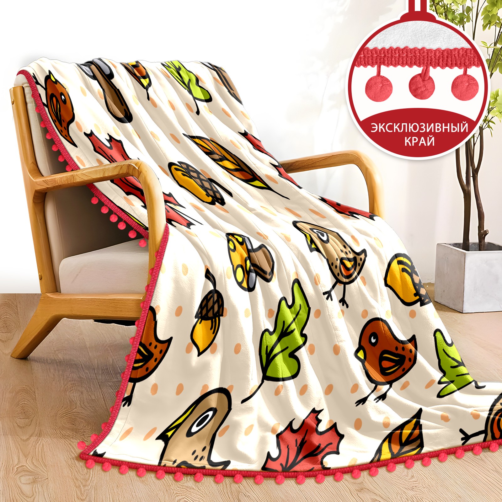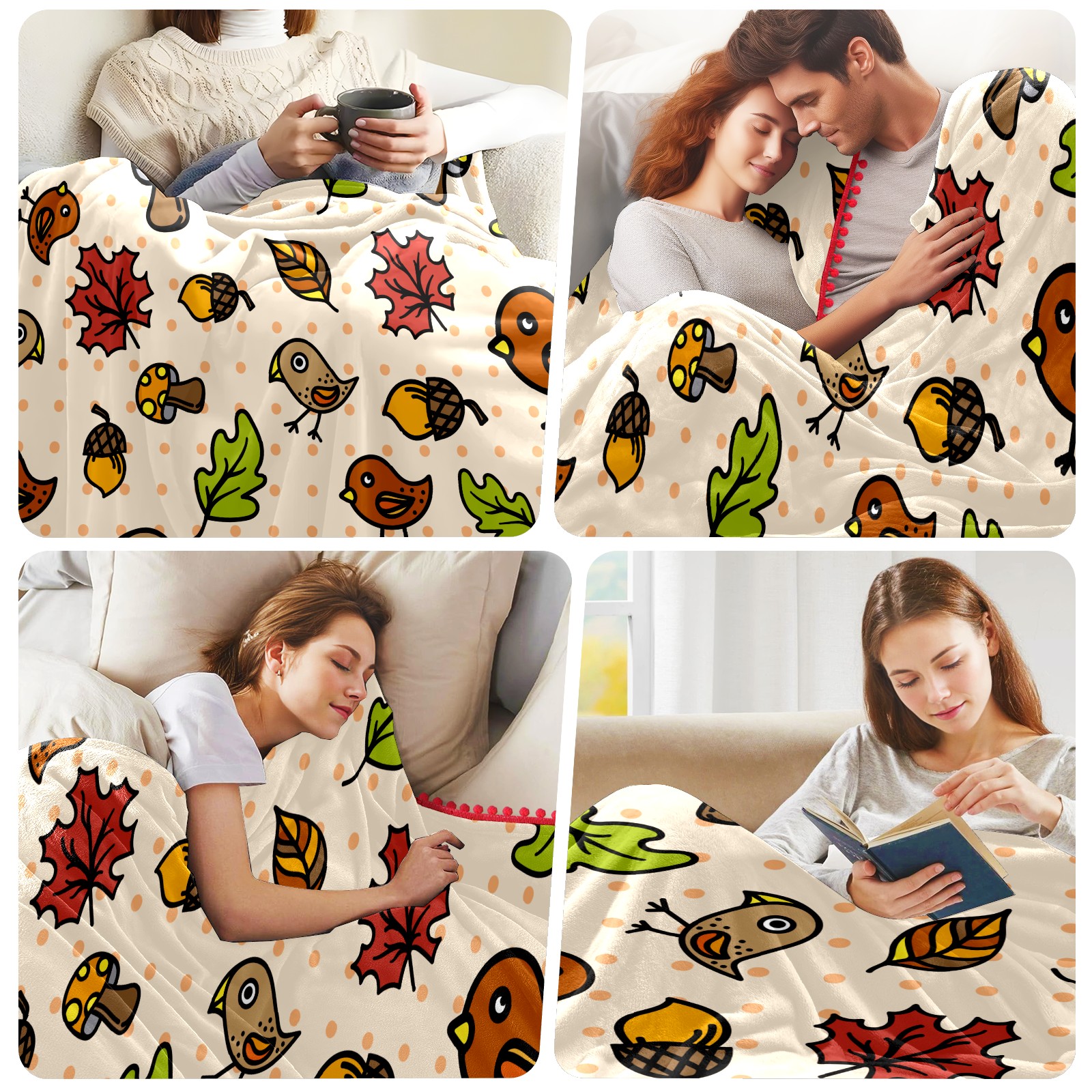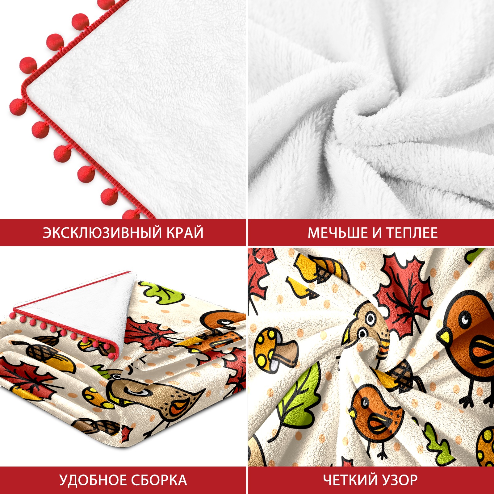 流苏毛毯 Autumnal Cute Birds Mushrooms