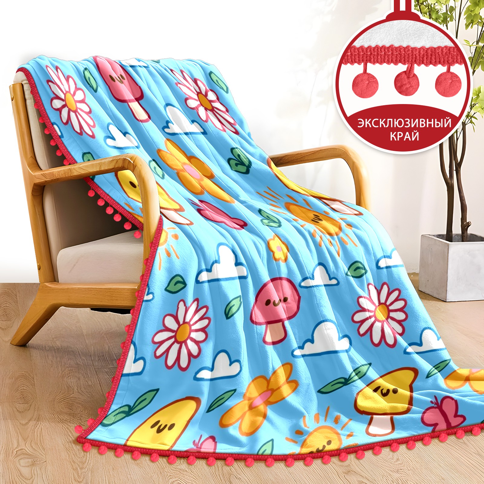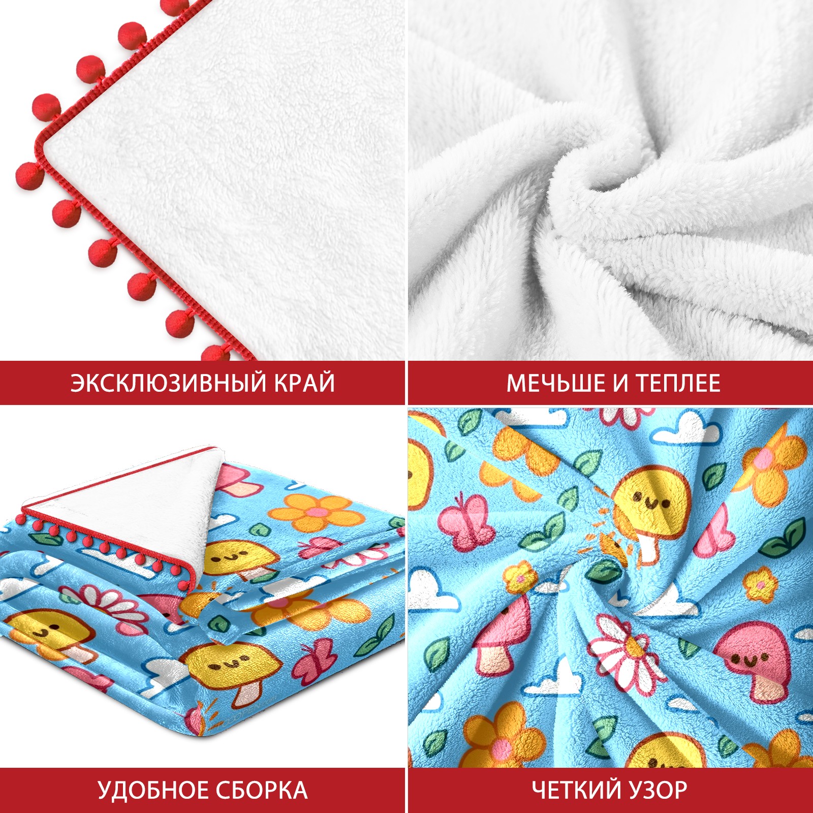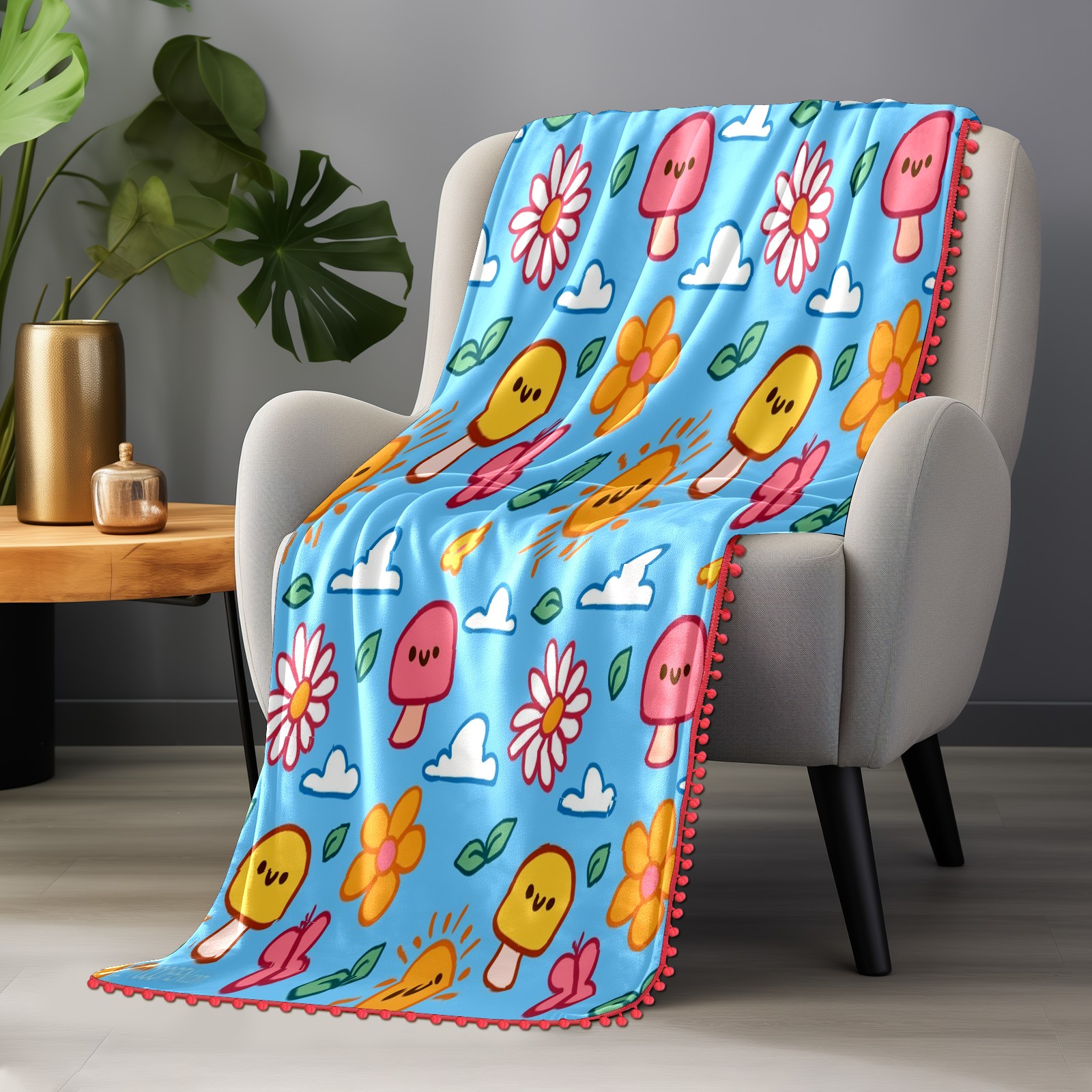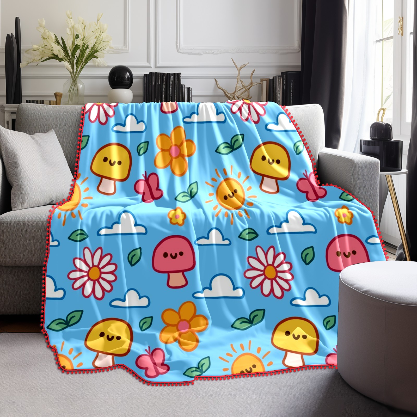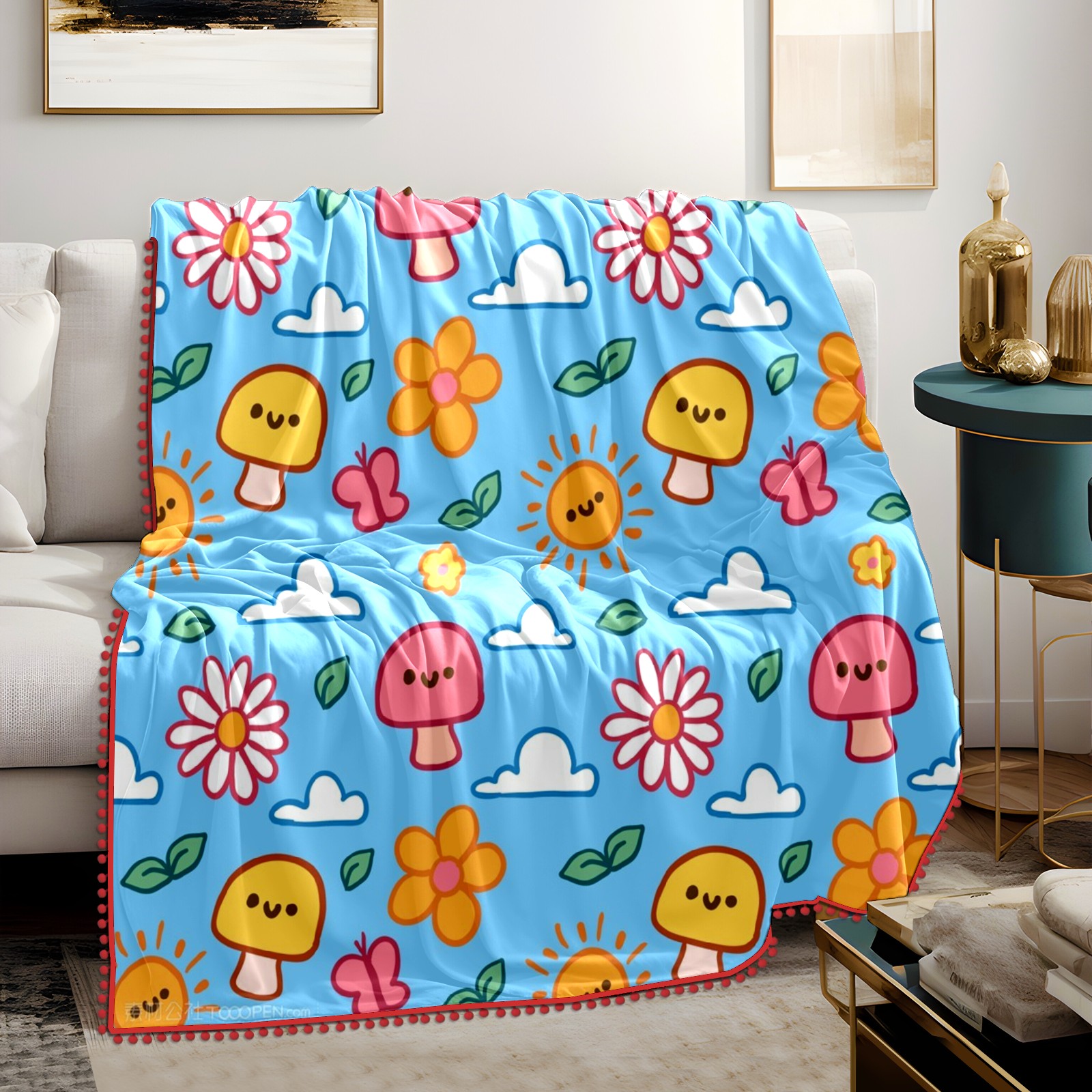 流苏毛毯 Cute Cartoon Mushroom Sun And Flowers