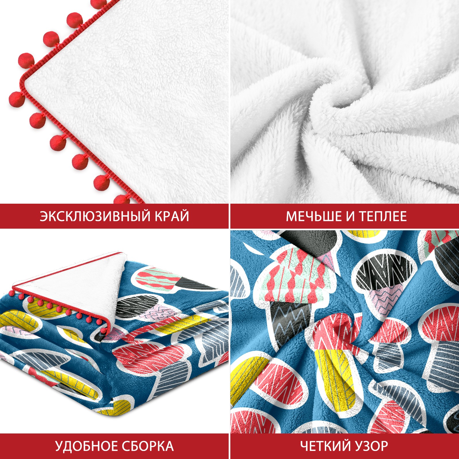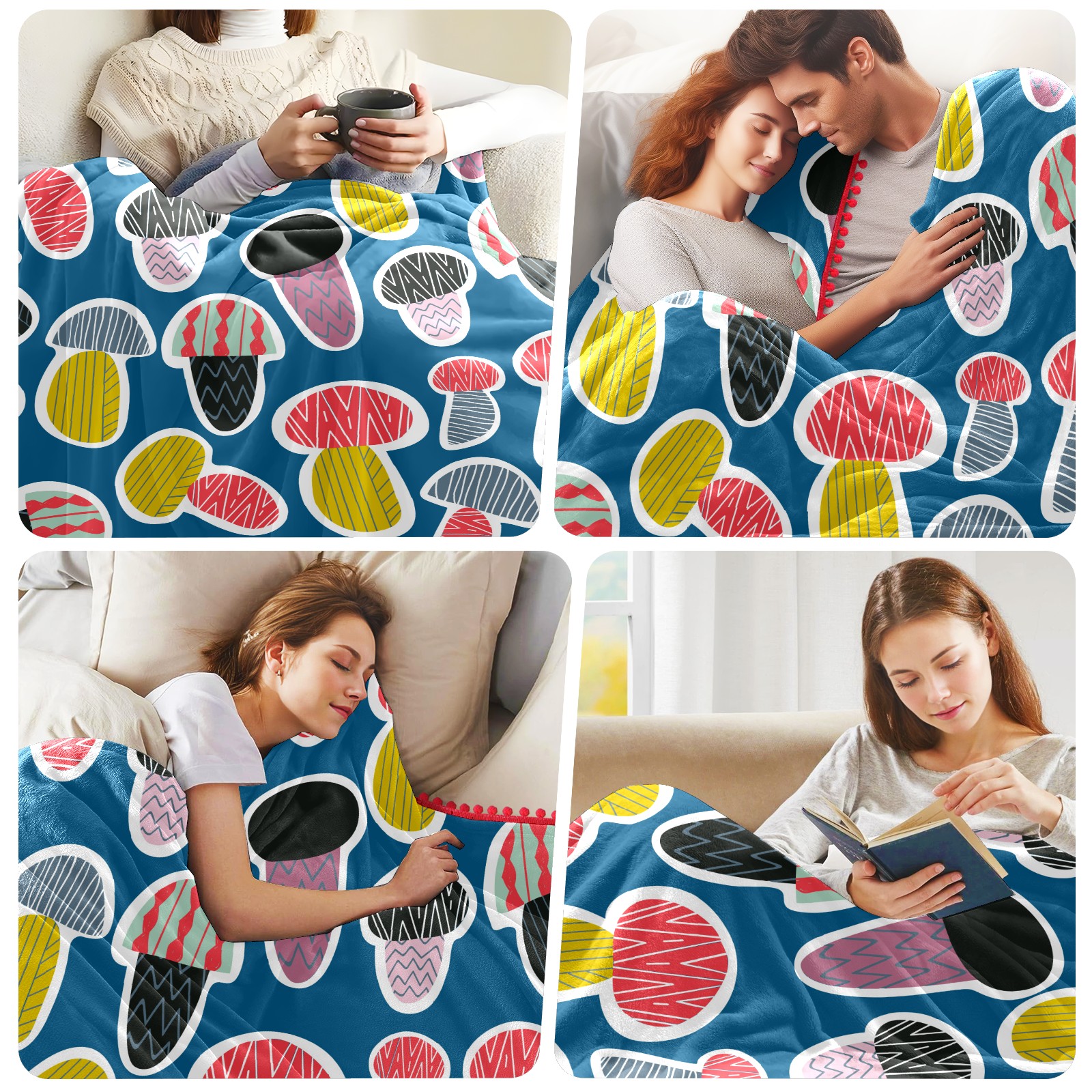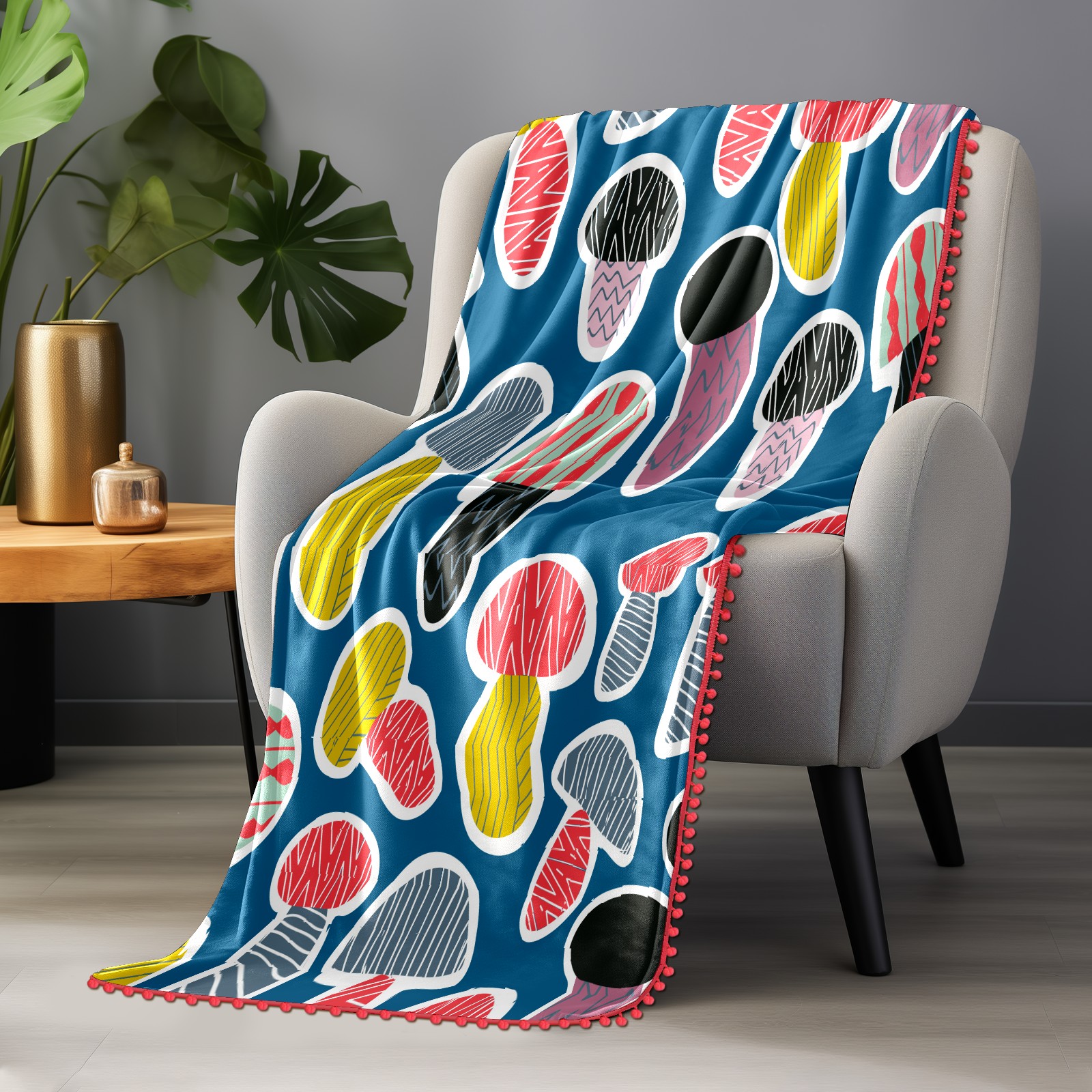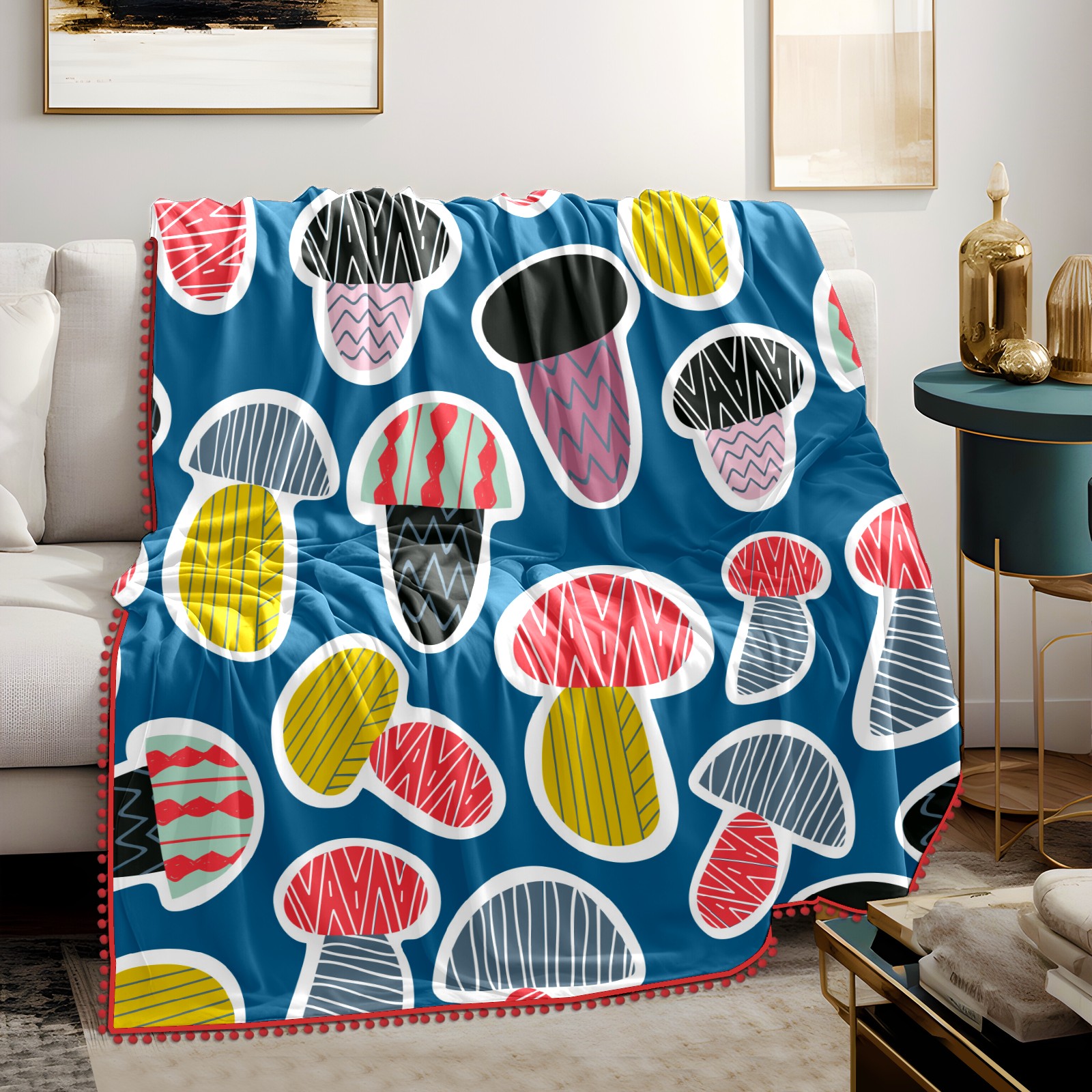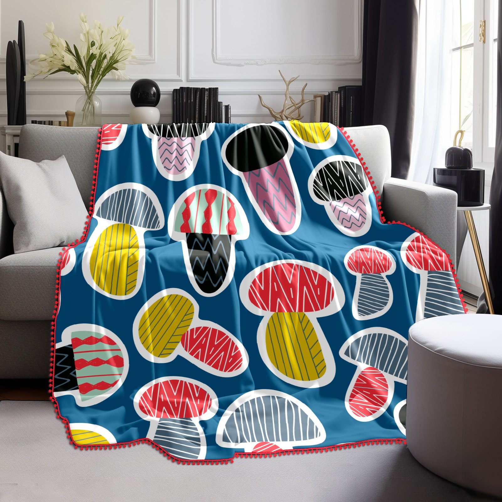 流苏毛毯 Colorful Mushroom Cute