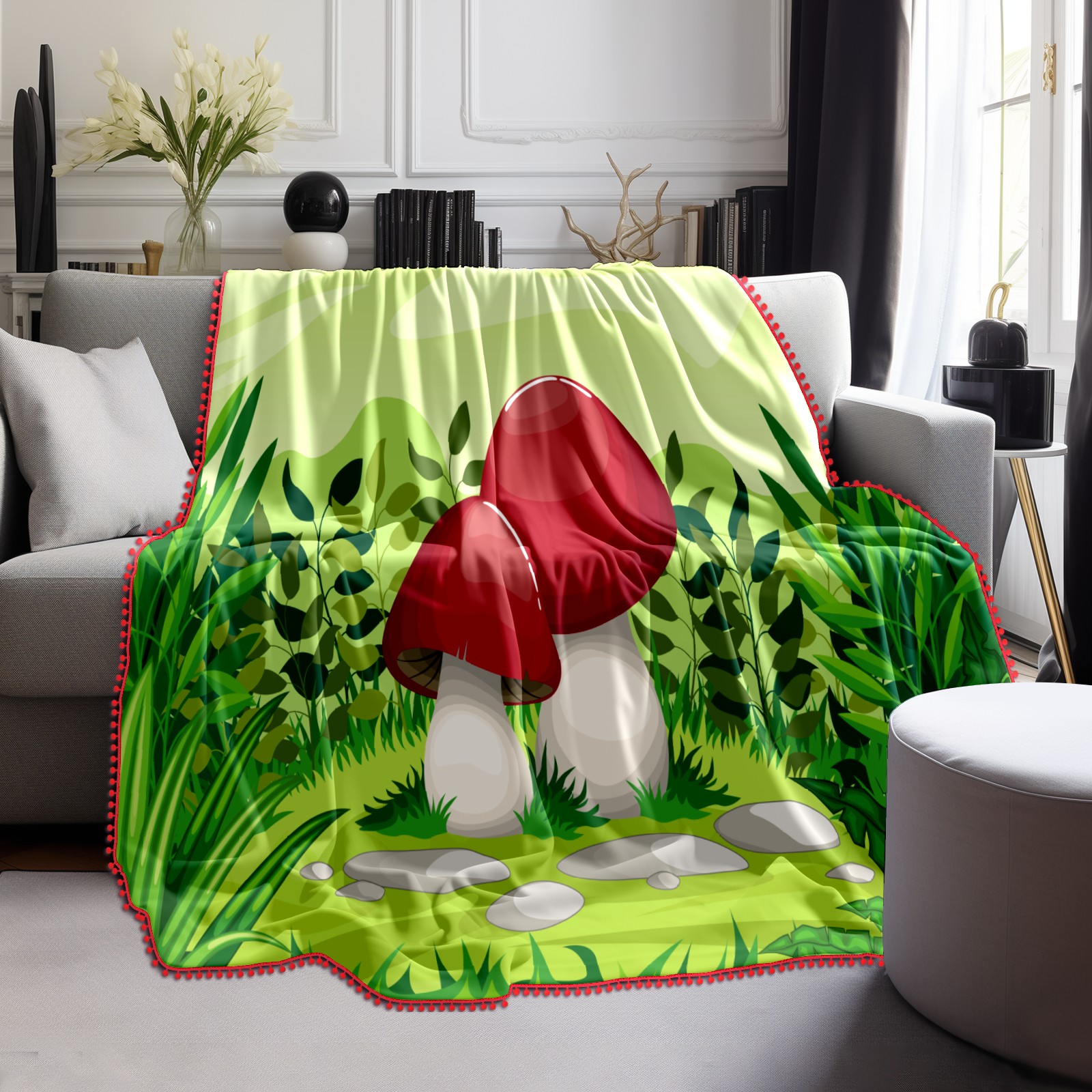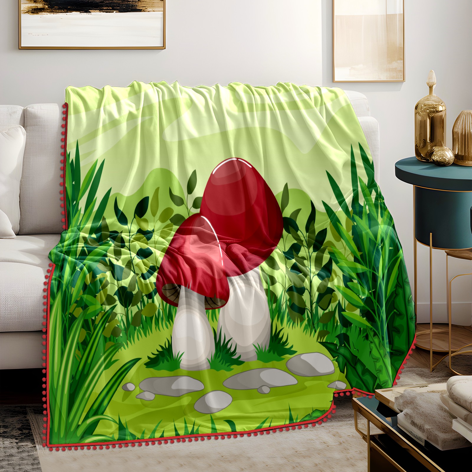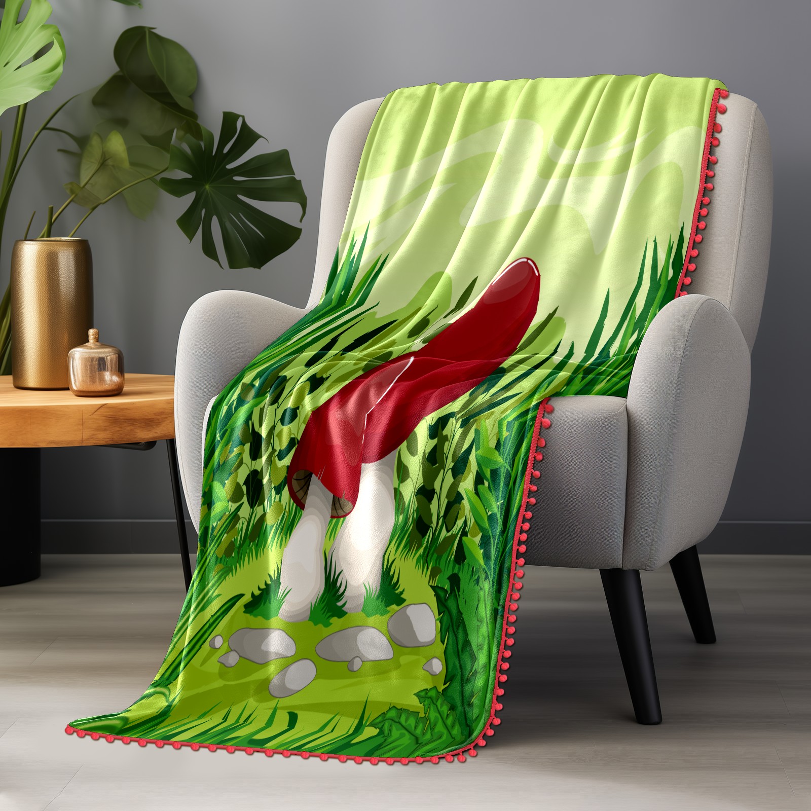 流苏毛毯 Forest Cartoon Mushroom Grass