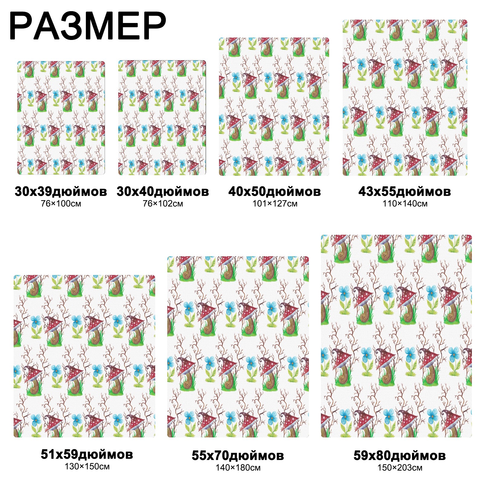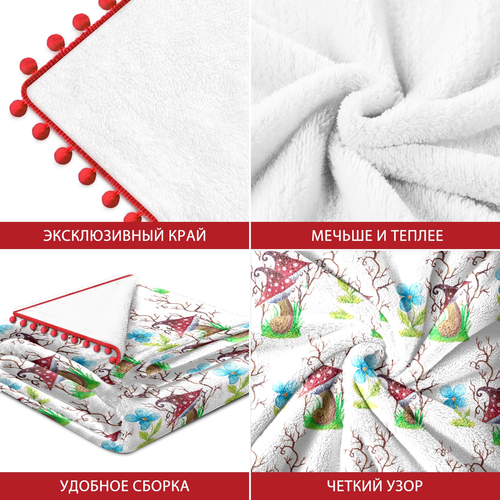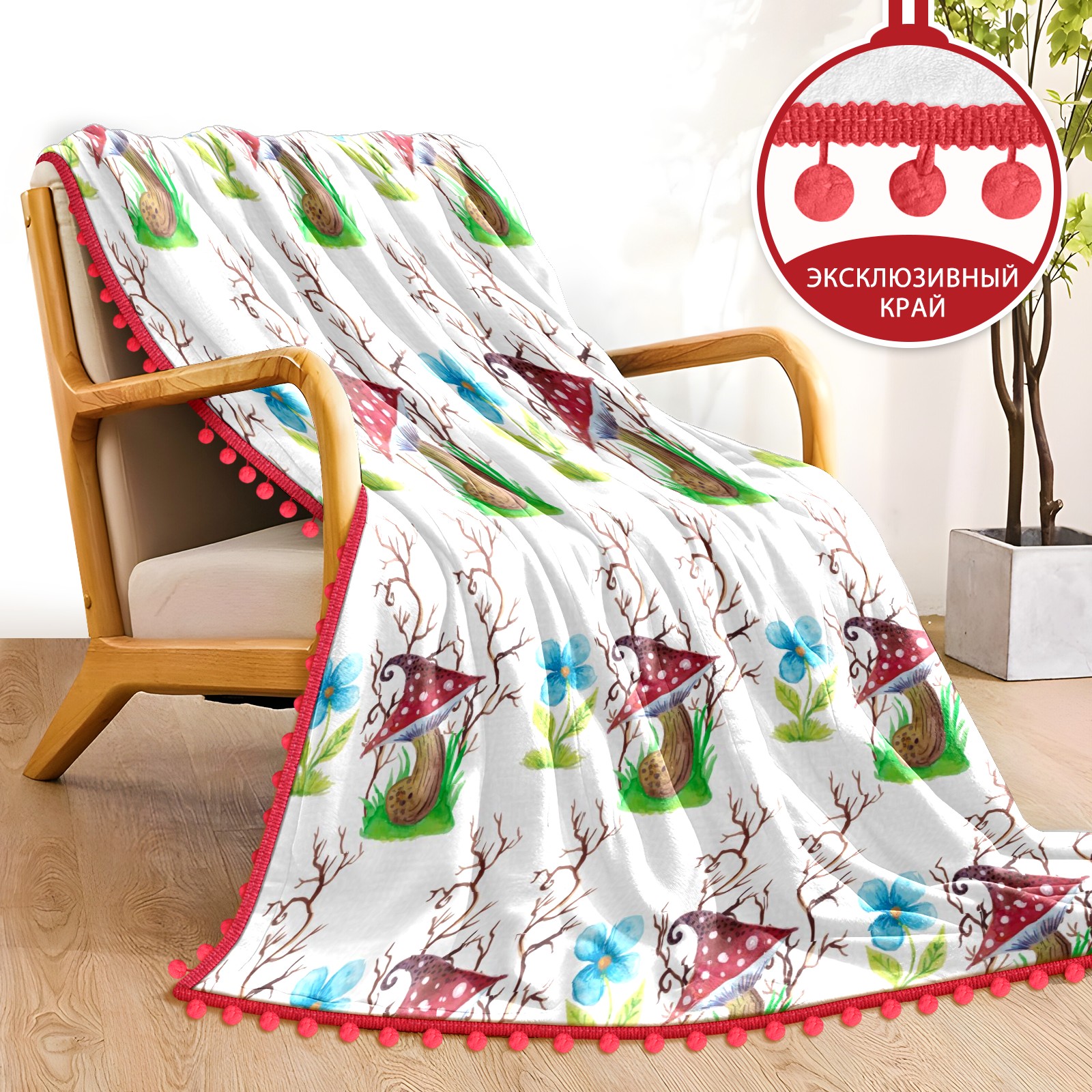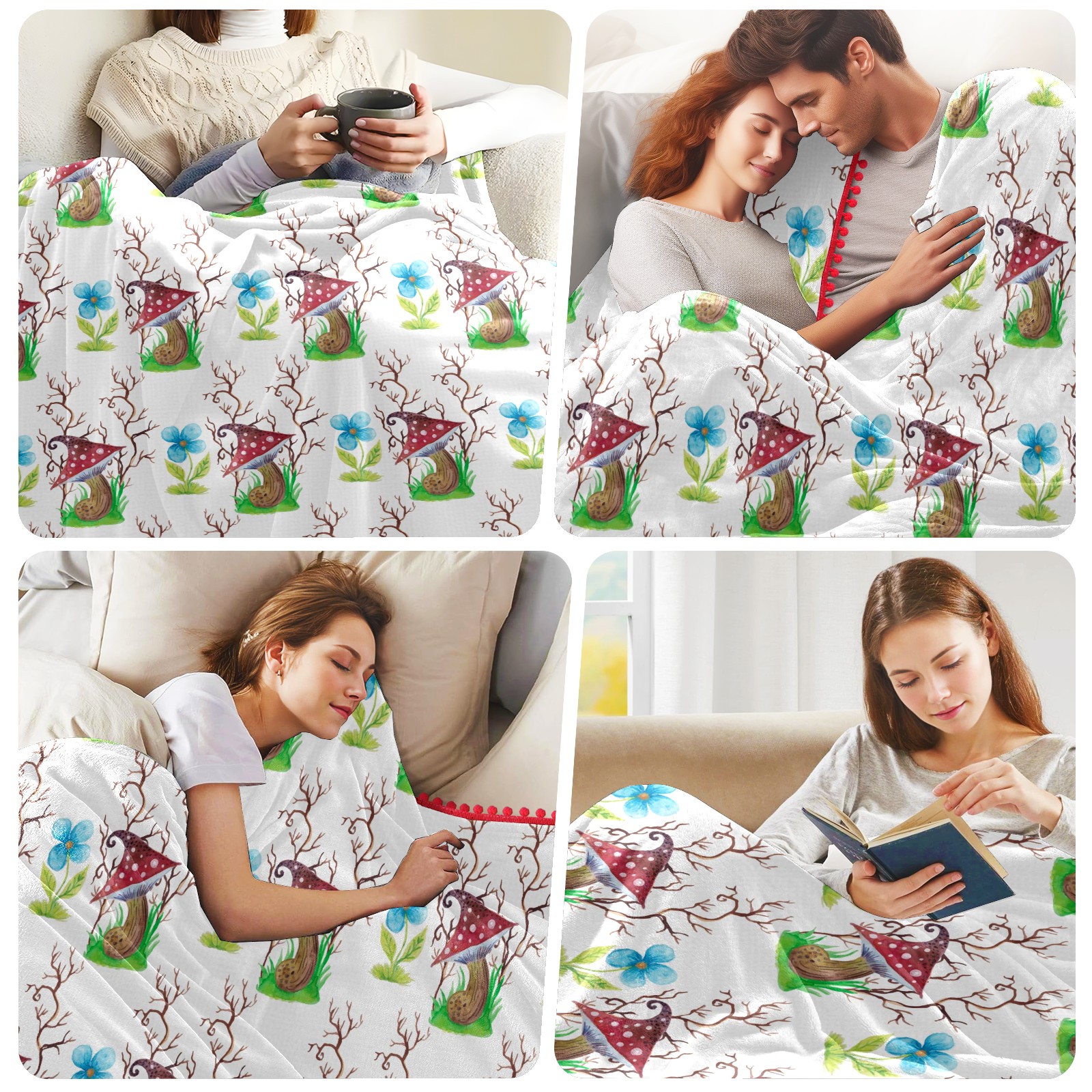 流苏毛毯 Mushrooms Watercolor Flowers