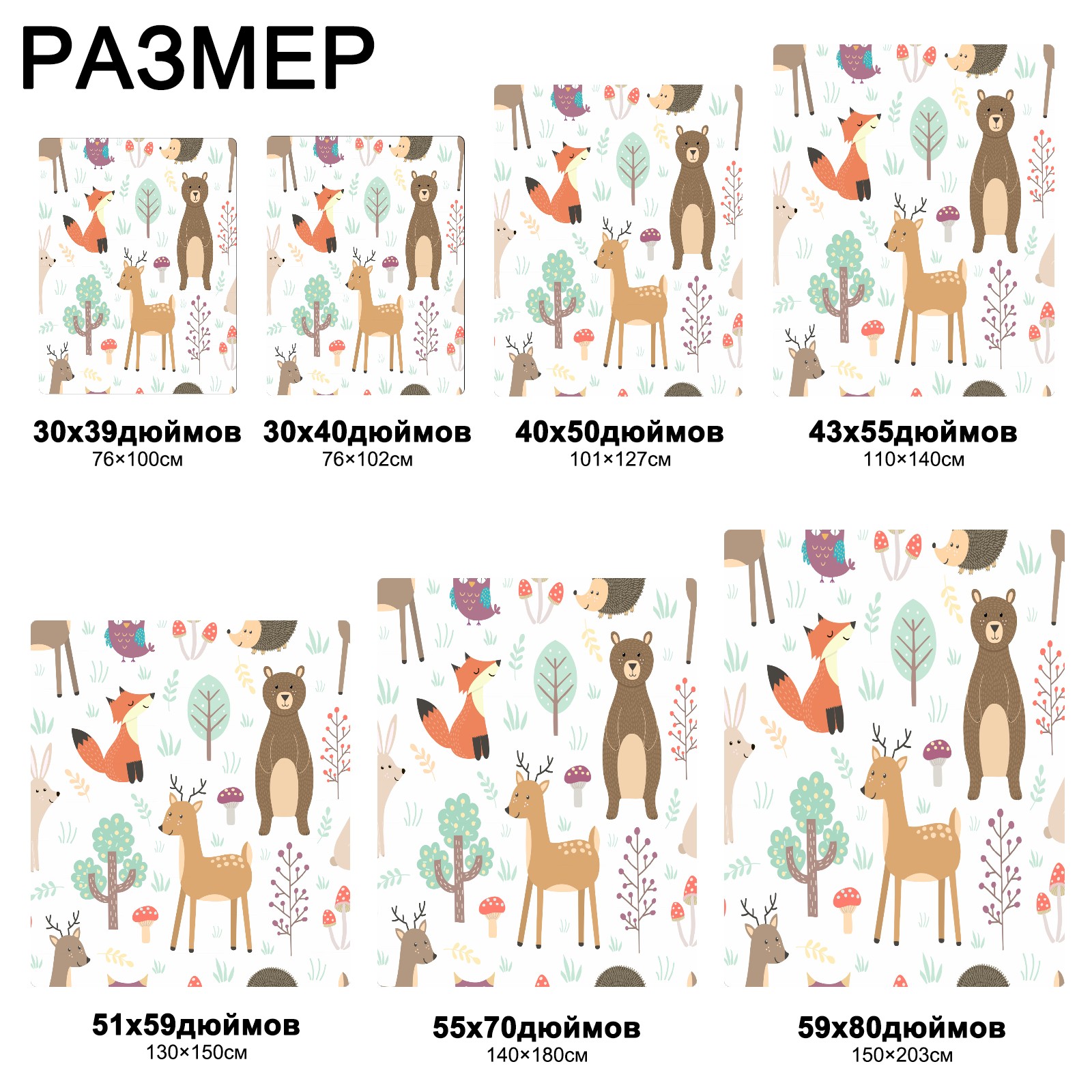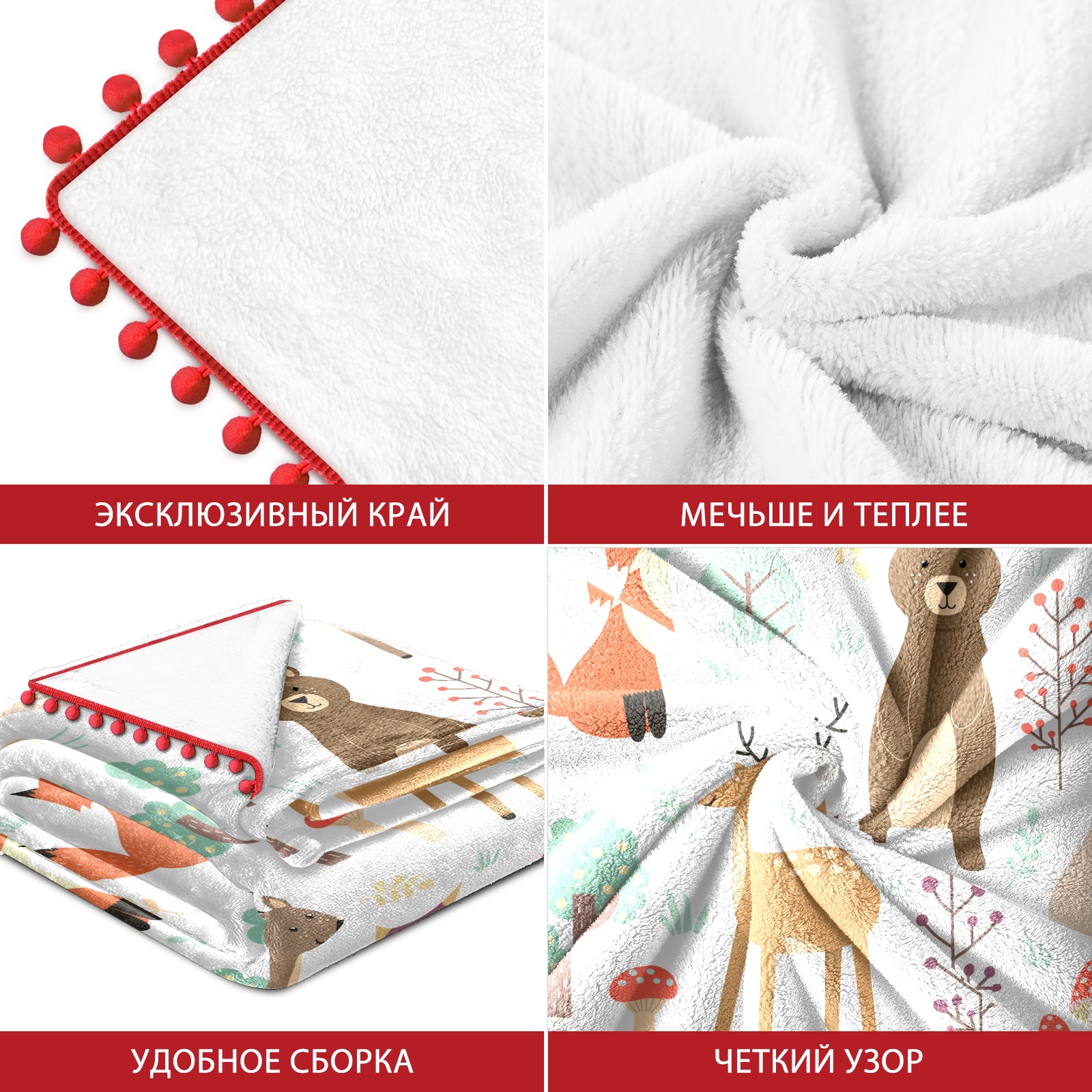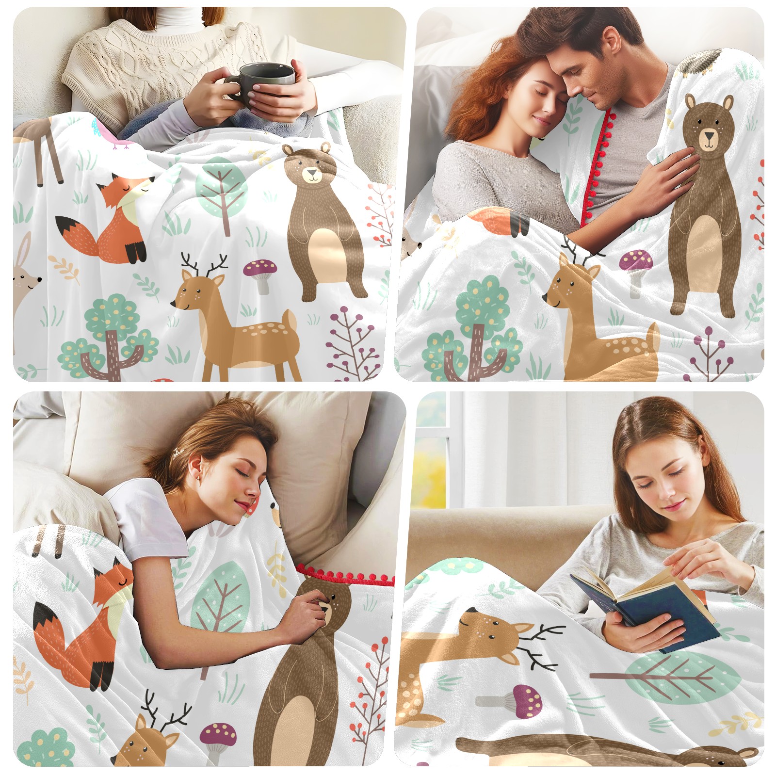流苏毛毯 Forest Animal Fox Deer Rabbit Hedgehog Owl Mushroom