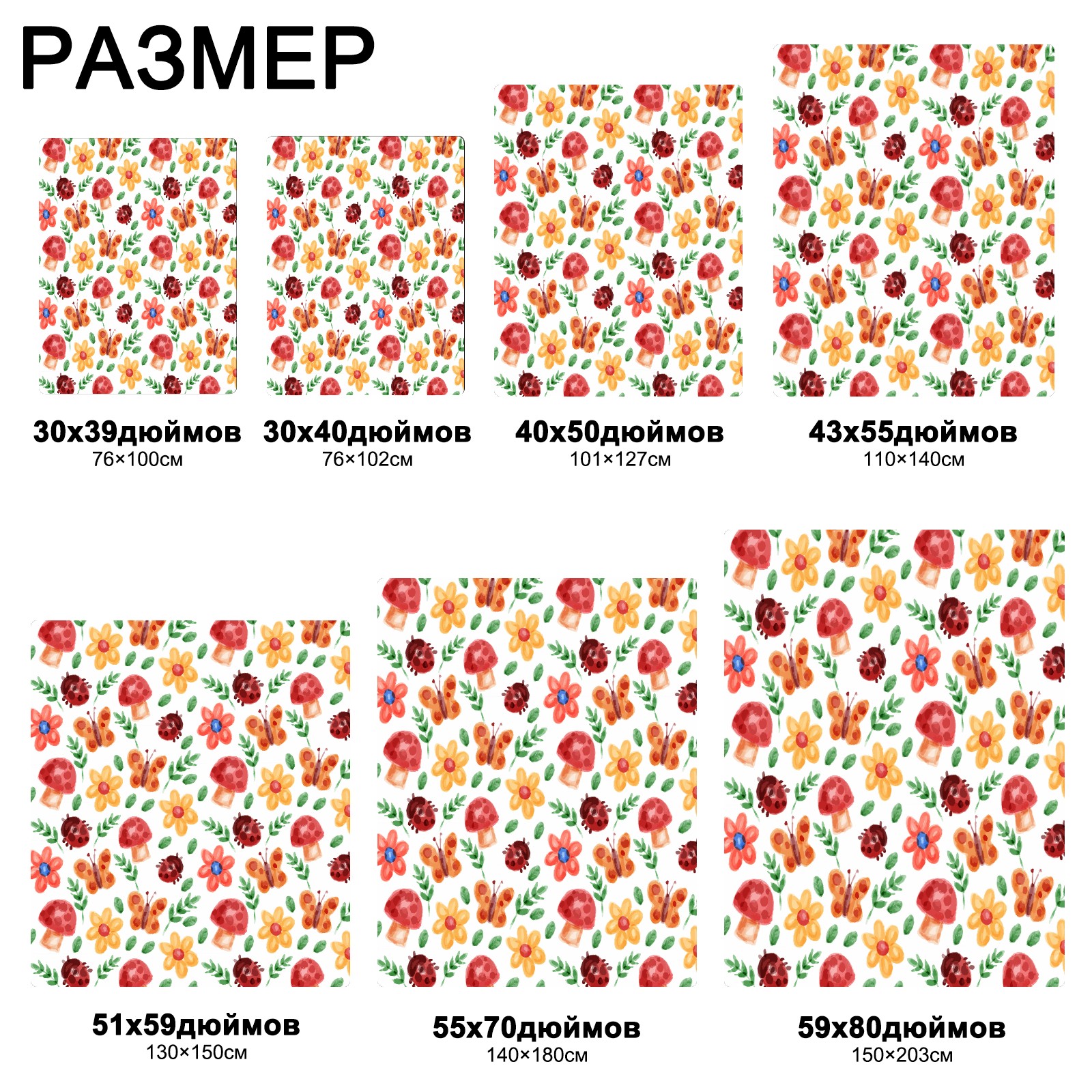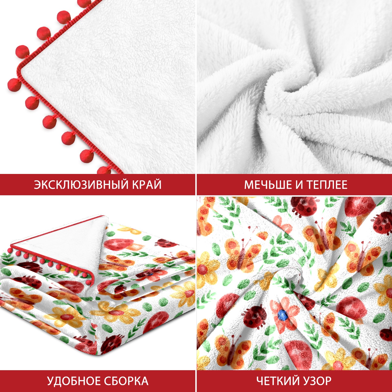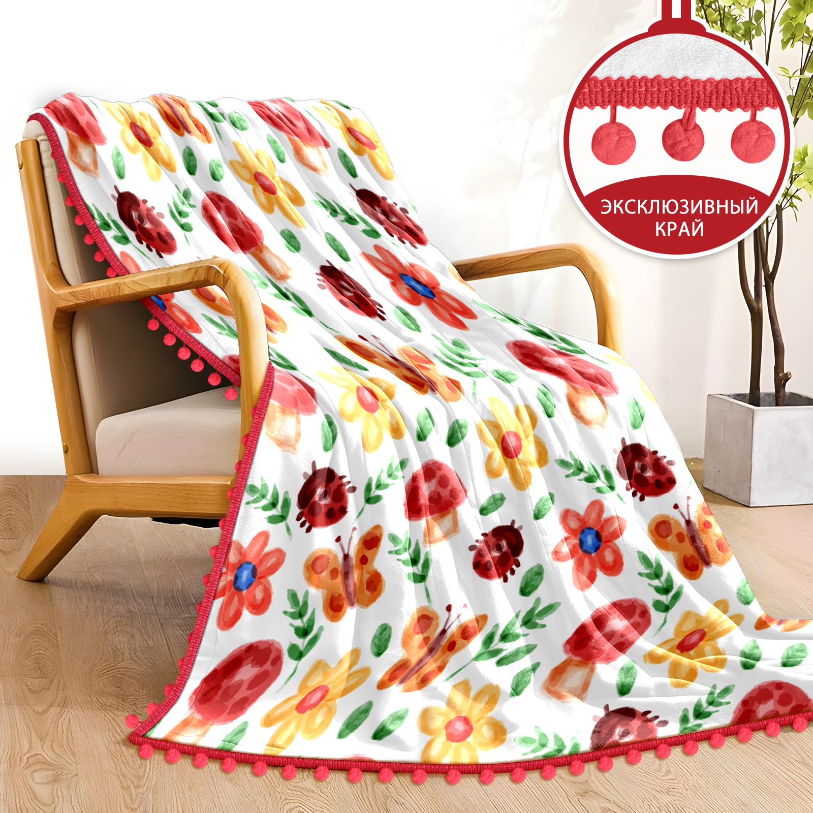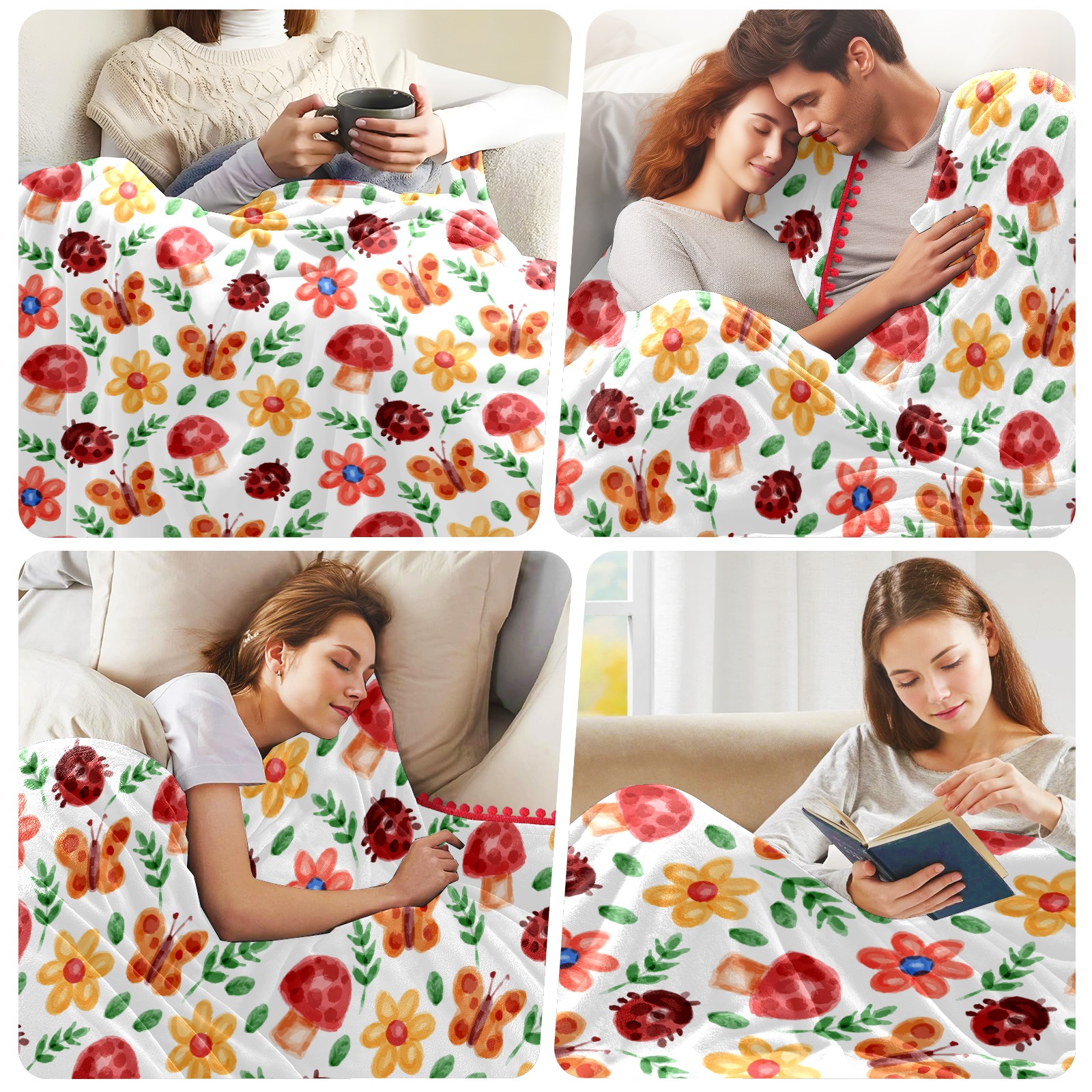 流苏毛毯 Watercolor Ladybird Mushroom Butterfly Floral