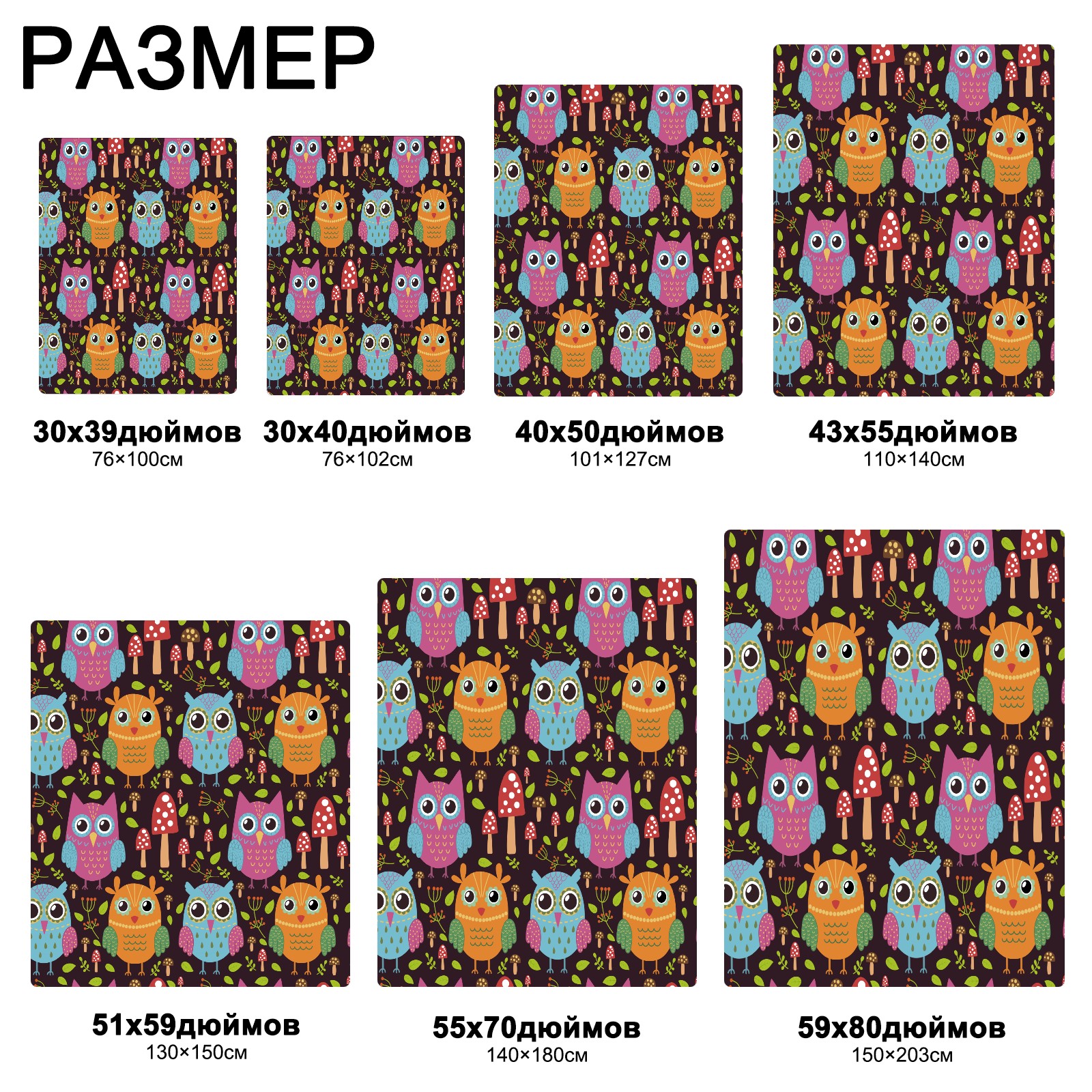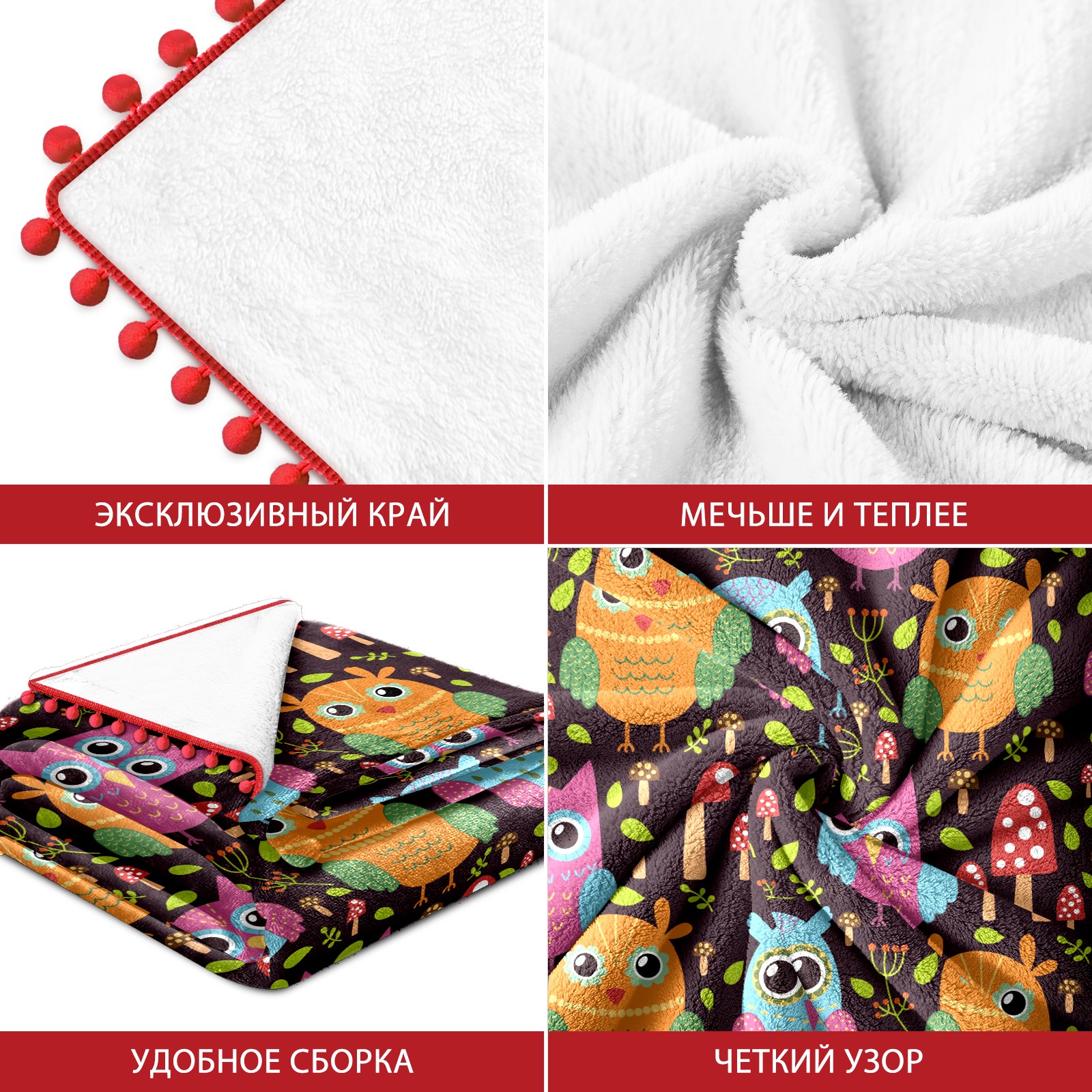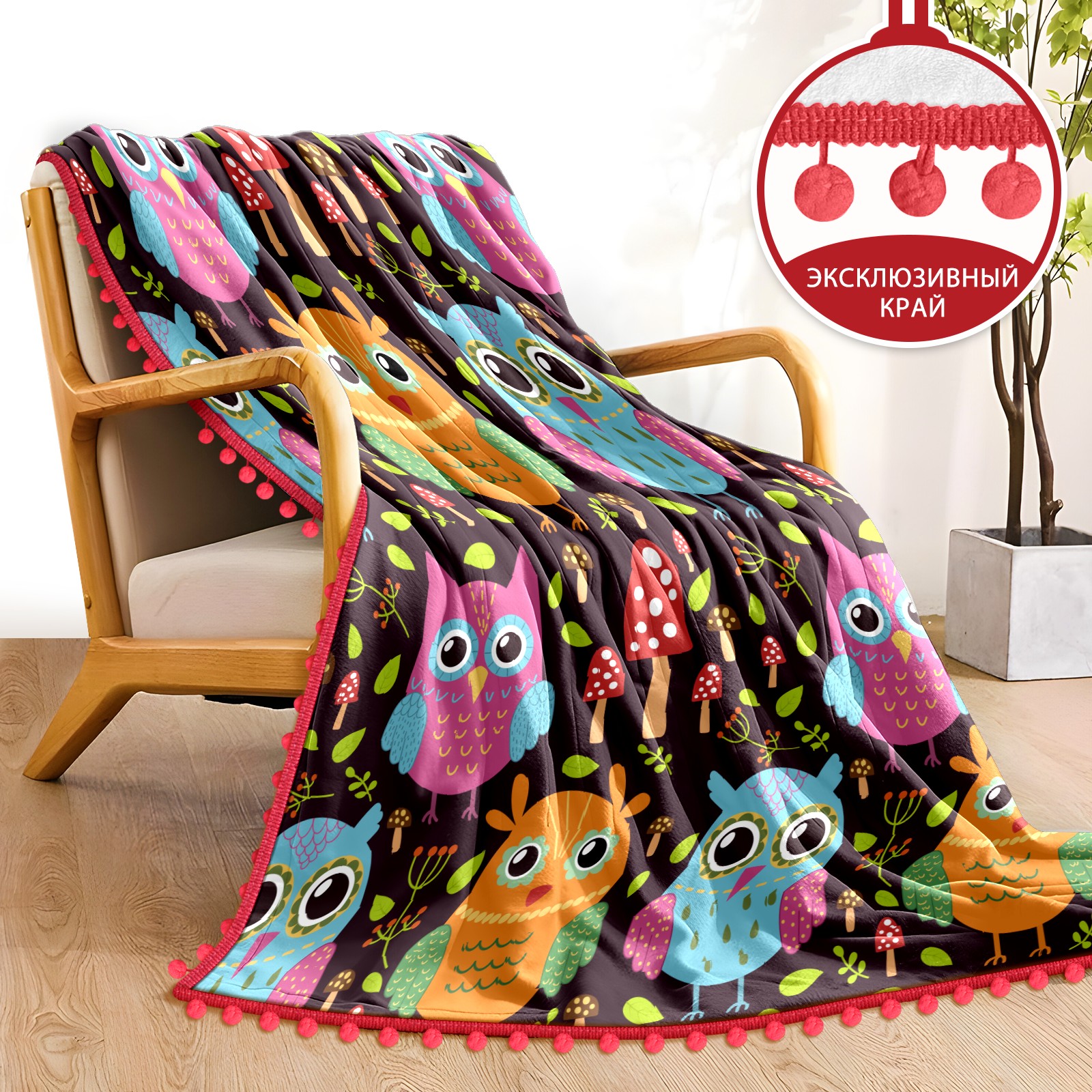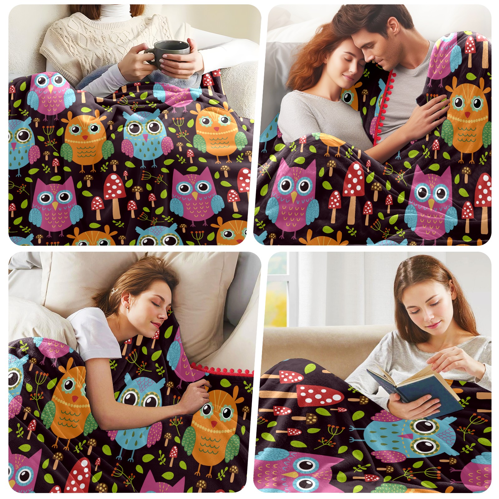 流苏毛毯 Colorful Owl Mushroom Pattern