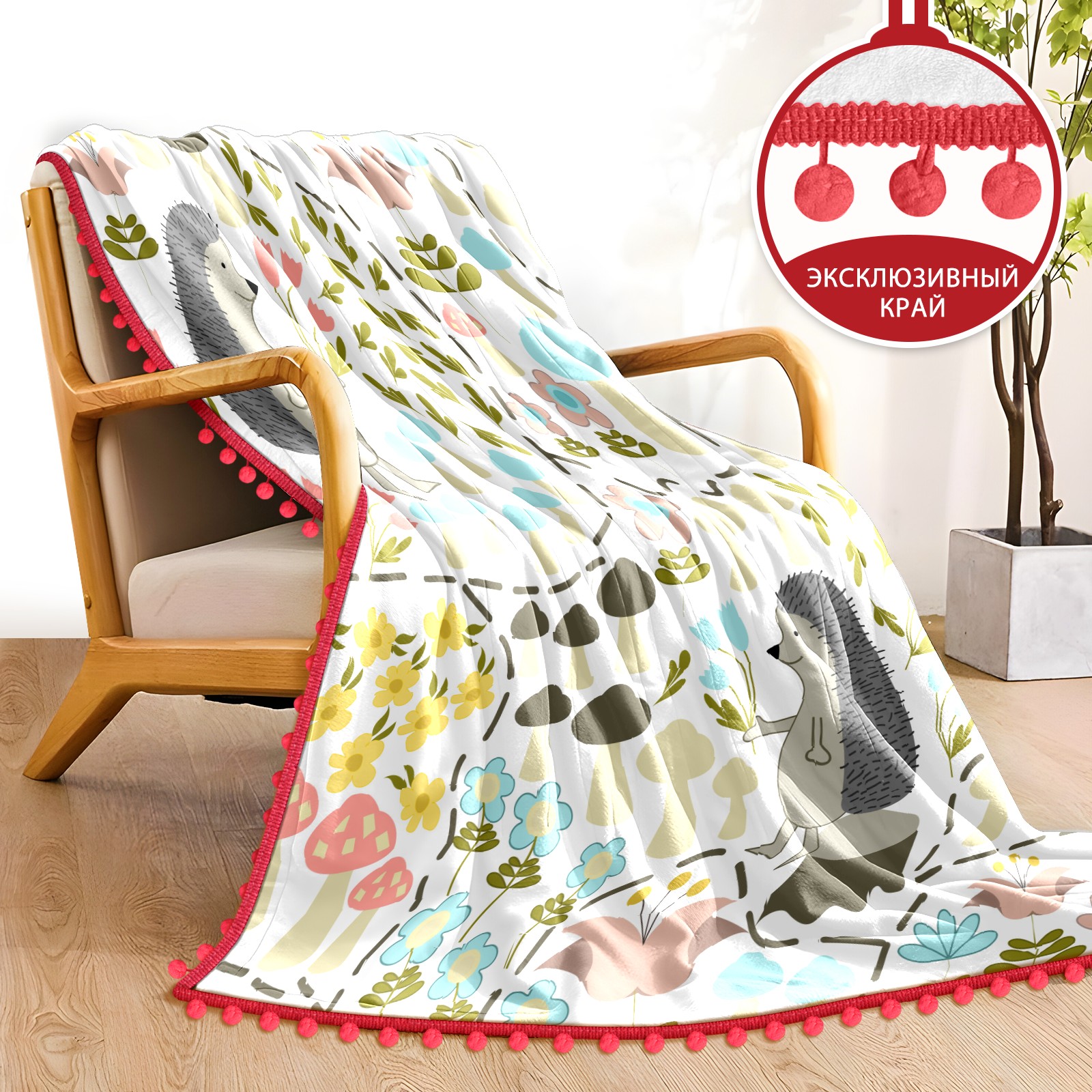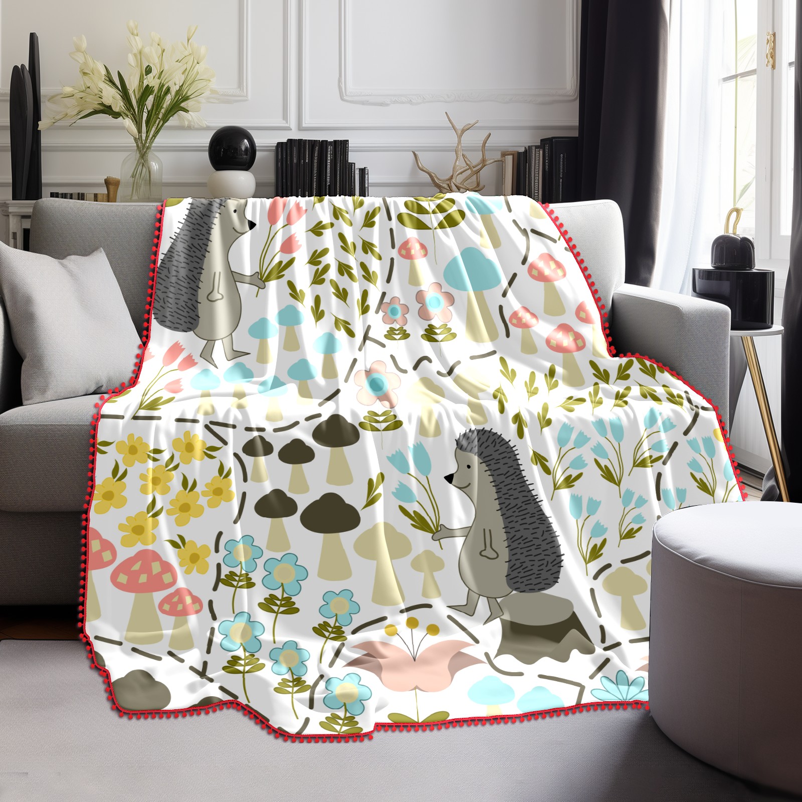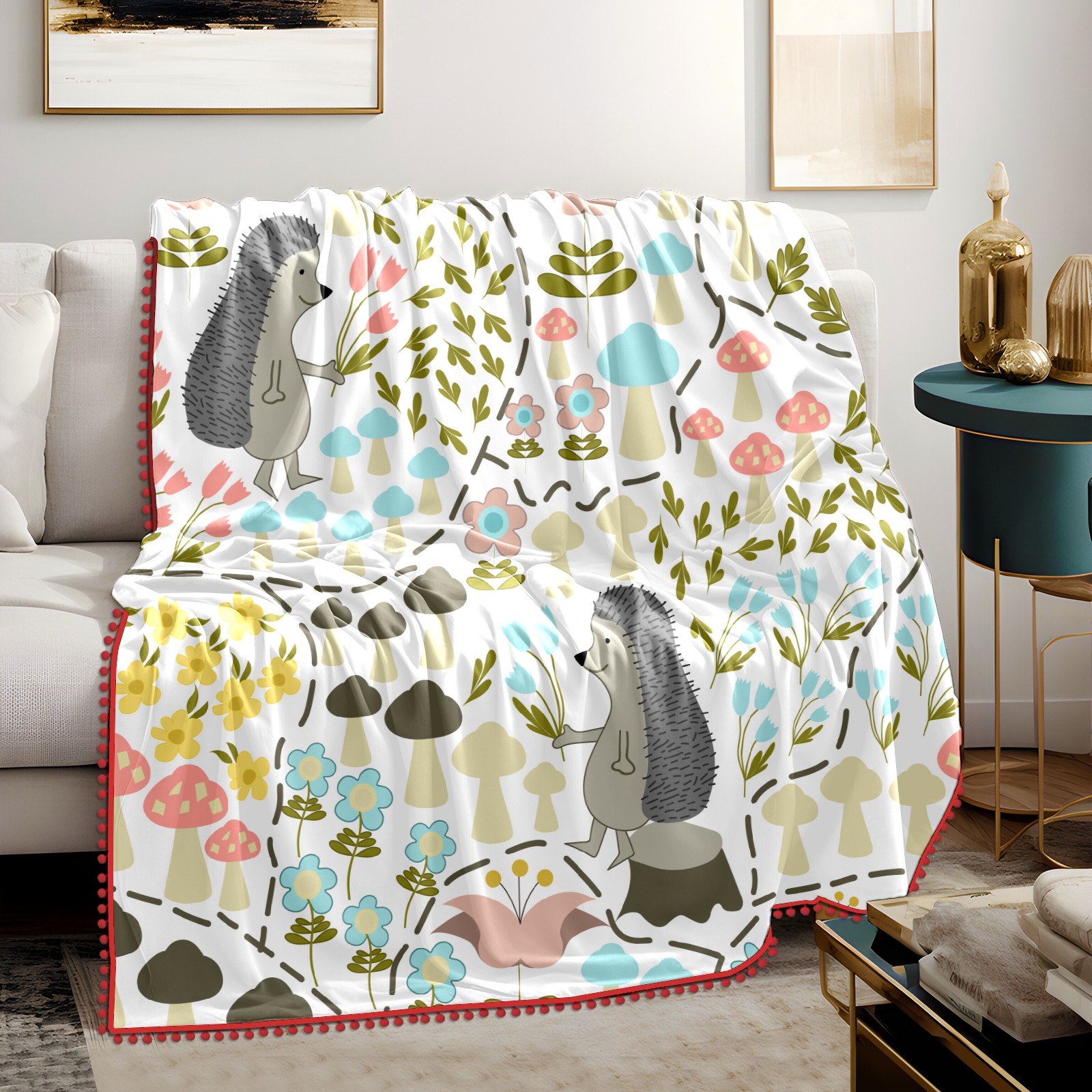 流苏毛毯 Cute Cartoon Hedgehog Mushroom Flower