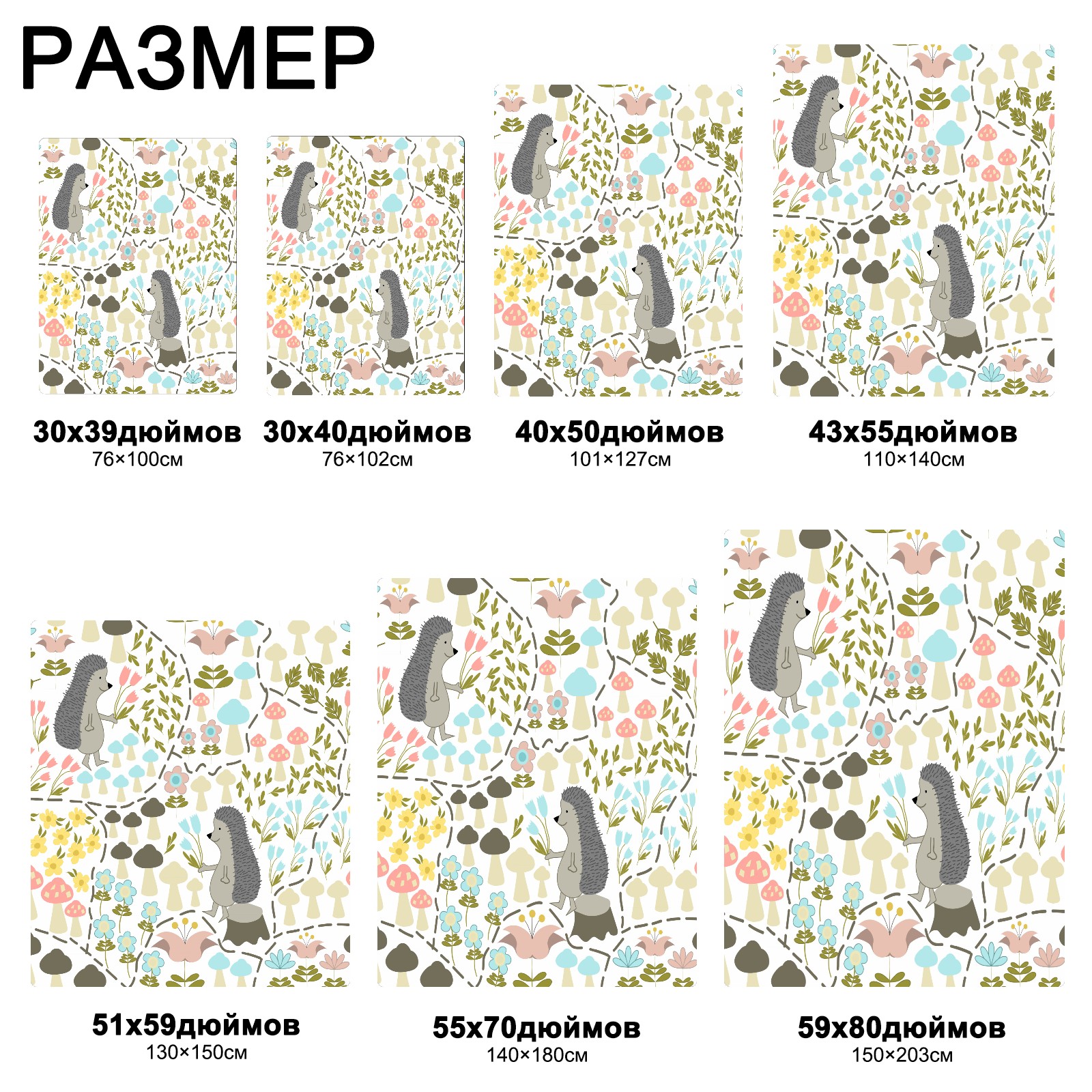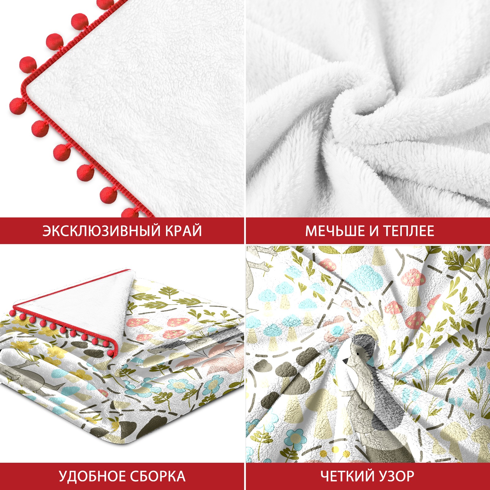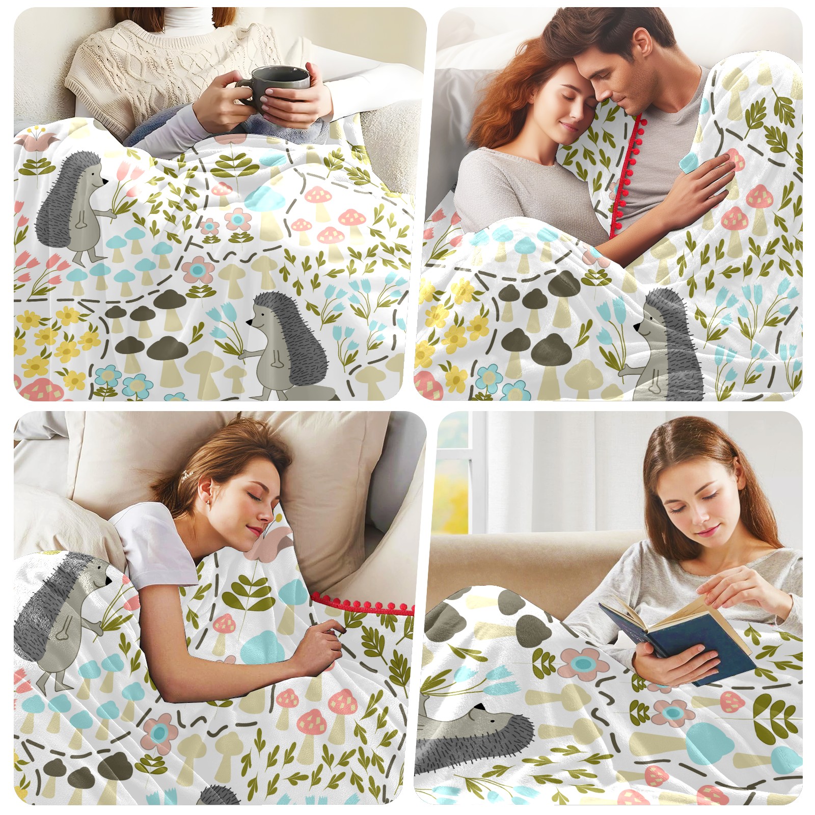 流苏毛毯 Cute Cartoon Hedgehog Mushroom Flower
