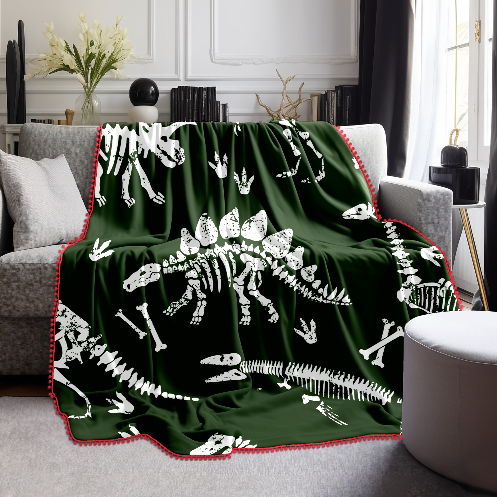 流苏毛毯 Dinosaur Skeleton Seamless Grunge Original