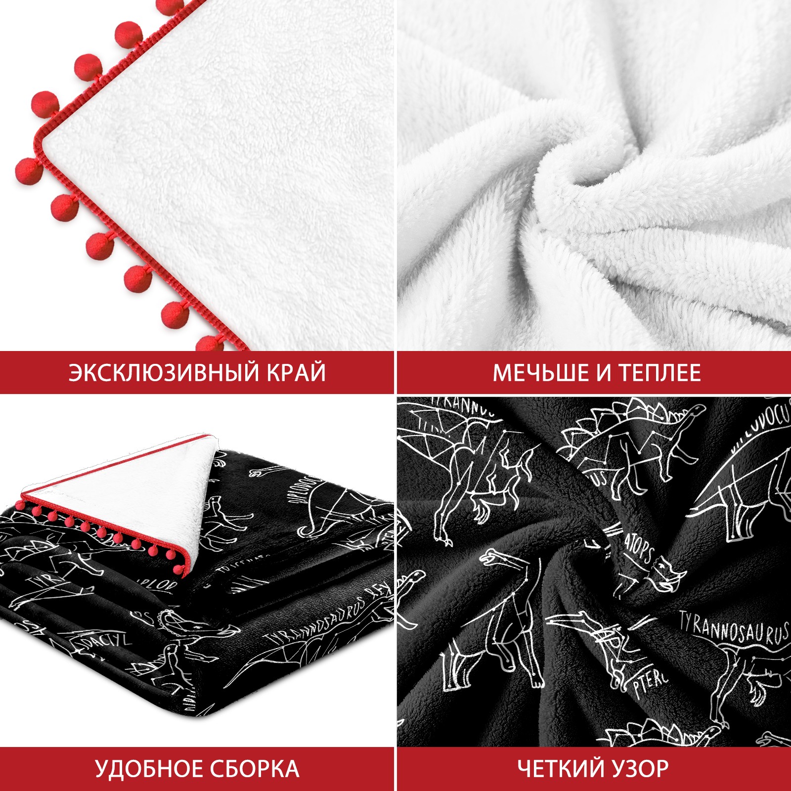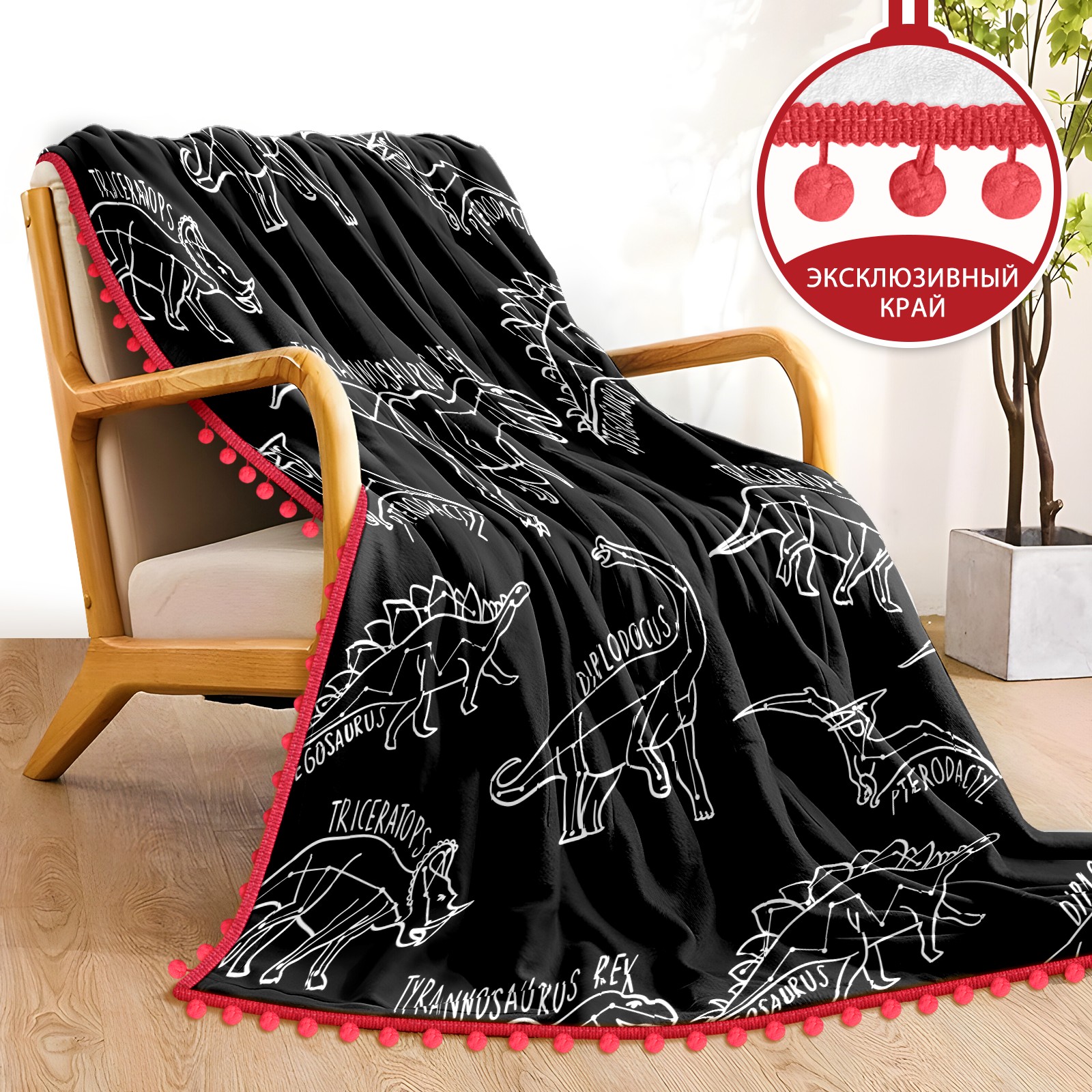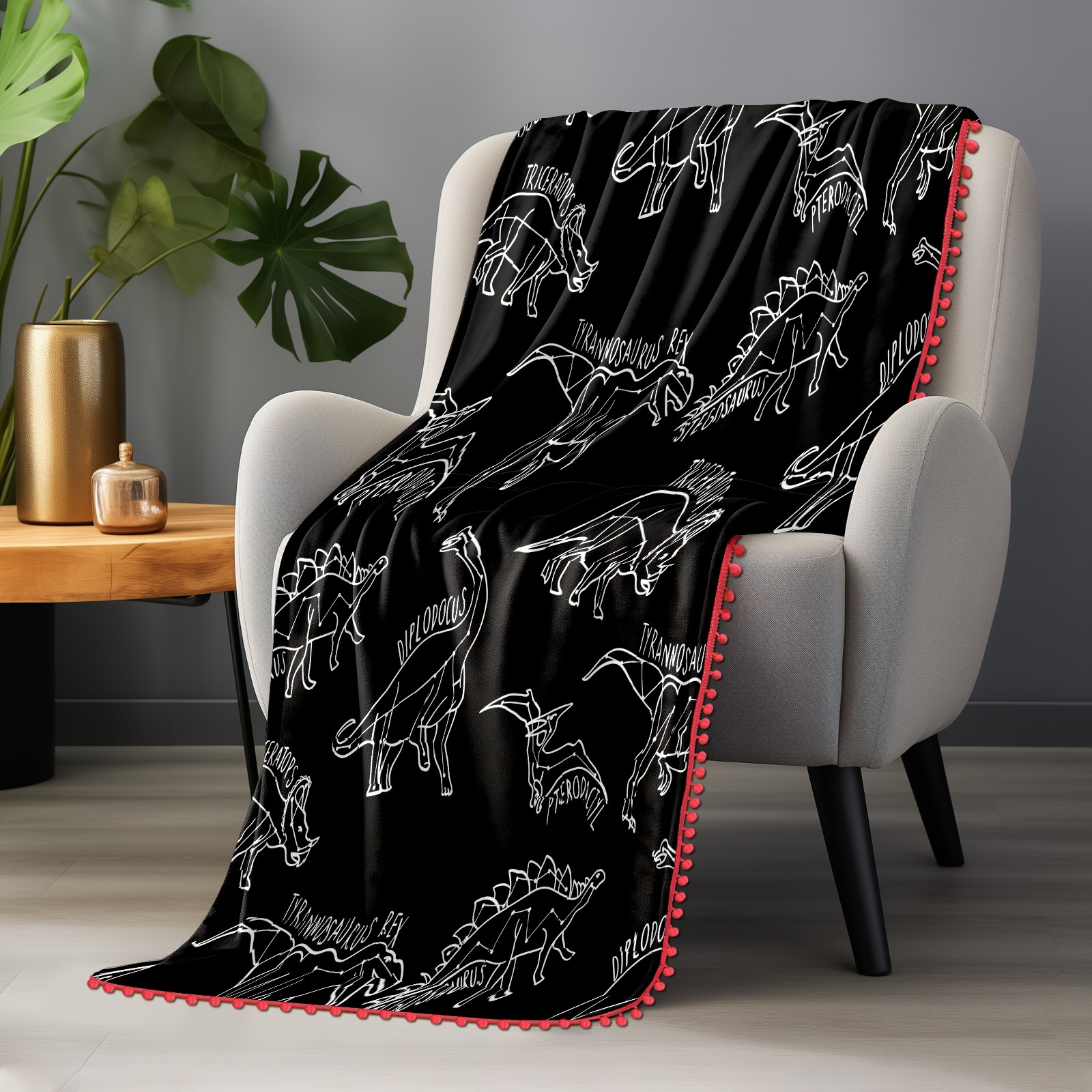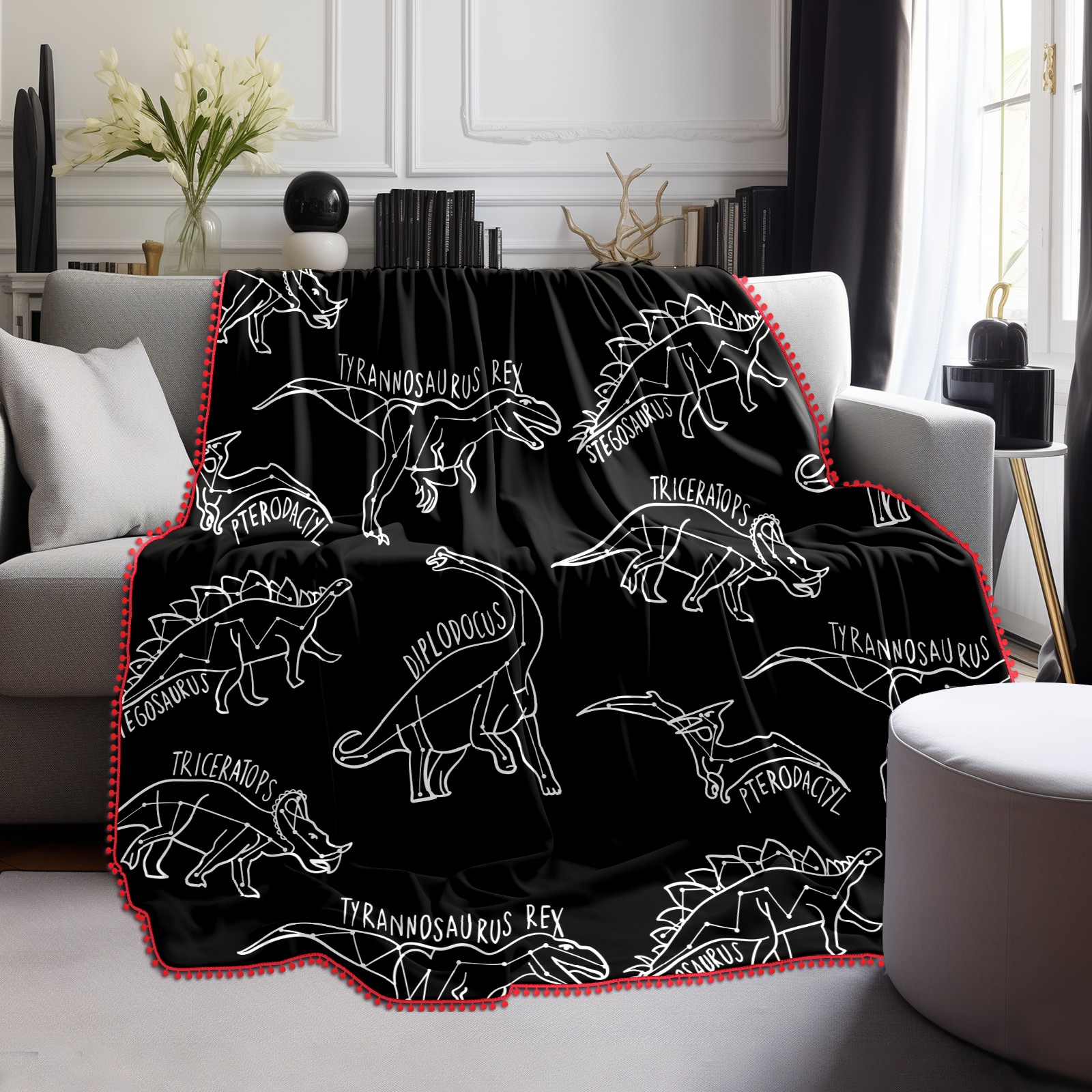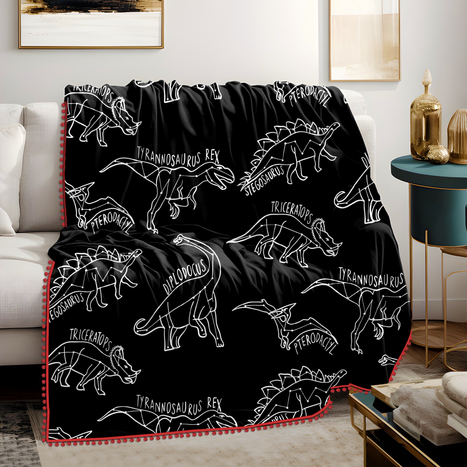 流苏毛毯 Hand Drawn White Outline Dinosaur