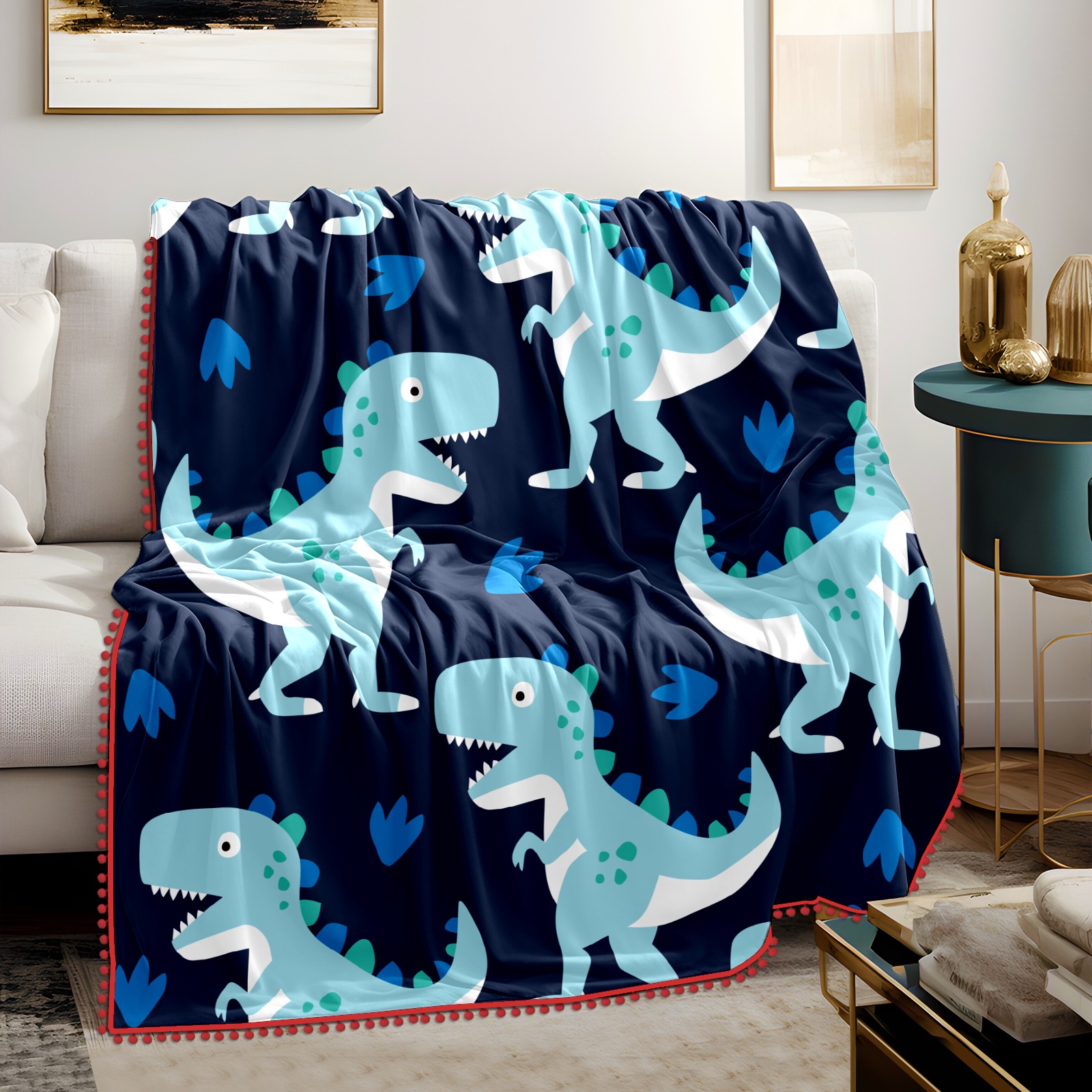 流苏毛毯 Cute Blue Dinosaur