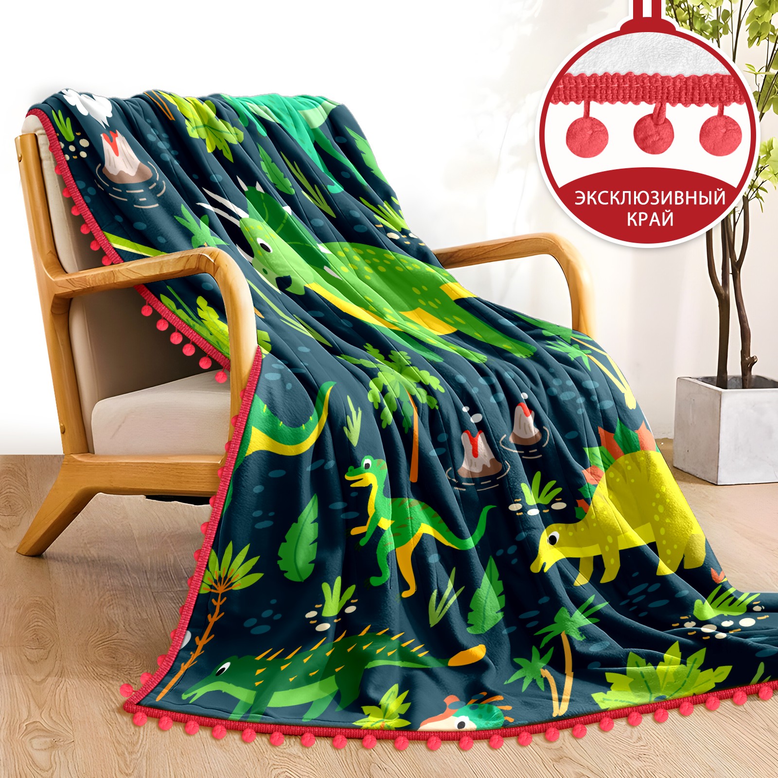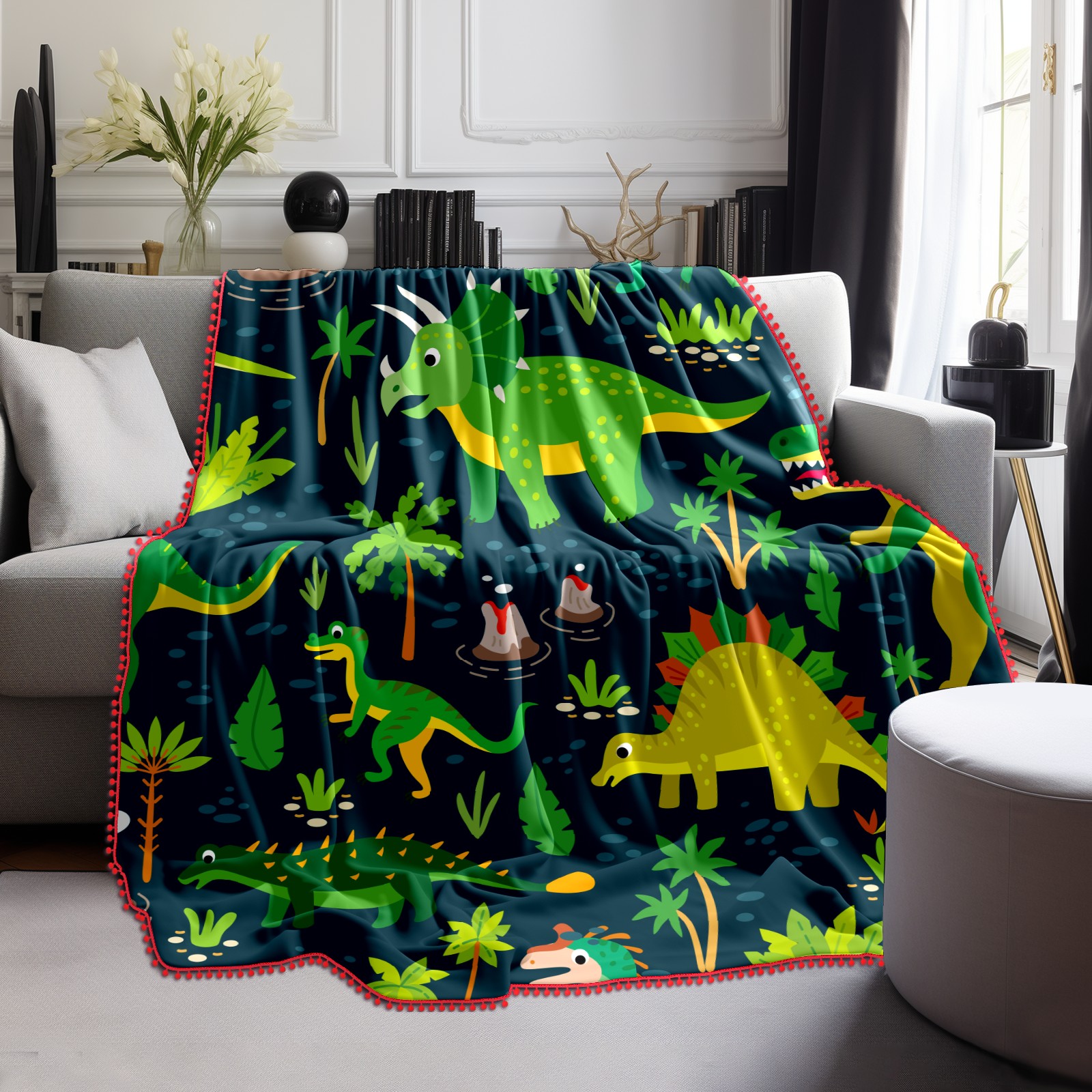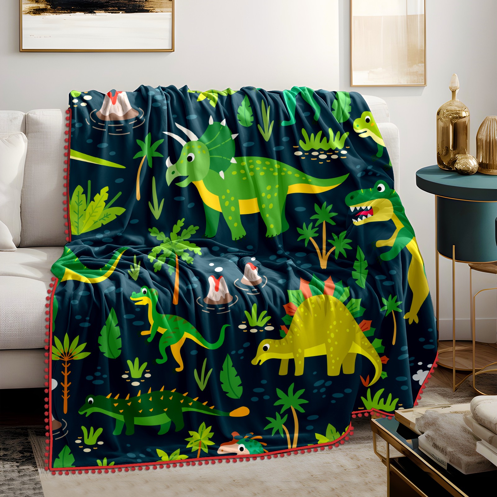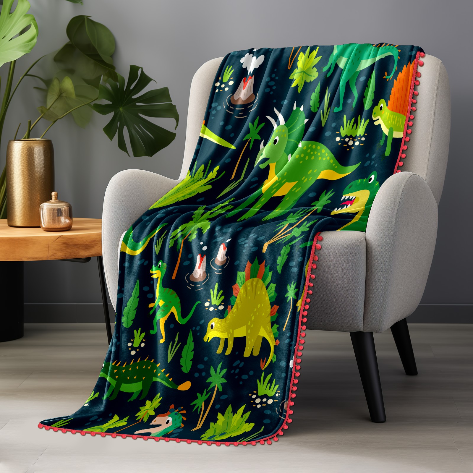 流苏毛毯 Green Dinosaurs Stegosaurus Leave Tree